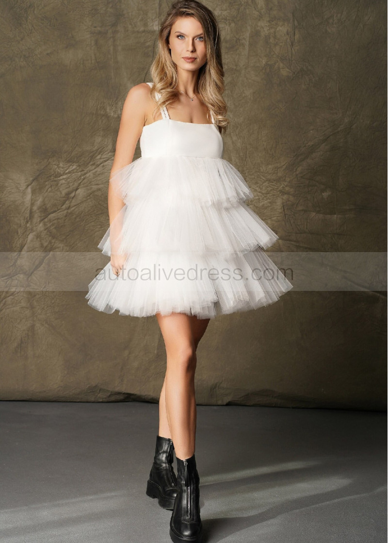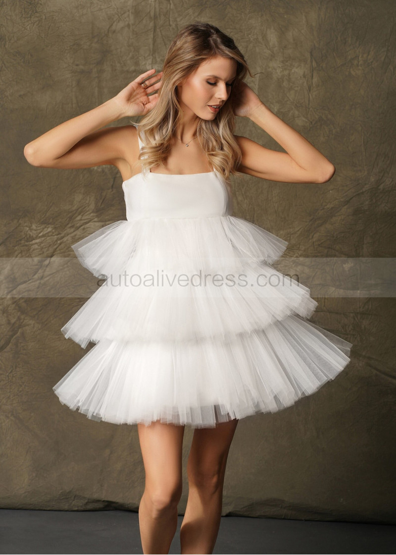 Ivory Satin Tulle Tiered Adorable Party Dress