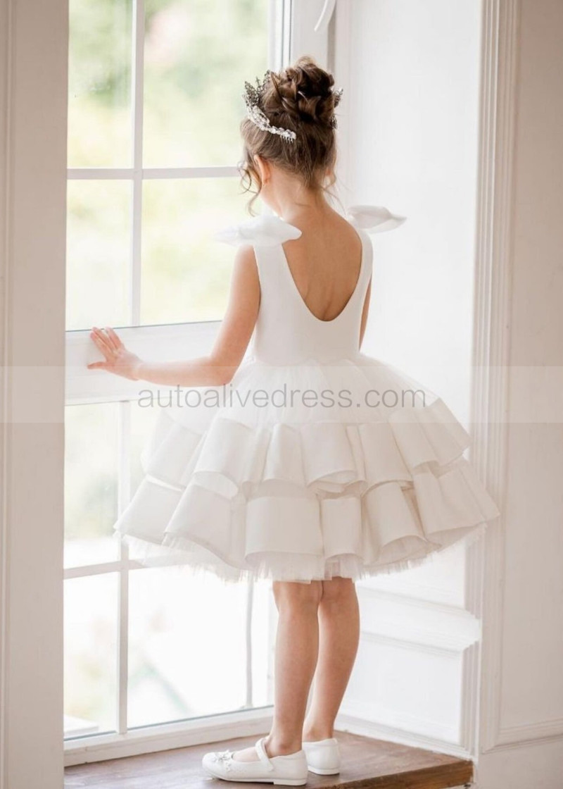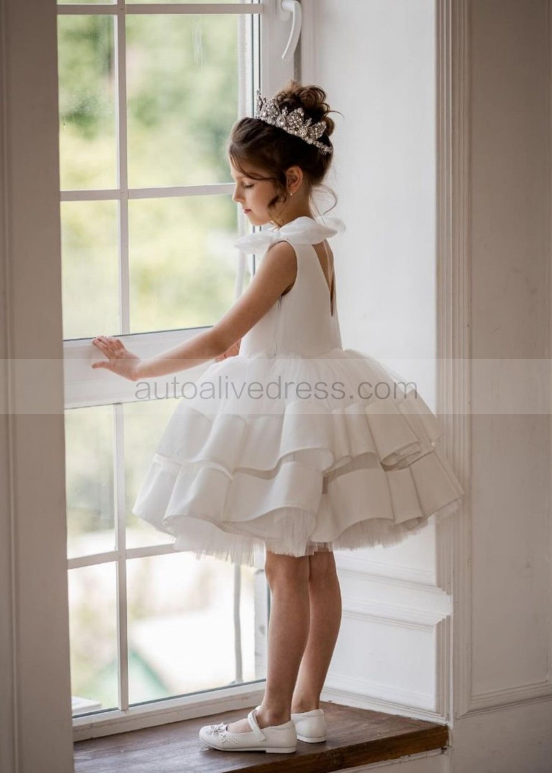Ivory Satin Tulle Tiered Flower Girl Dress