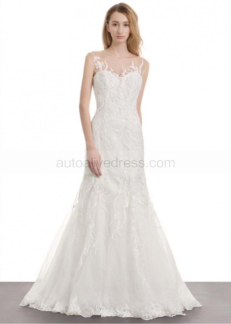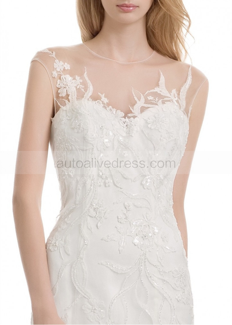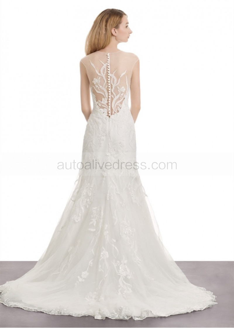 Ivory Sequined Lace Tulle Illusion Back Wedding Dress