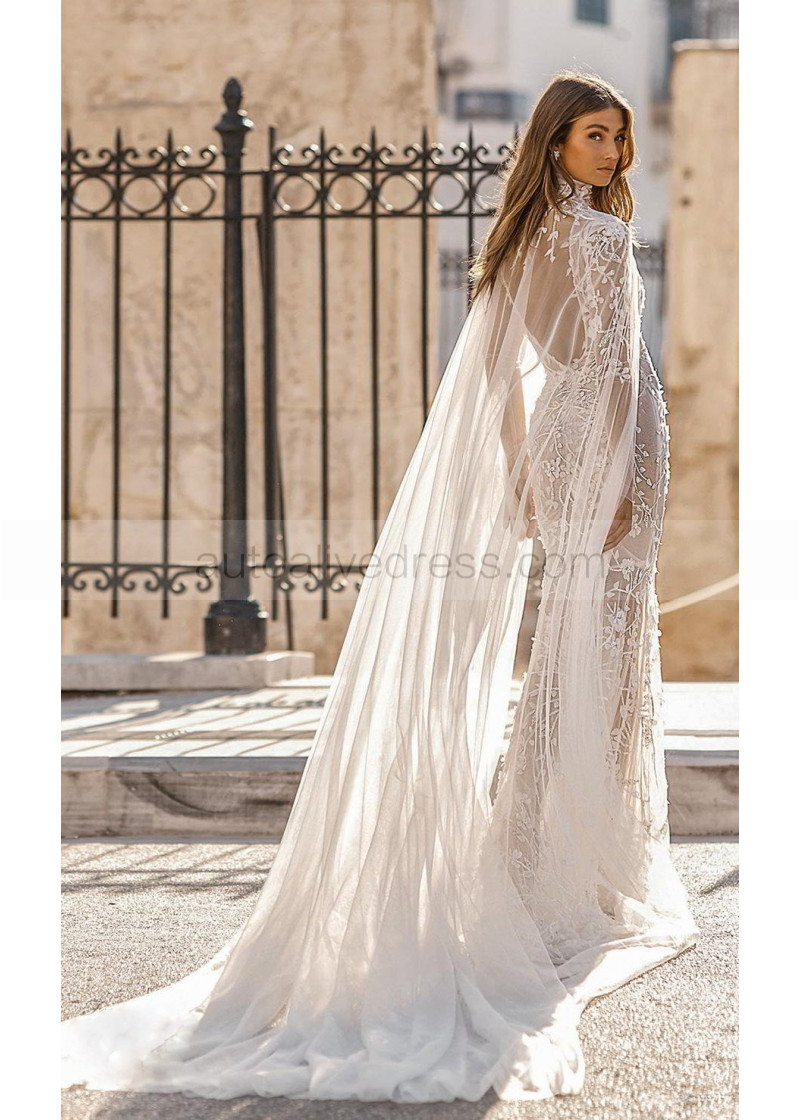 Ivory Sparkling Lace Wedding Dress With Detachable Cape