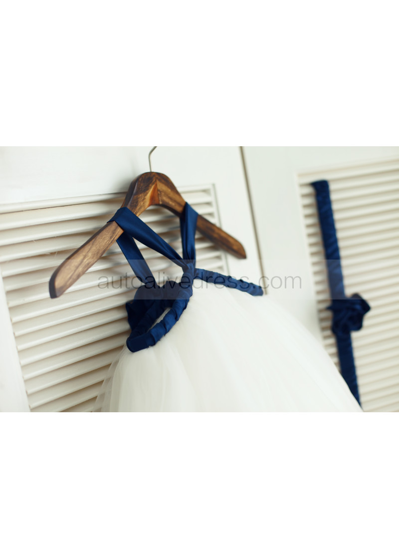 Ivory Tulle Navy Blue Straps Adorable Flower Girl Dress