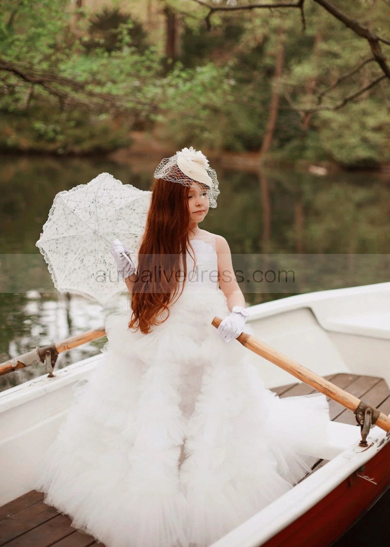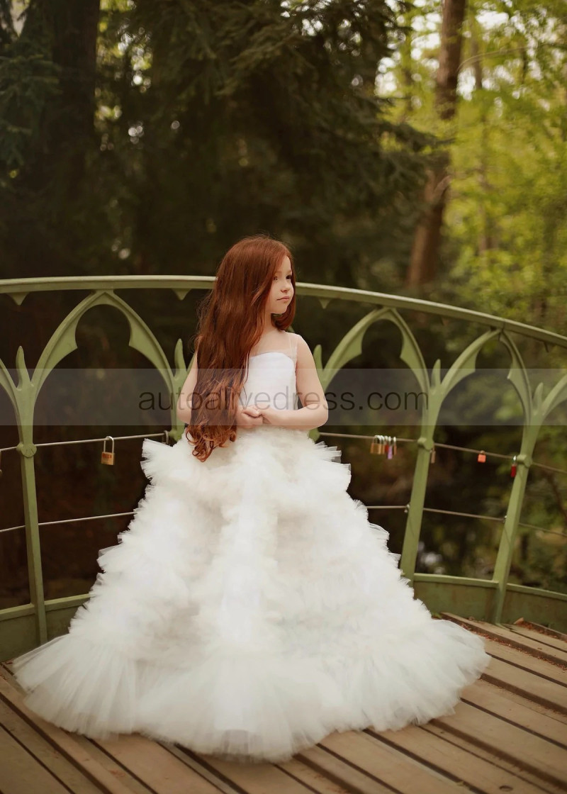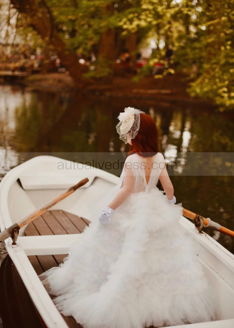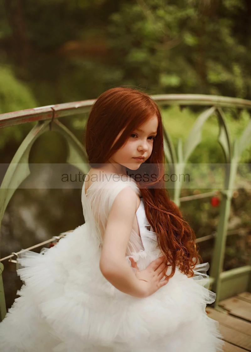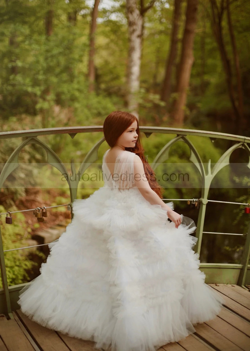 Ivory Tulle Ruffles V Back Fabulous Flower Girl Dress