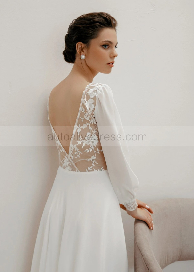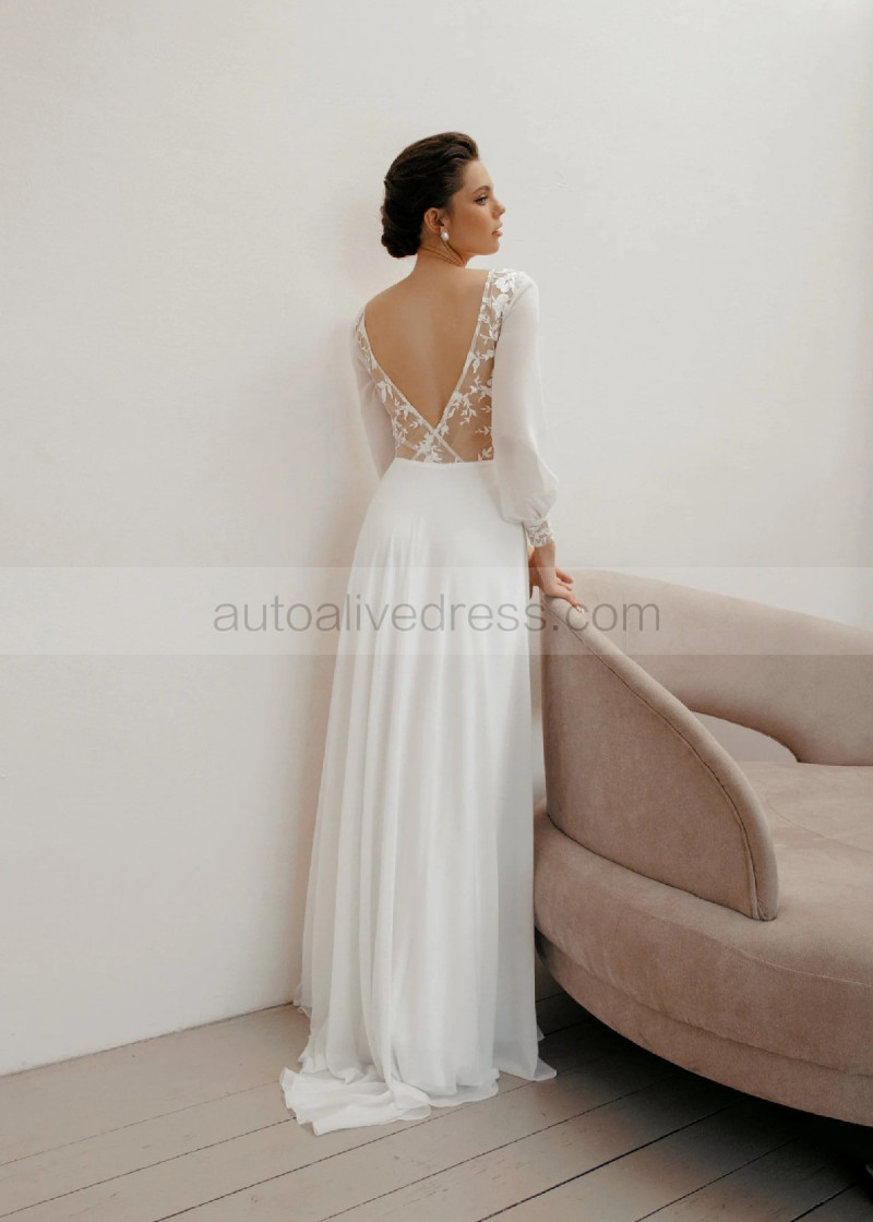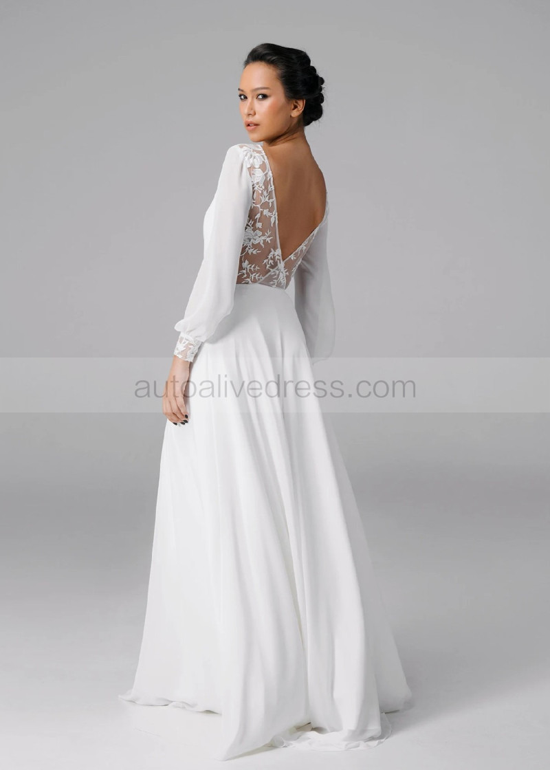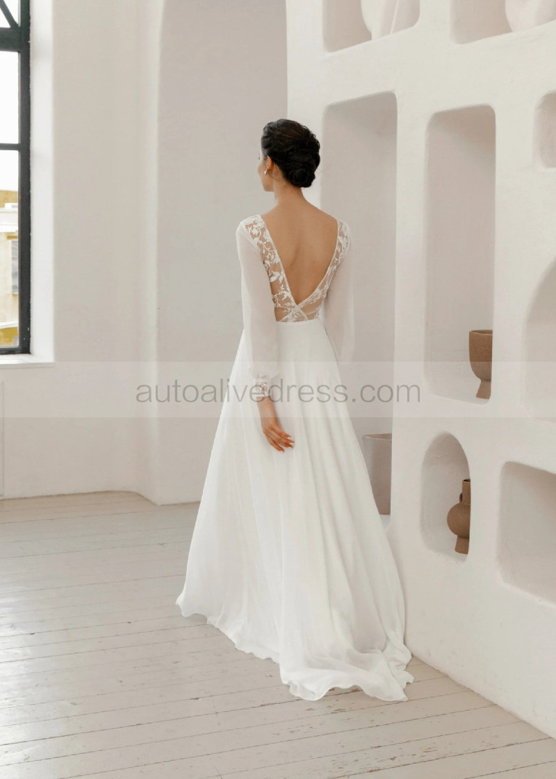 Lace Chiffon V Open Back Minimalist Wedding Dress