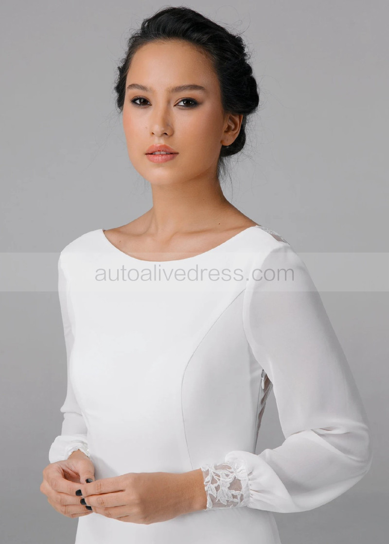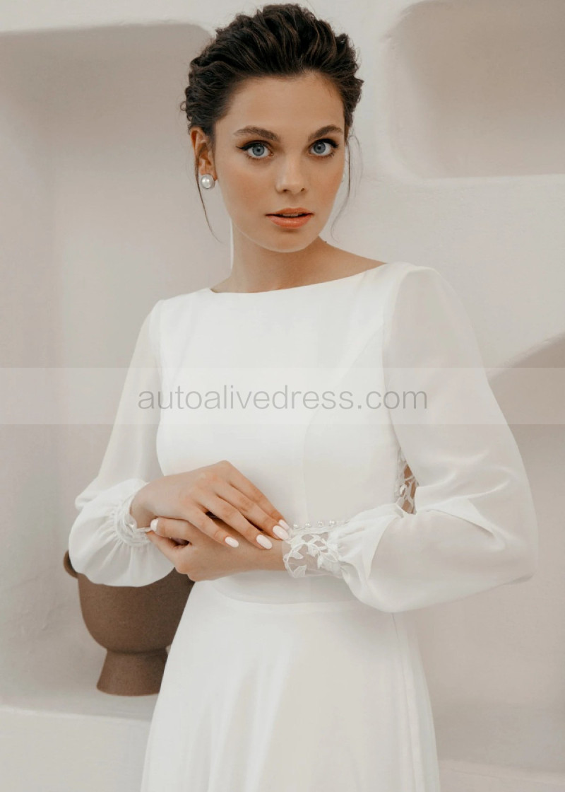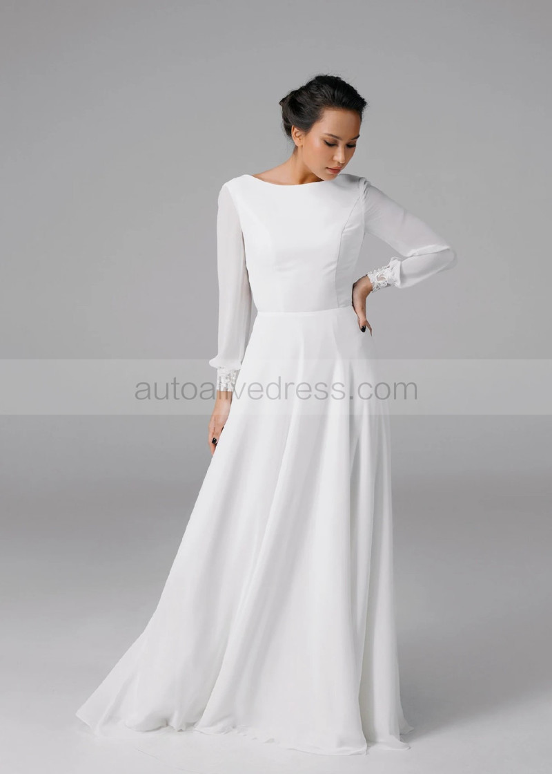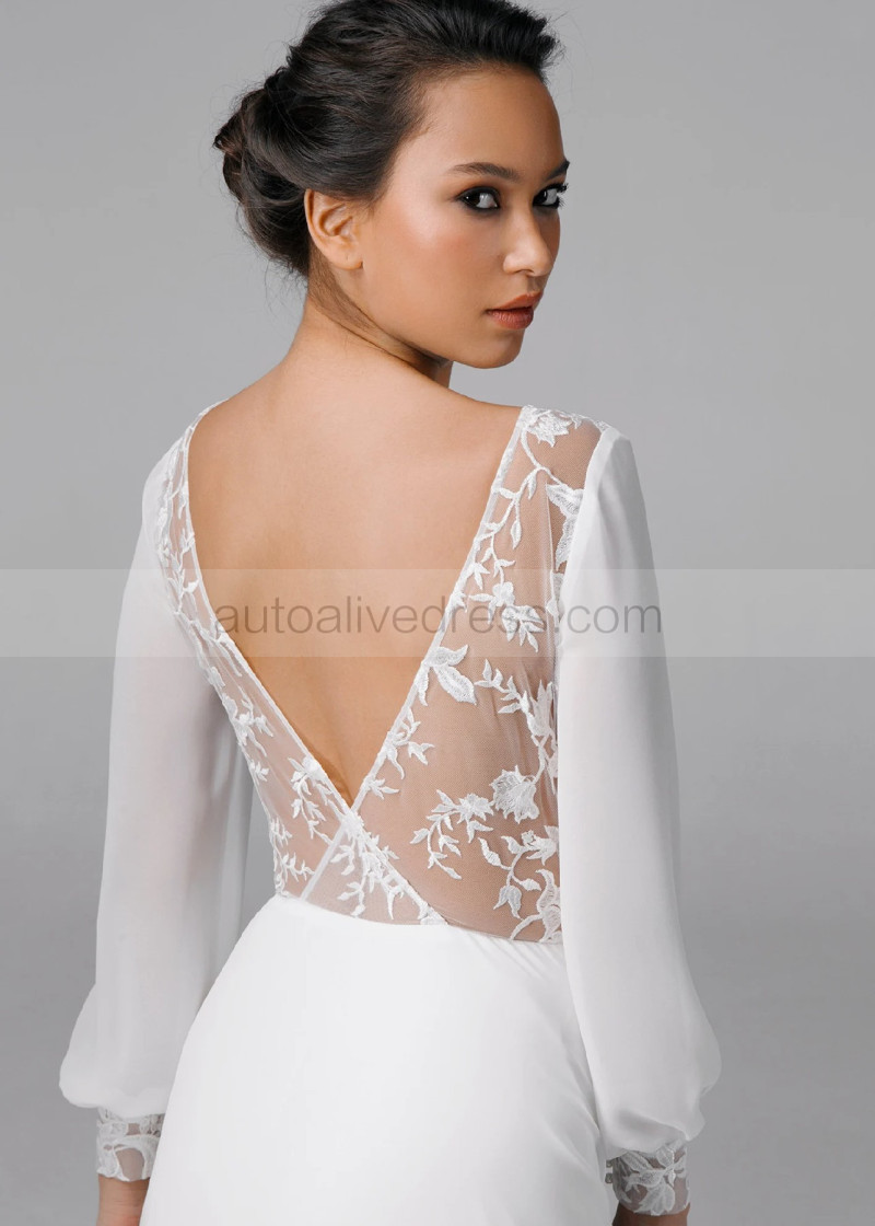 Lace Chiffon V Open Back Minimalist Wedding Dress