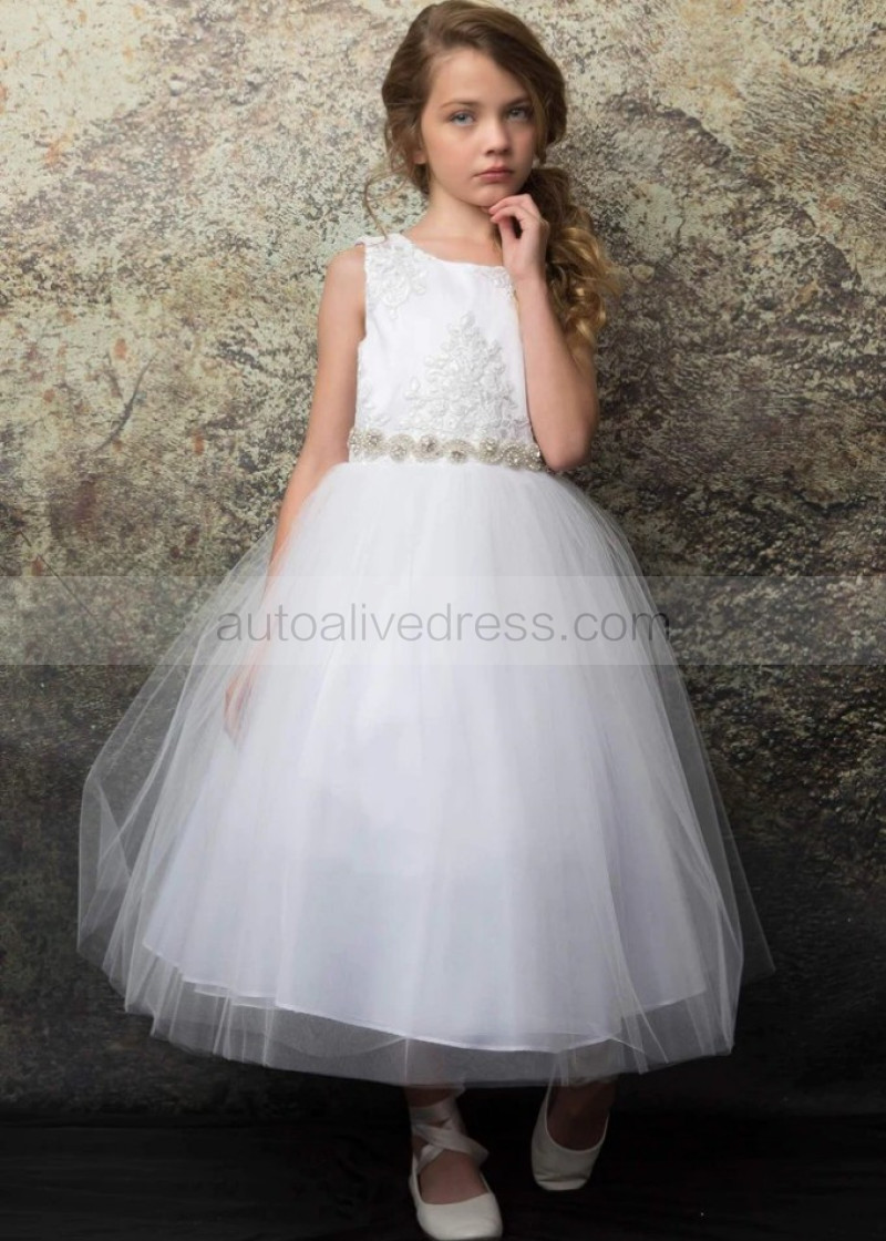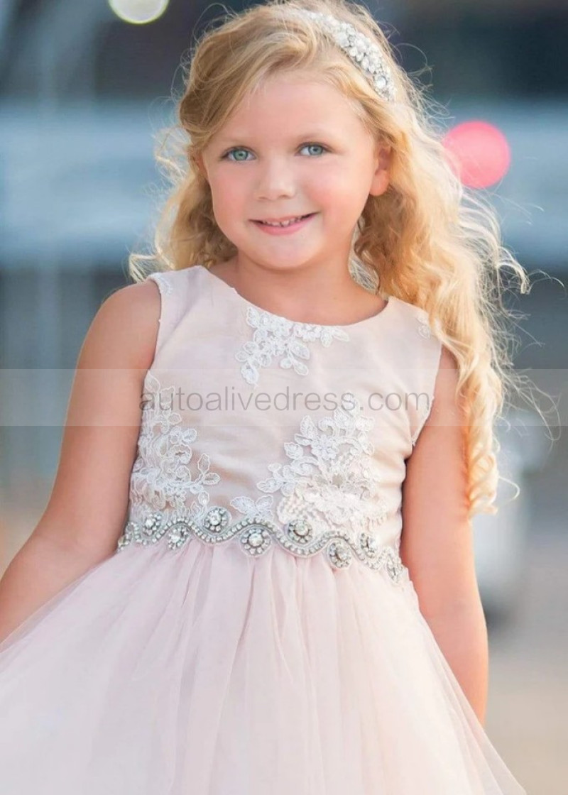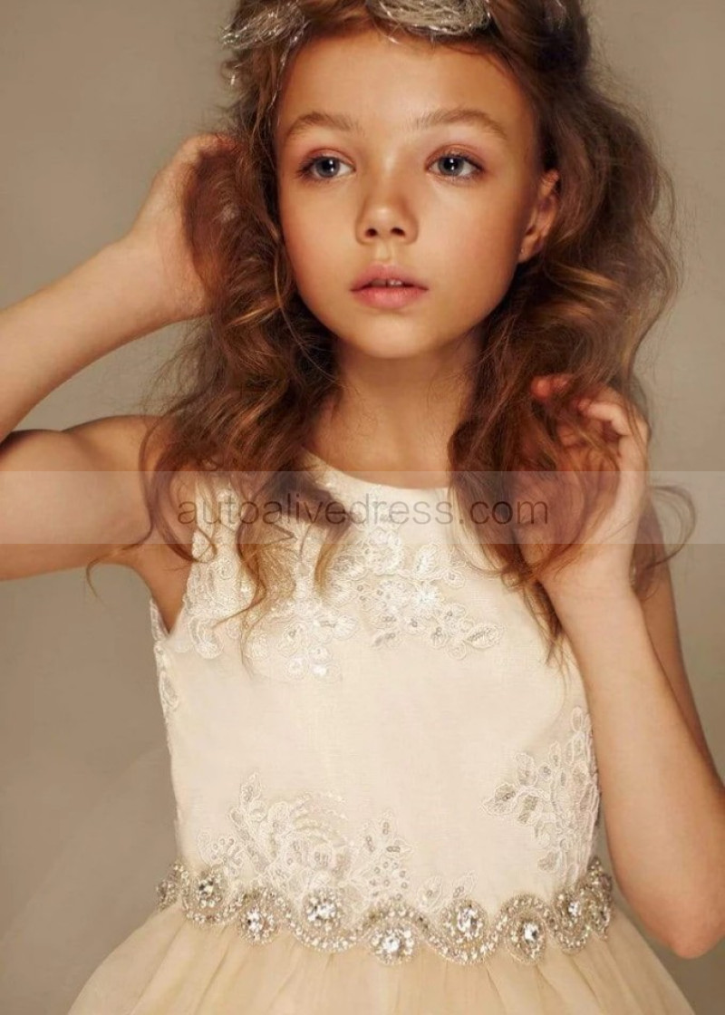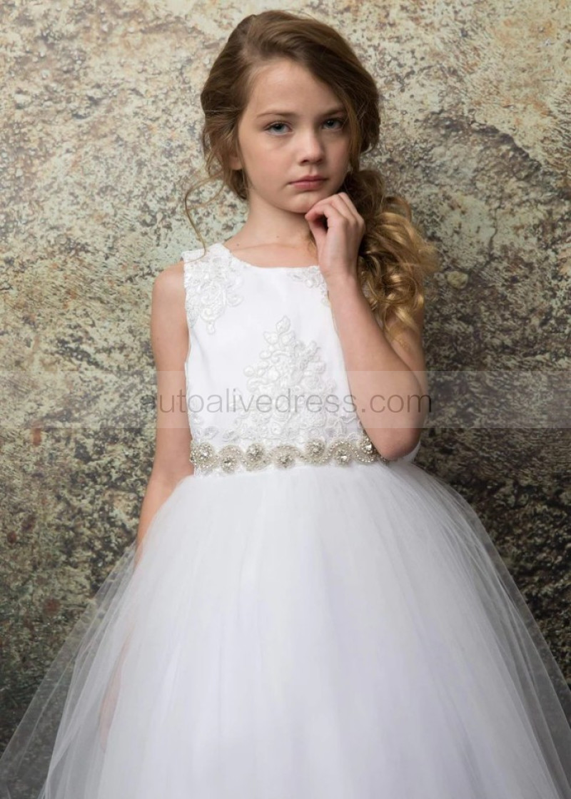 Lace Tulle Flower Girl Dress With Rhinestone Belt