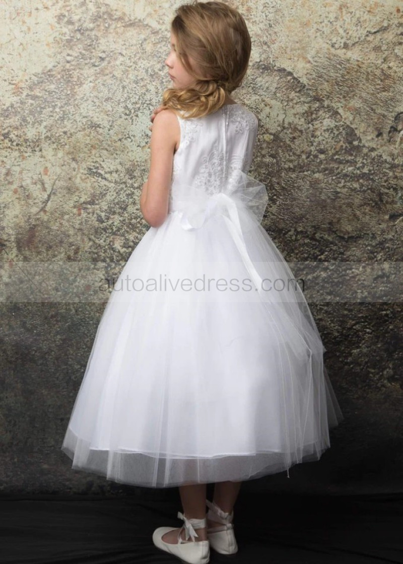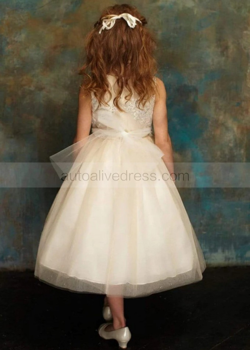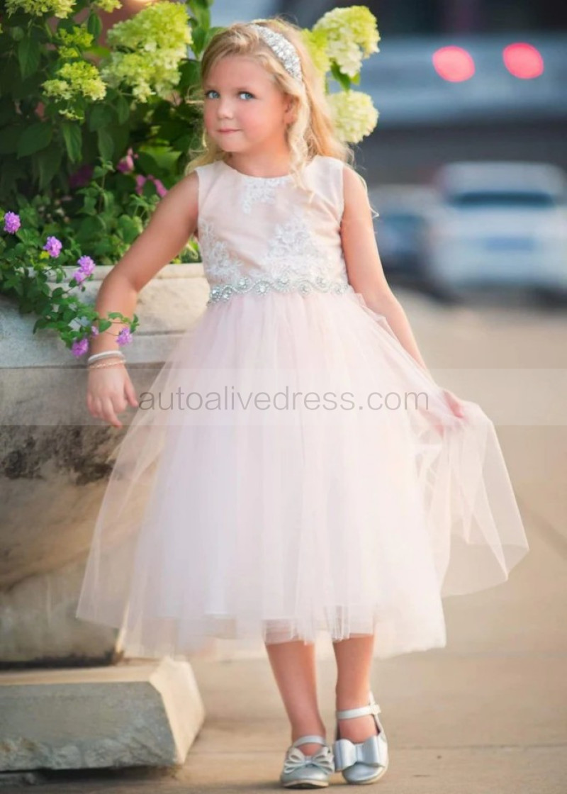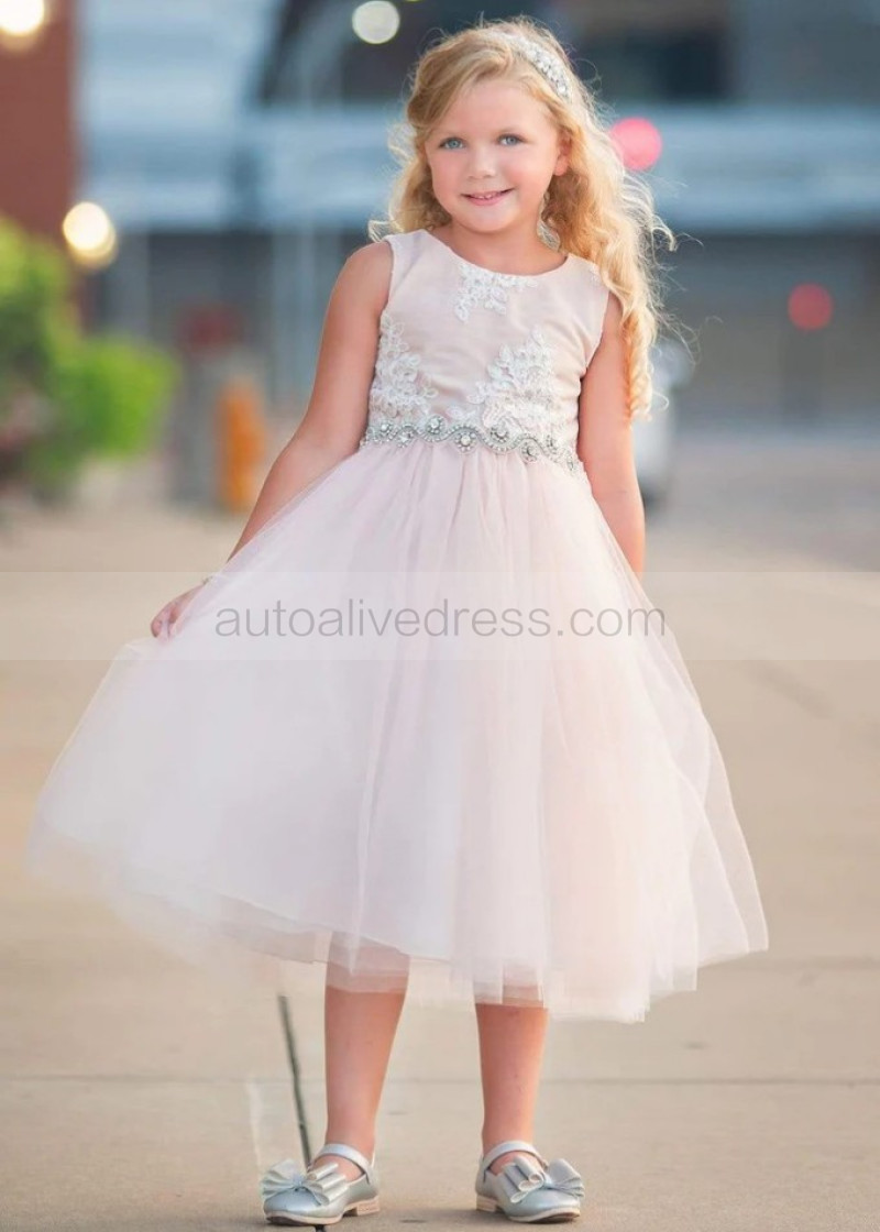 Lace Tulle Flower Girl Dress With Rhinestone Belt