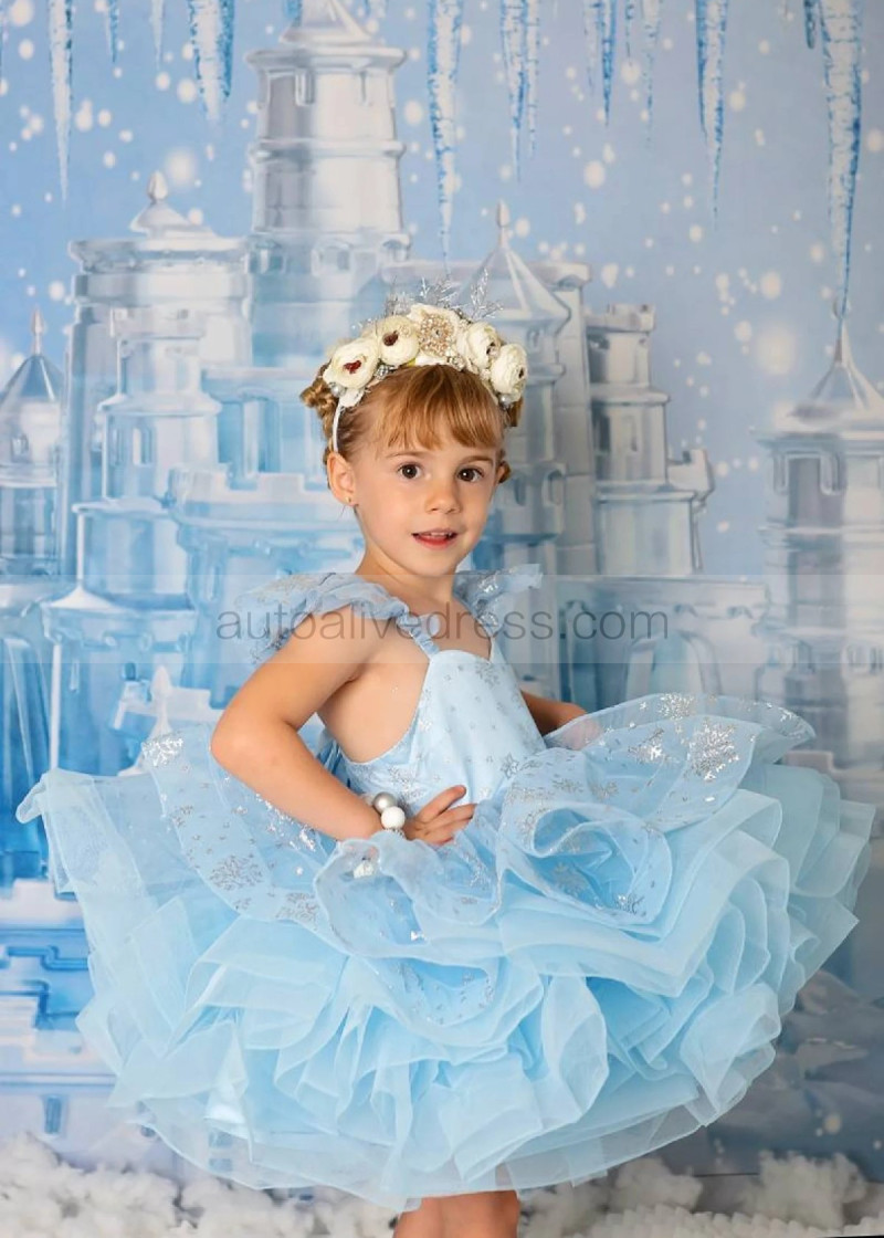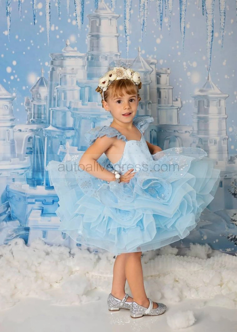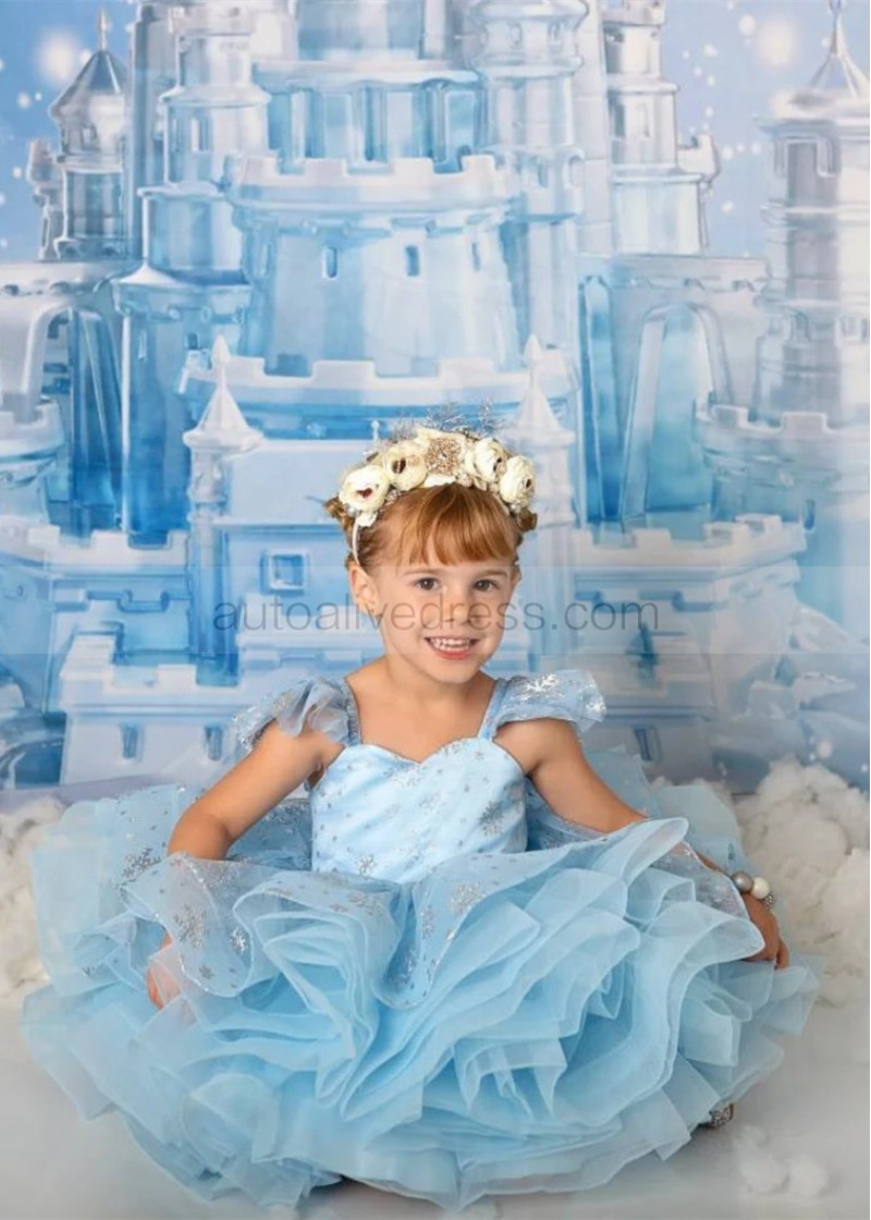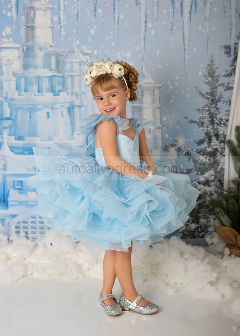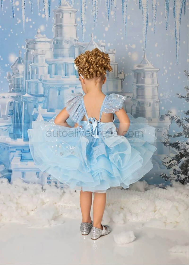 Light Blue Organza Frozen Lace Up Back Flower Girl Dress