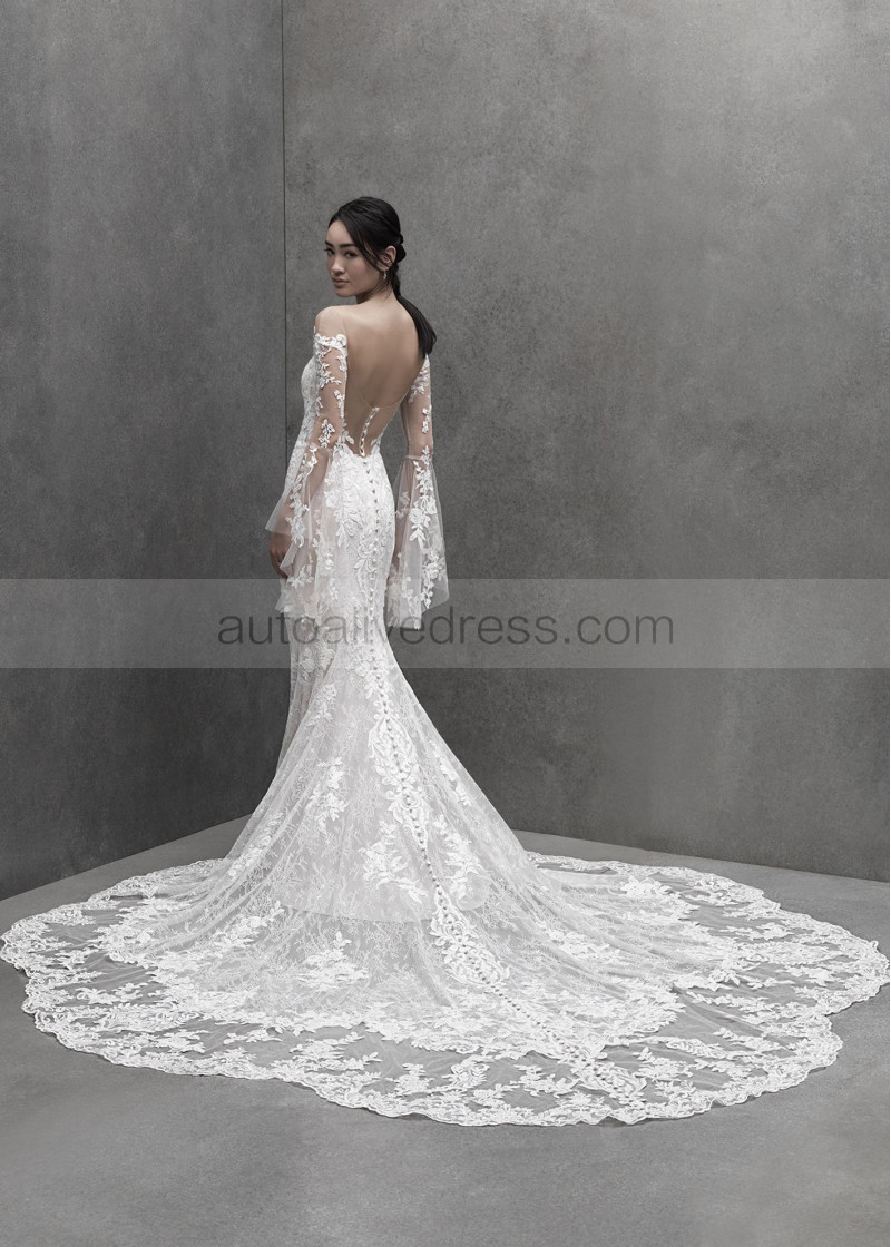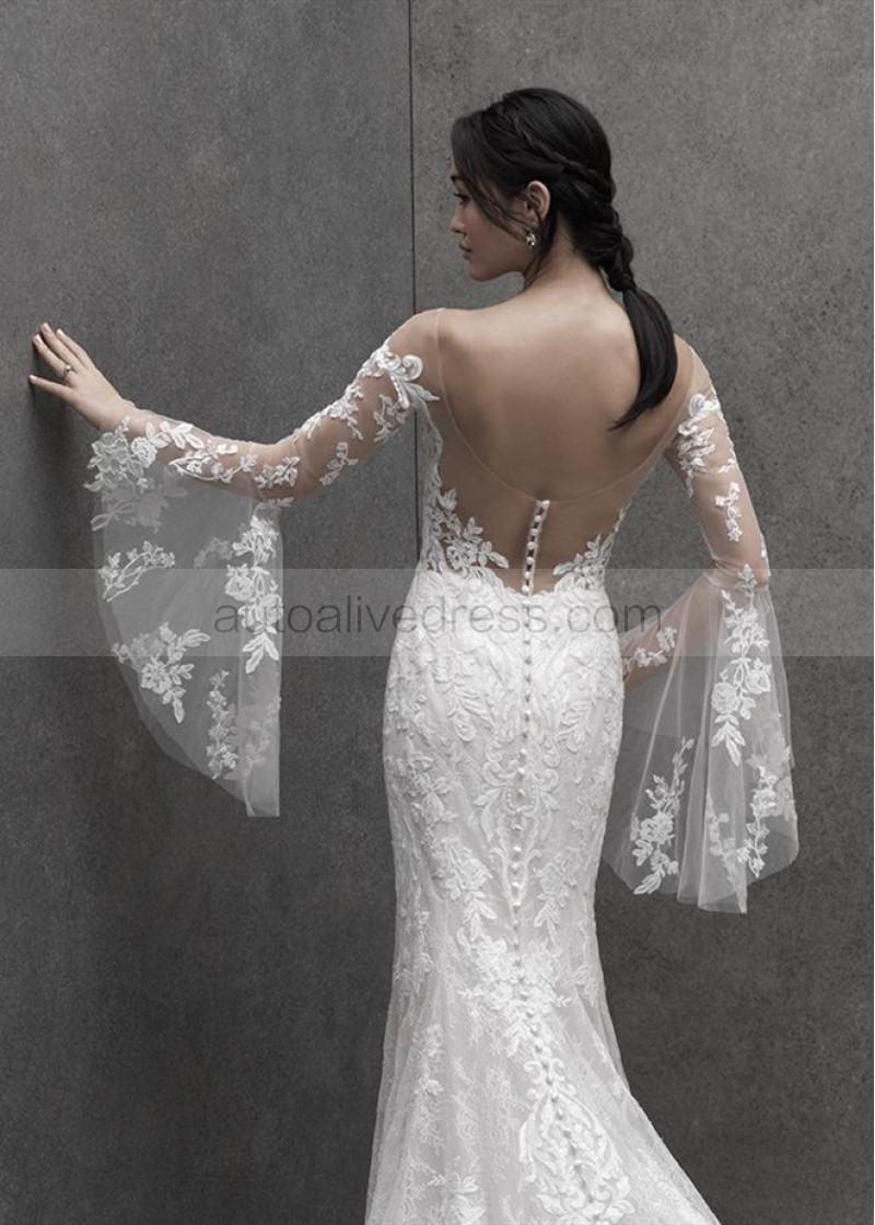 Long Illusion Sleeve Ivory Lace Tulle Fairytale Wedding Dress