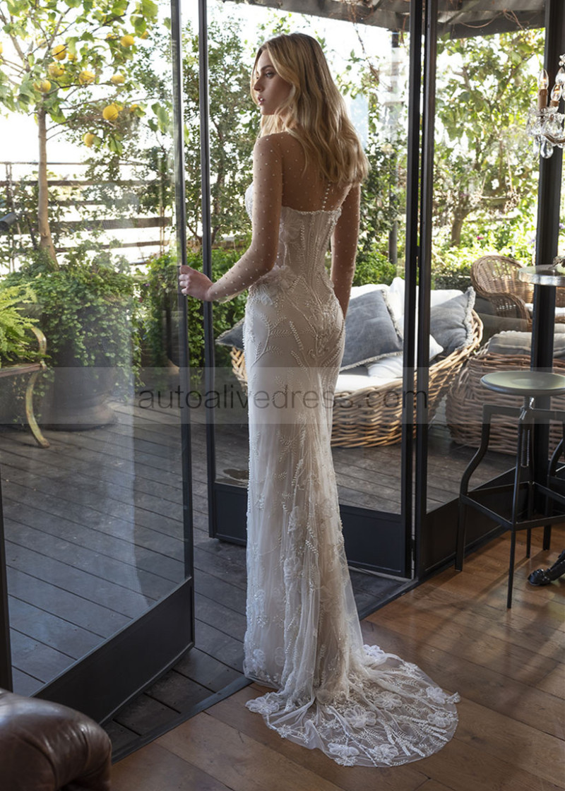 Long Sleeves Beaded Tulle Dreamy Wedding Dress