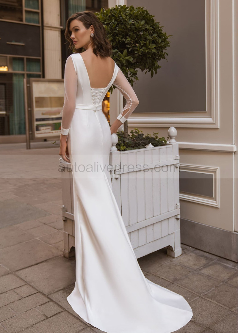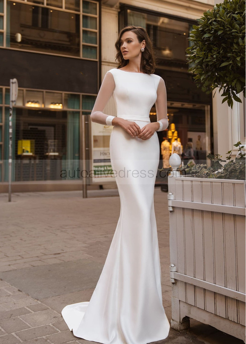 Long Sleeves Ivory Satin Simple Wedding Dress