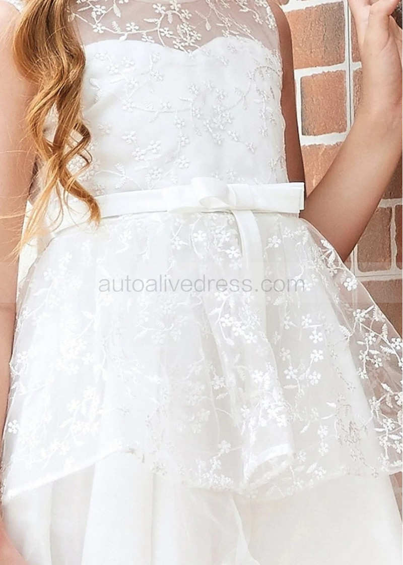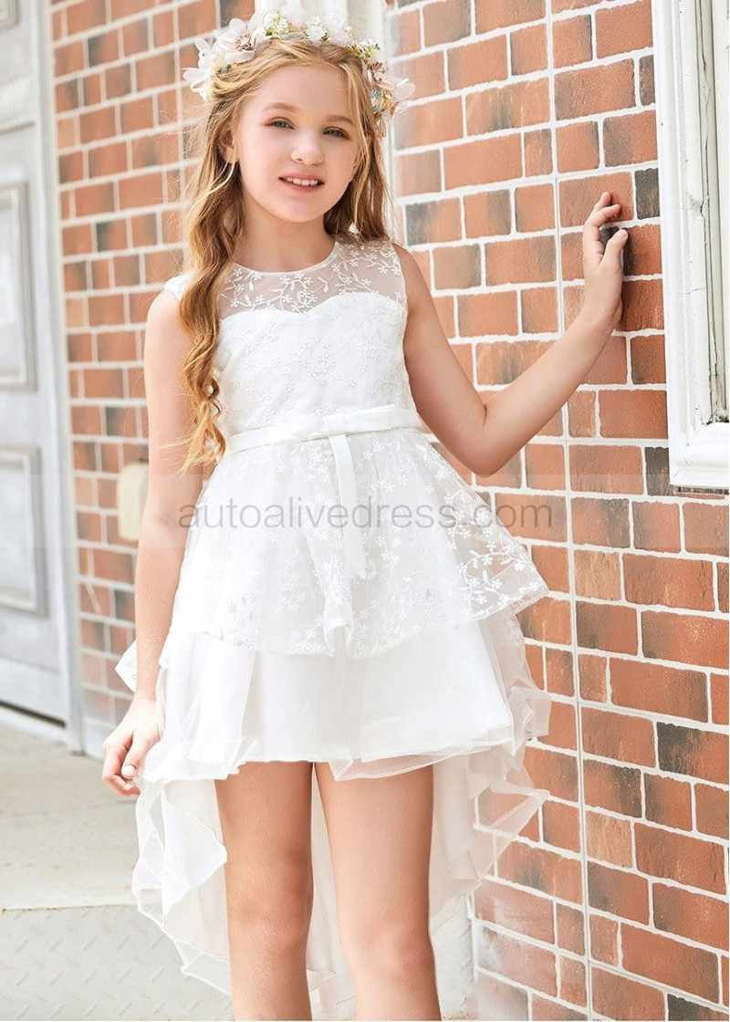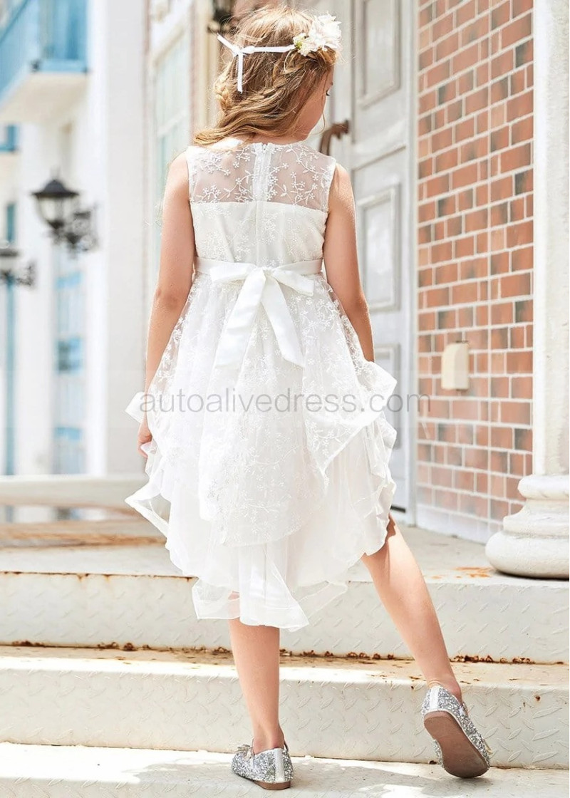 Lovely Ivory Embroidery Lace Tulle High Low Flower Girl Dress