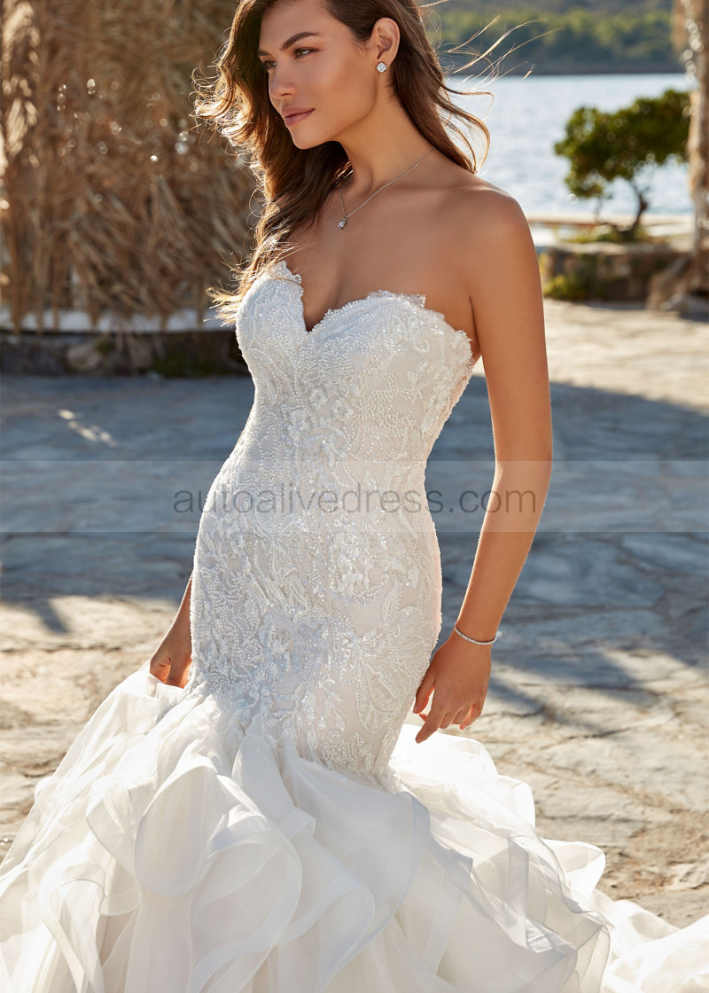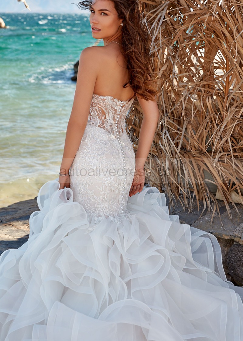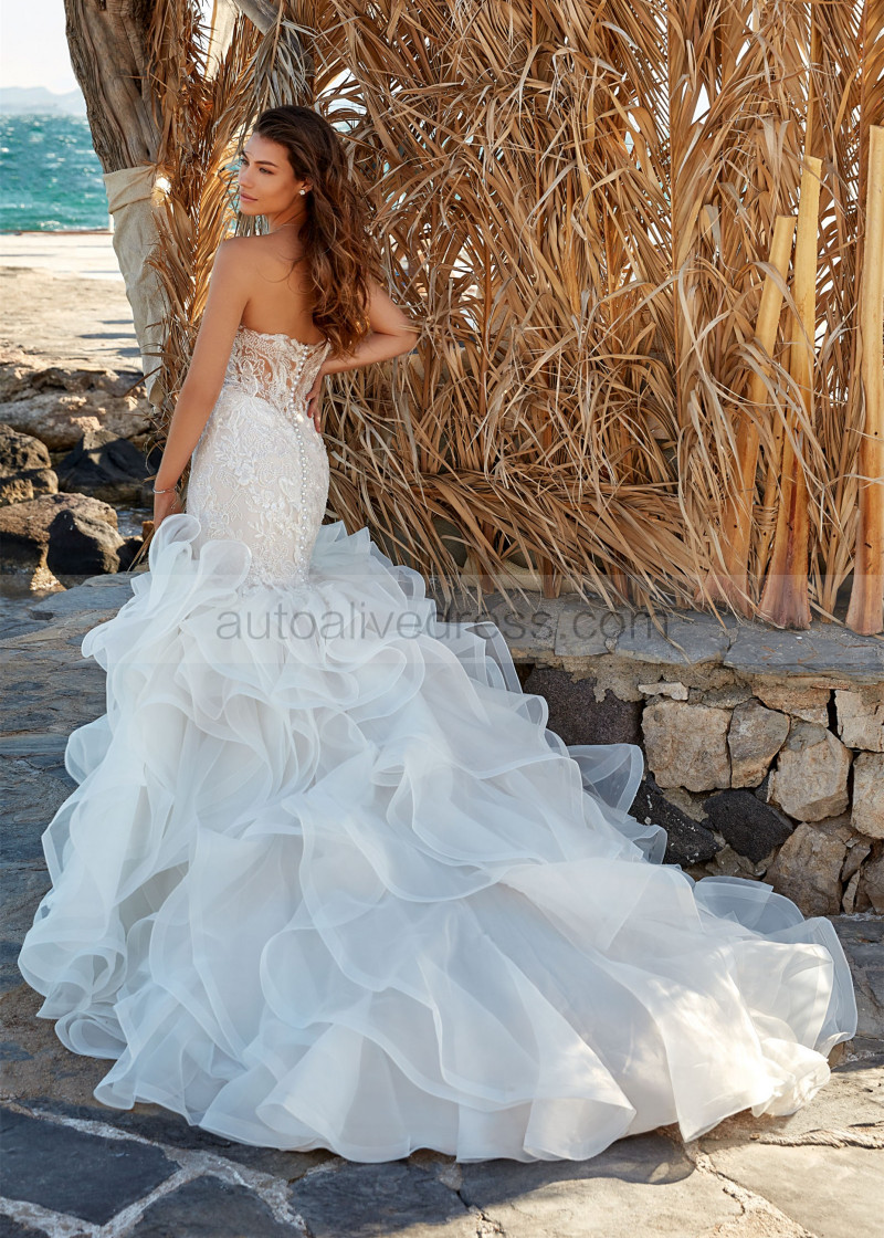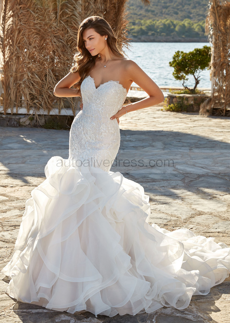 Luxurious Embroidery Lace Ruffled Organza Dreamy Wedding Dress