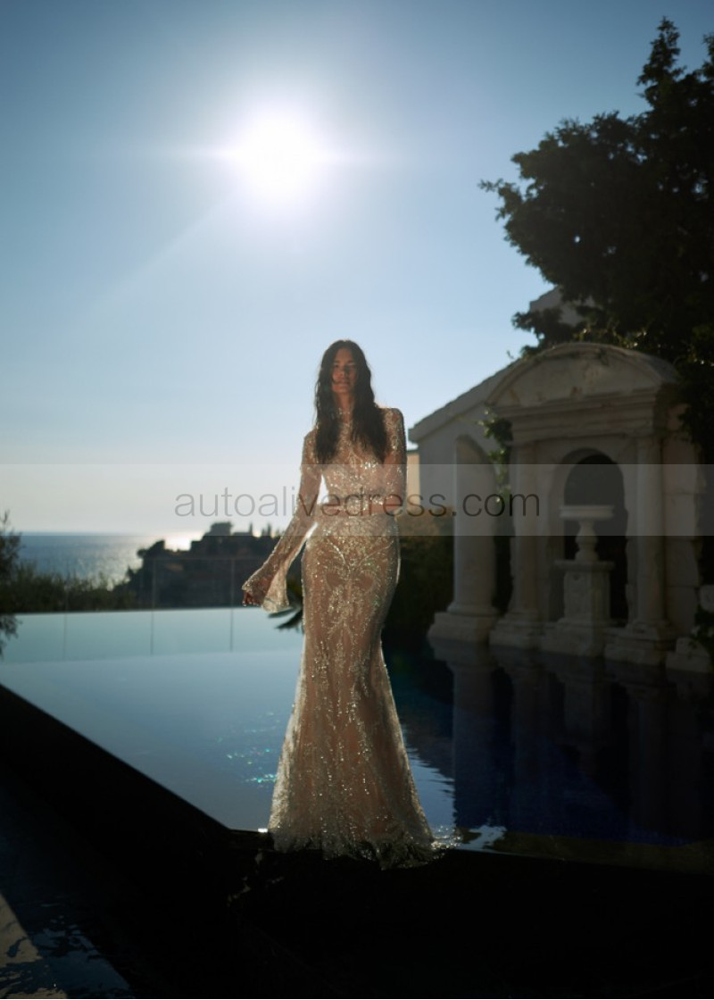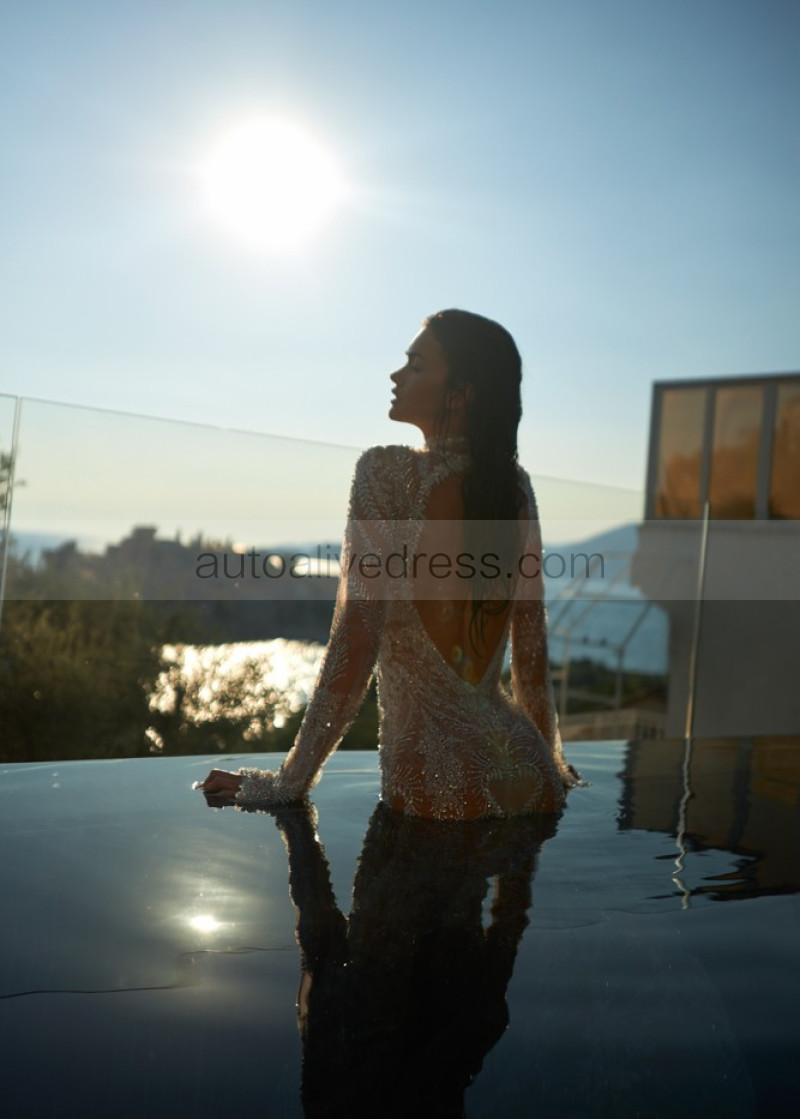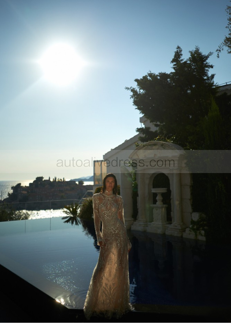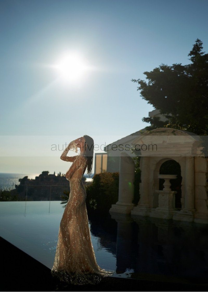 Luxurious Ivory Beaded Lace Tulle Keyhole Back Wedding Dress