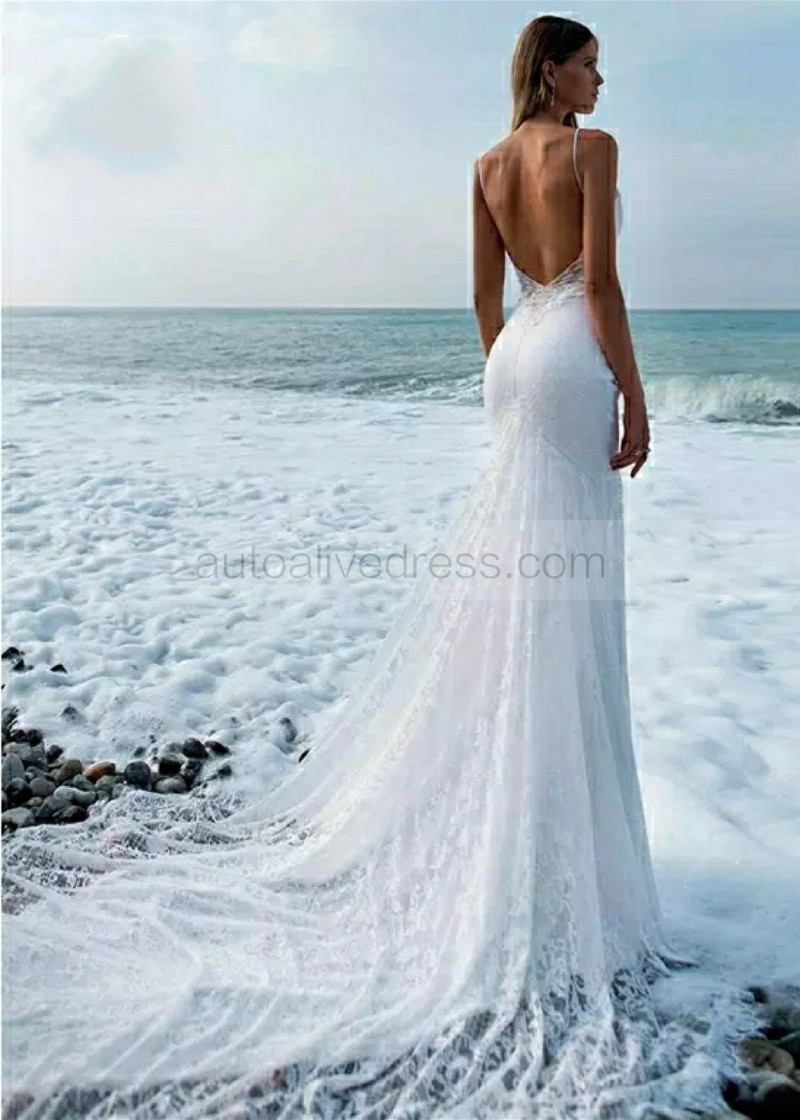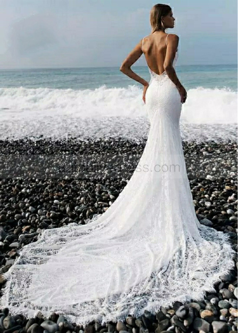 Luxury Ivory Lace Backless Romantic Wedding Dress