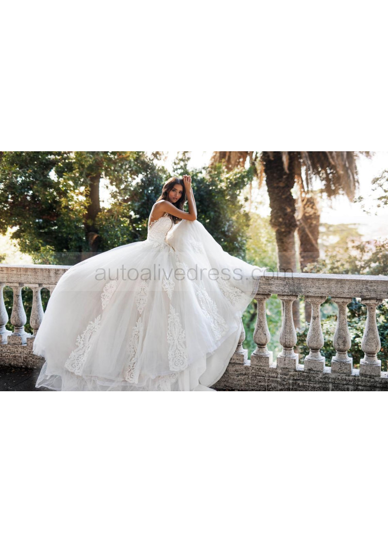 Luxury Ivory Lace Tulle Beading Wedding Dress