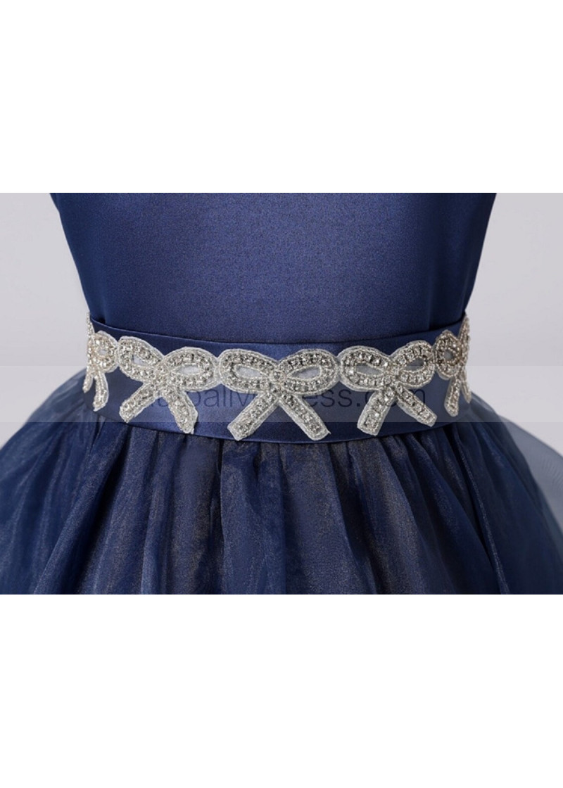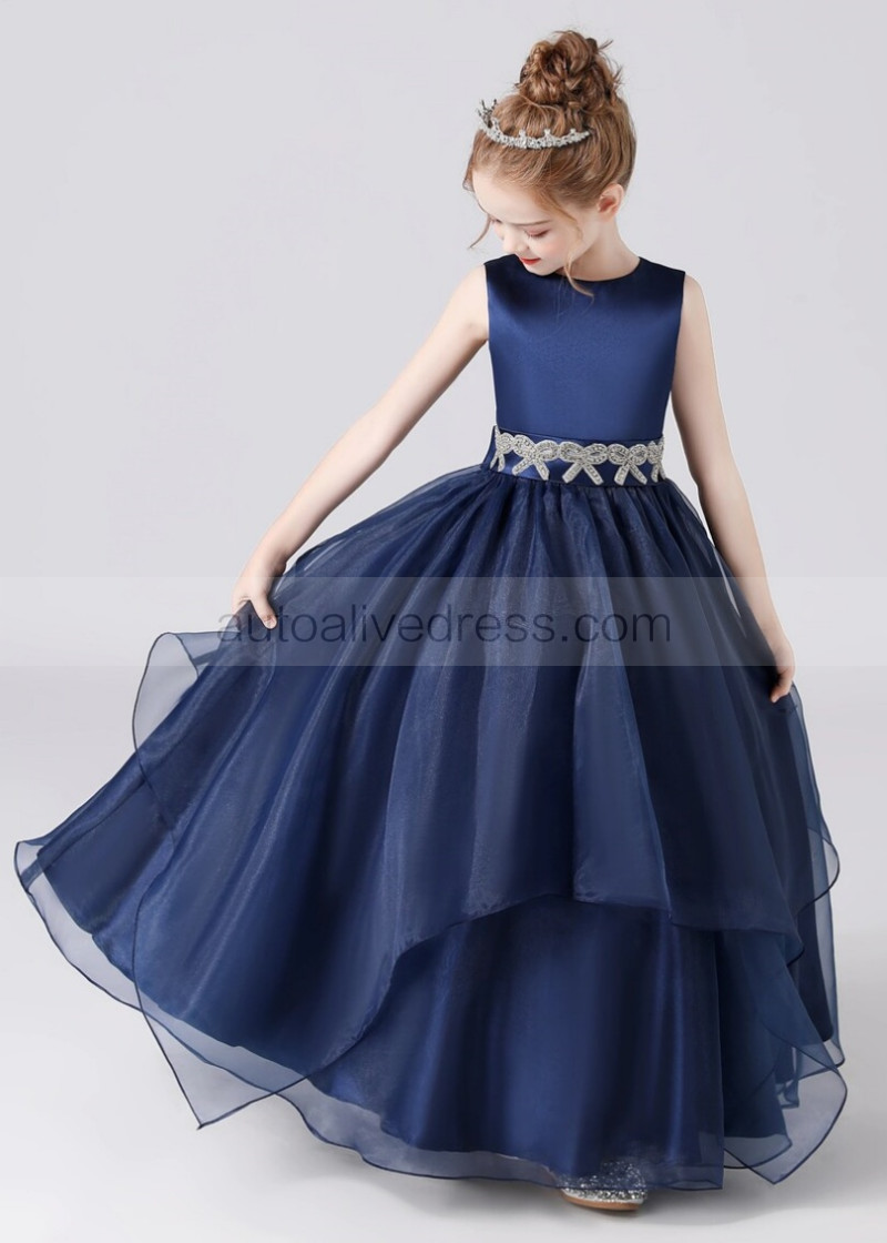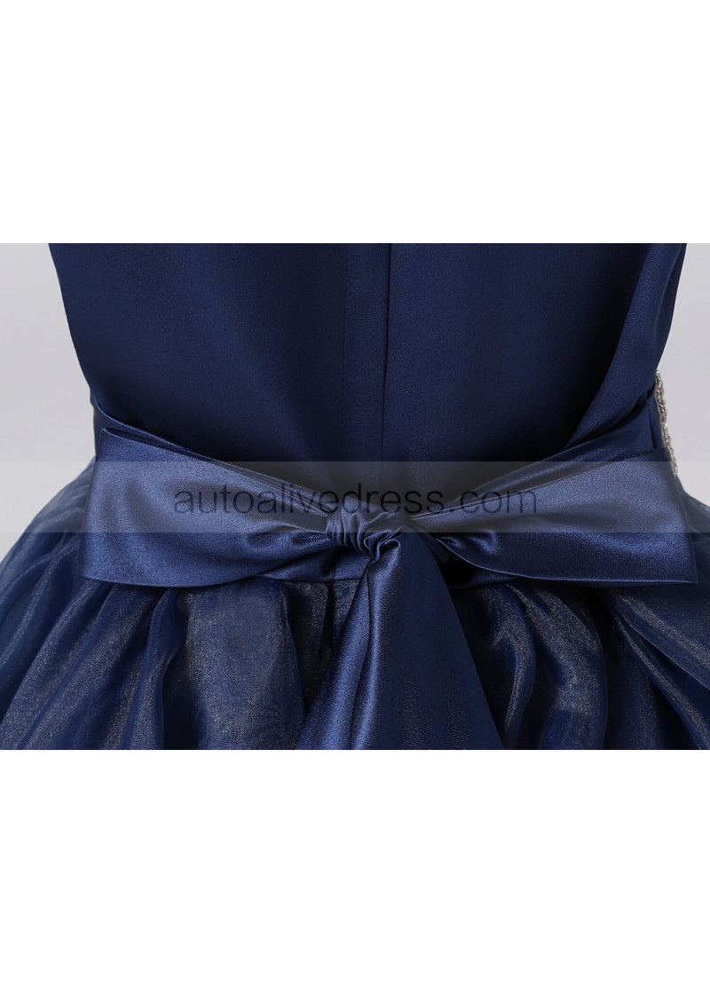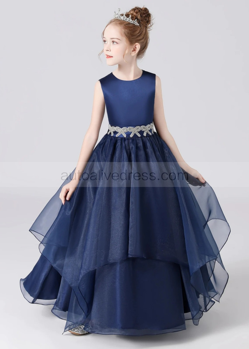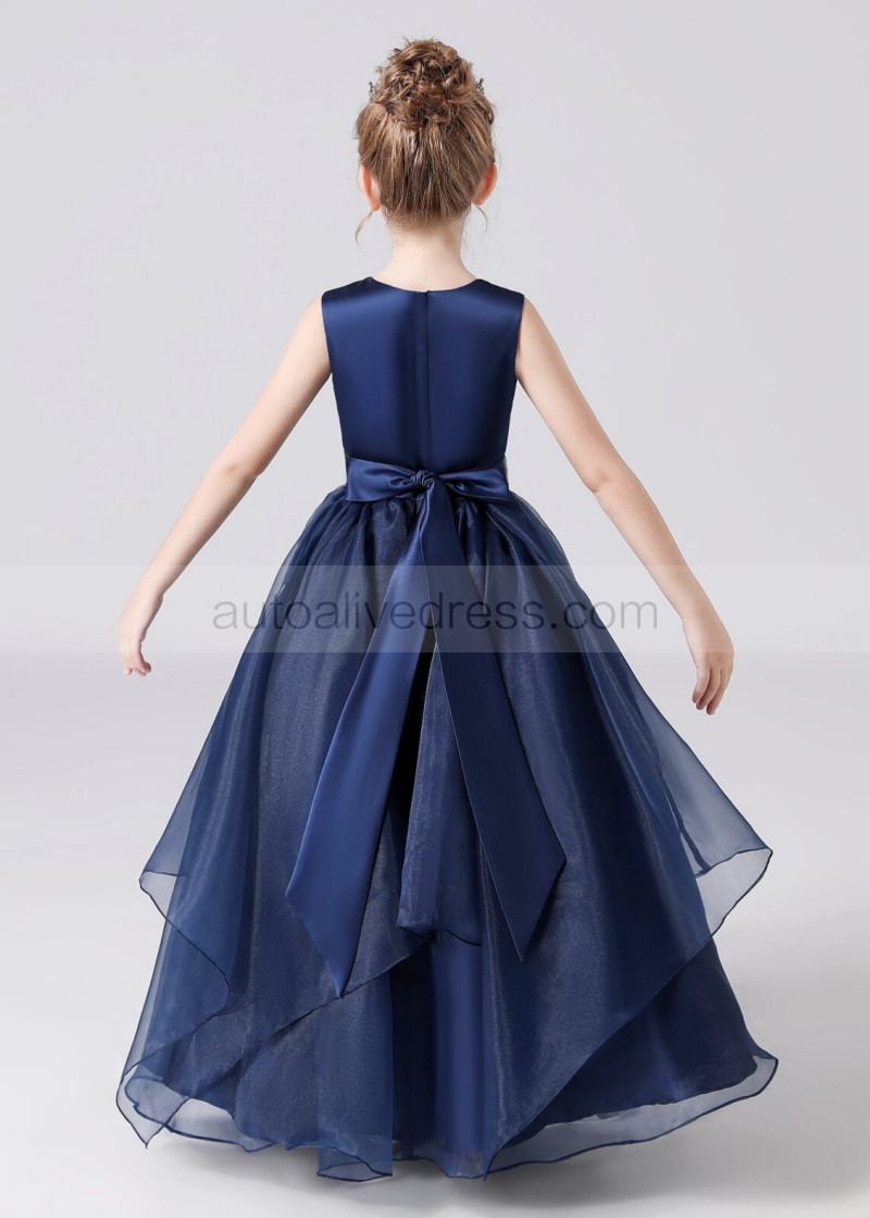 Navy Blue Satin Organza Gorgeous Flower Girl Dress