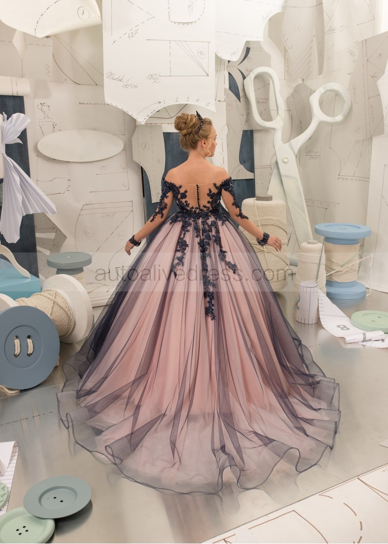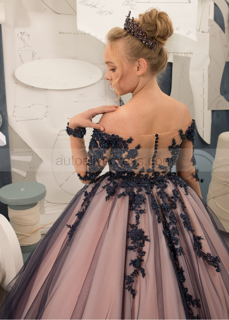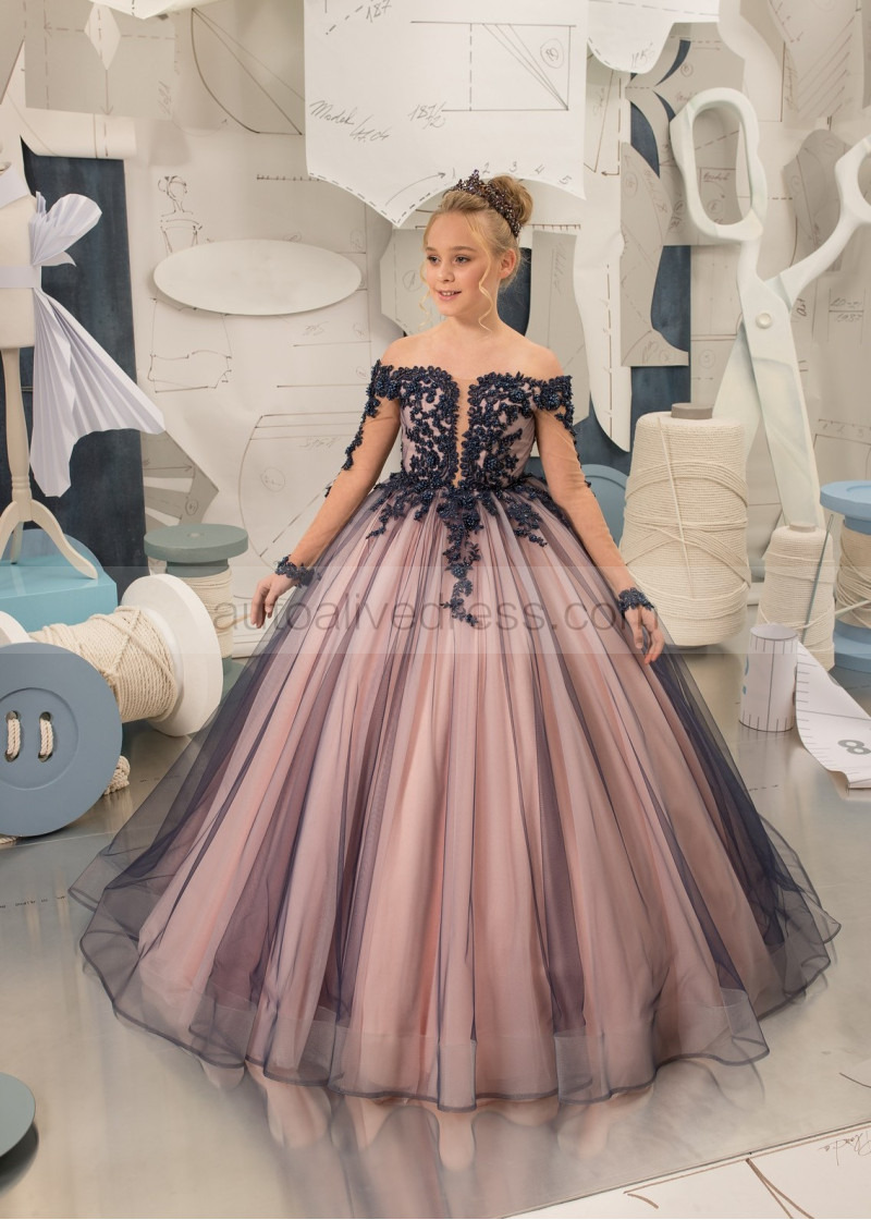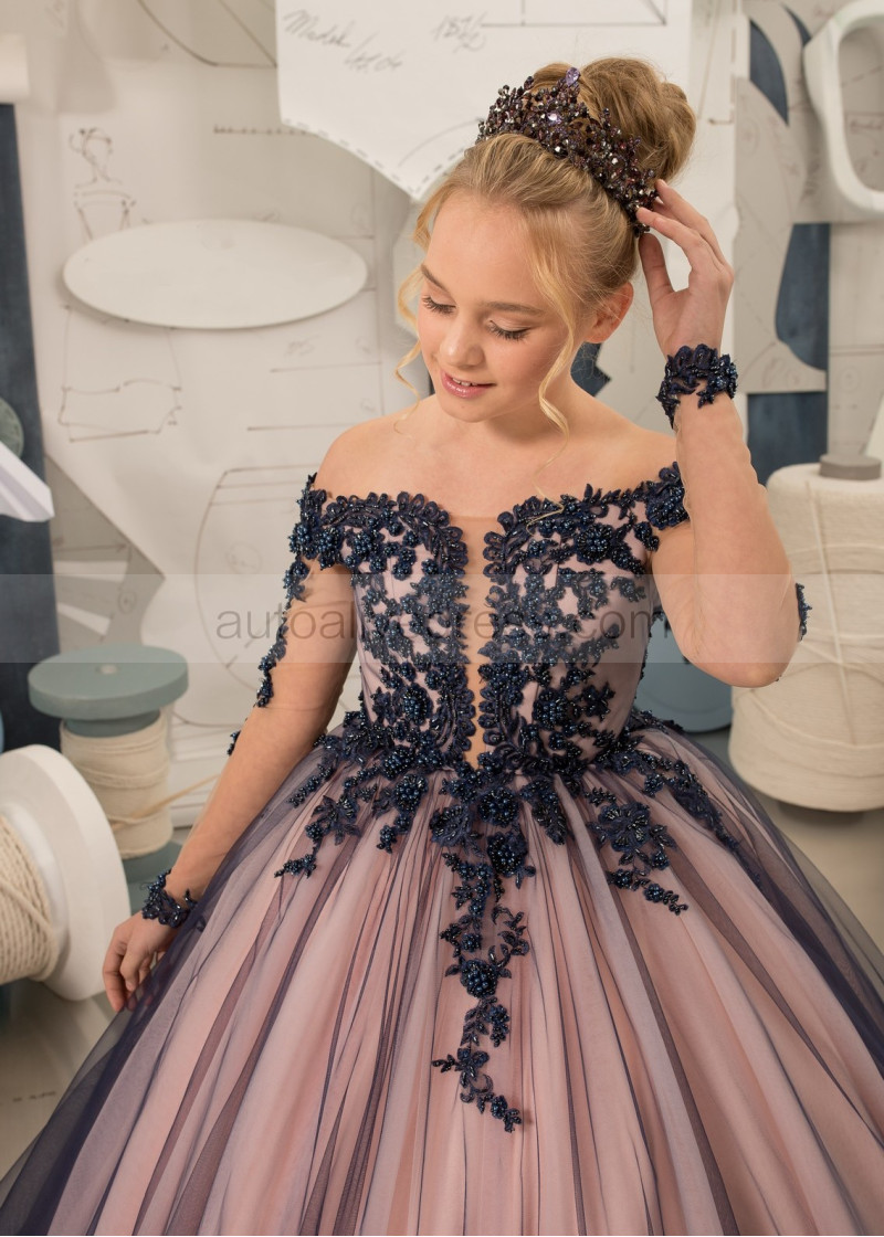 Off Shoulder Beaded Flower Girl Dress With Horsehair Trim