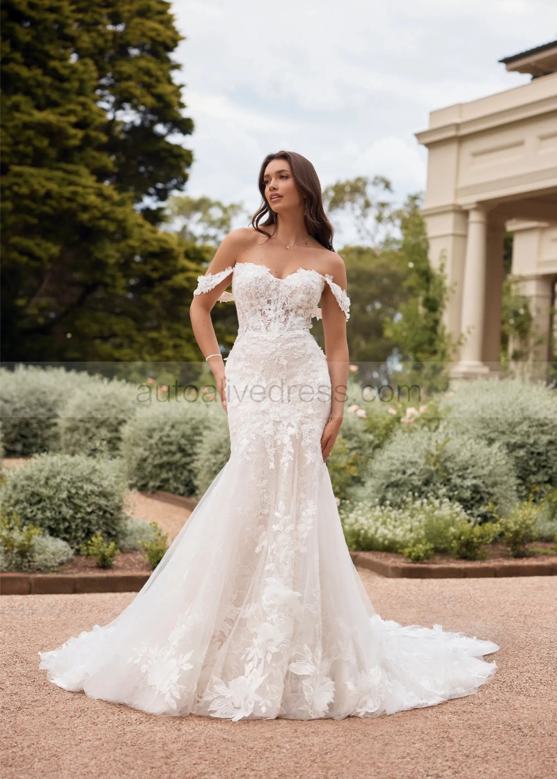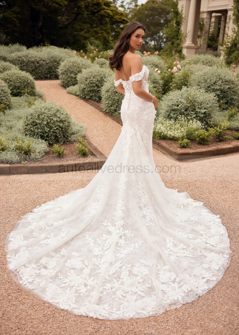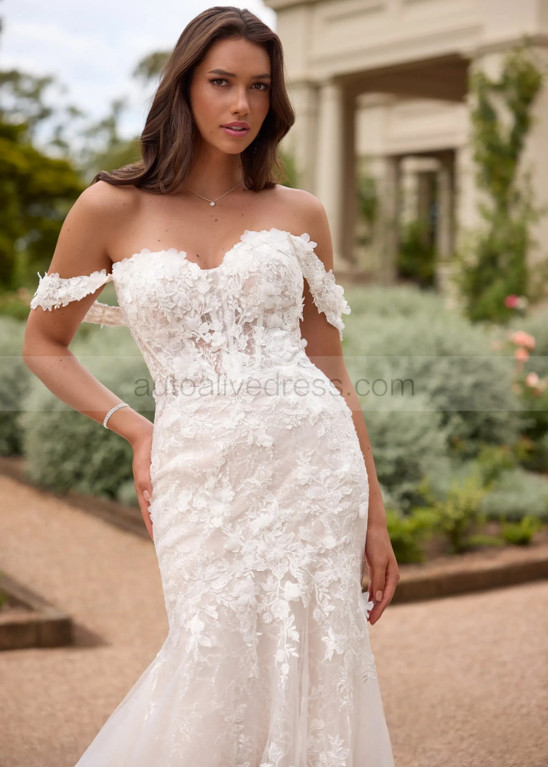 Off Shoulder Ivory 3D Lace Tulle Enchanting Wedding Dress