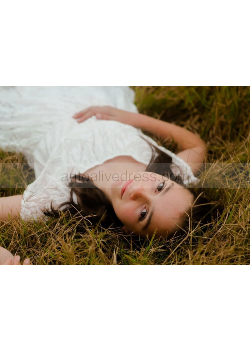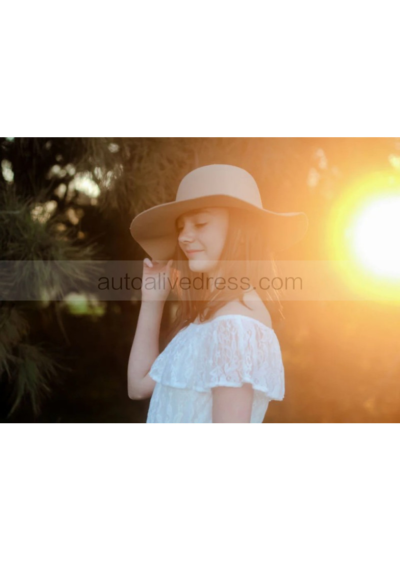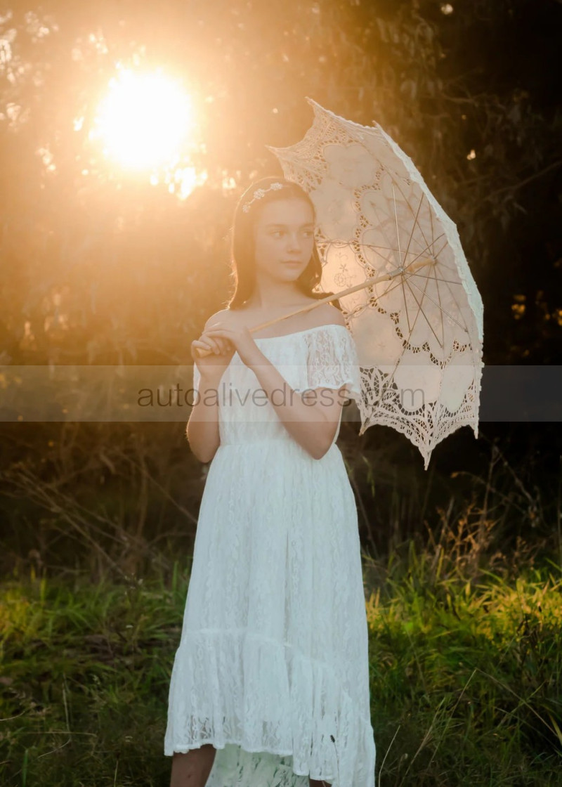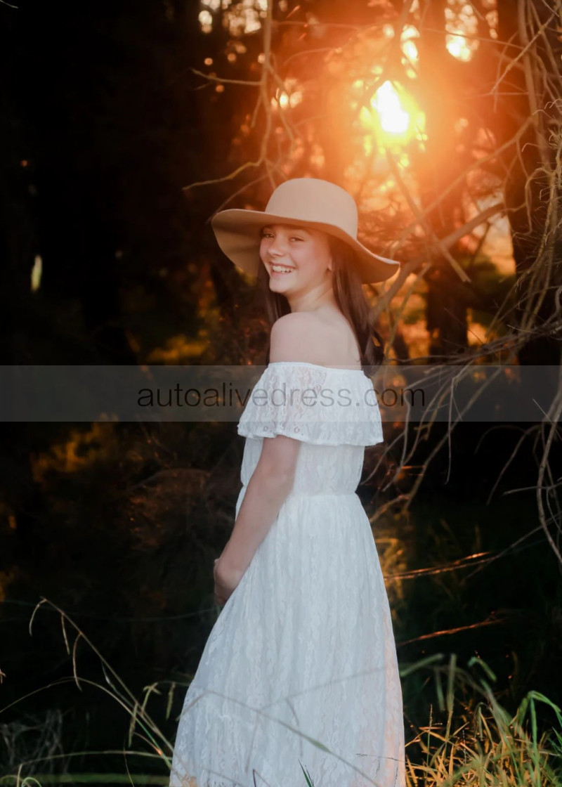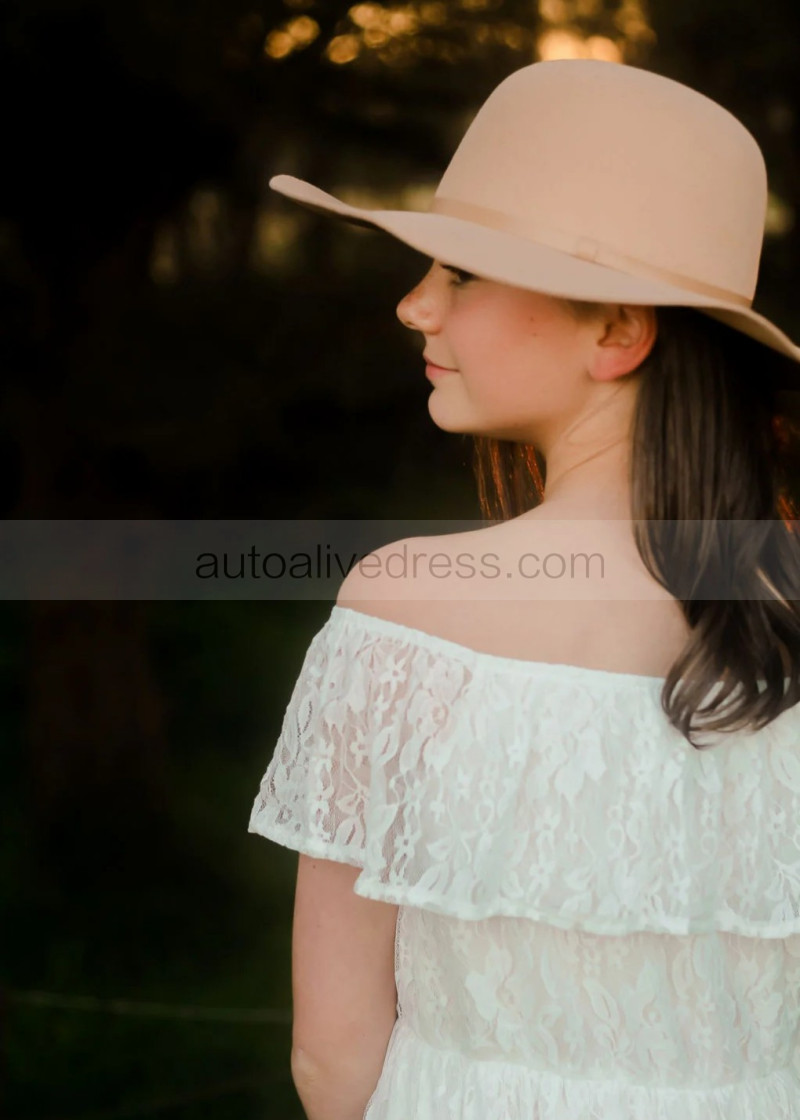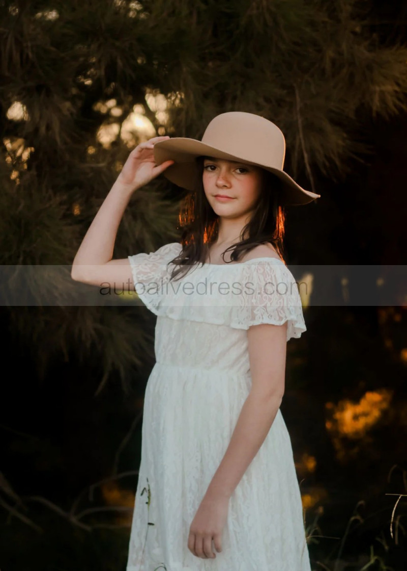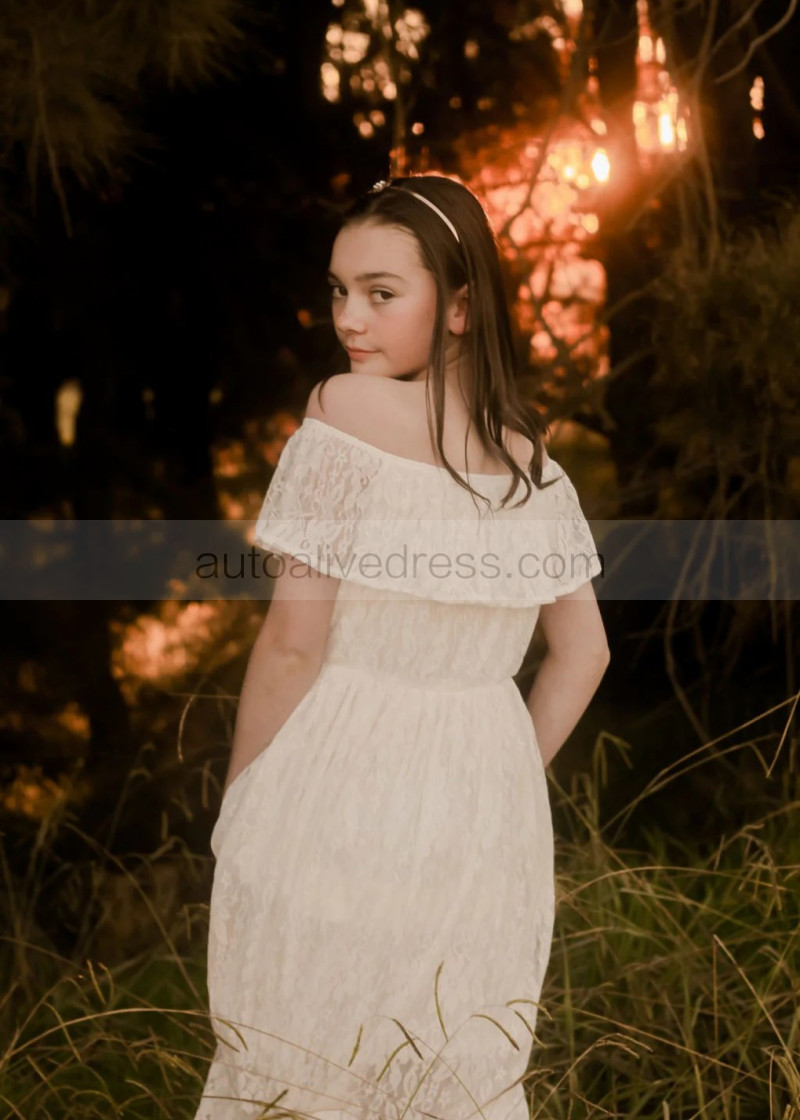 Off Shoulder Ivory Boho Lace Flower Girl Dress