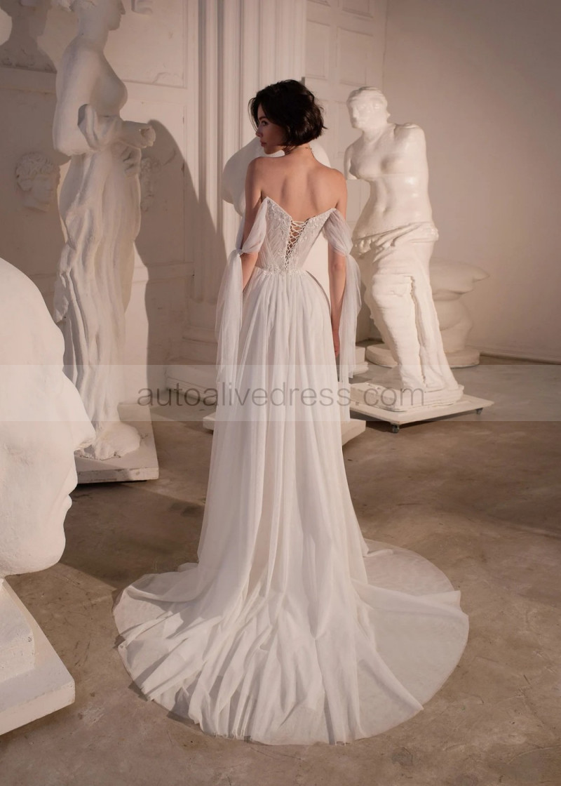 Off Shoulder Ivory Lace Tulle Simple Wedding Dress