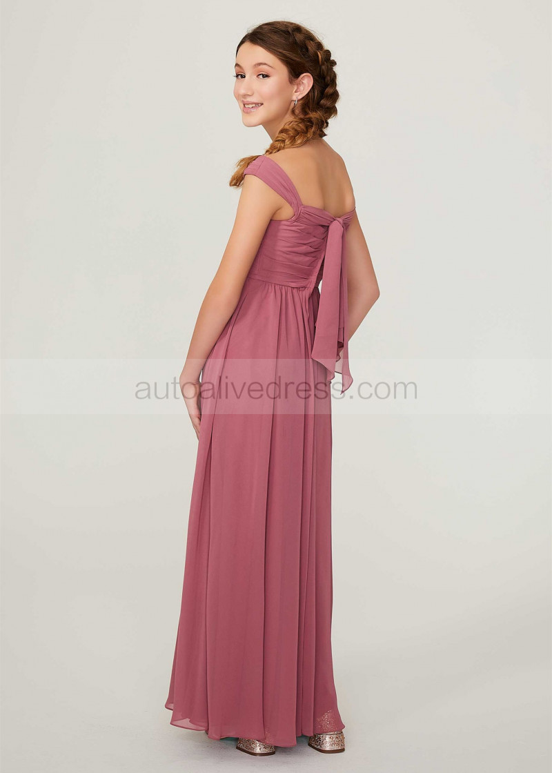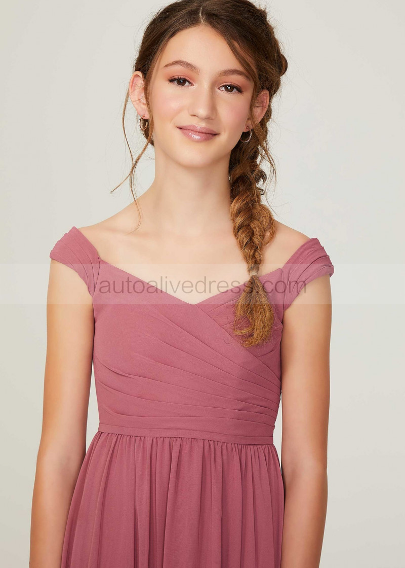 Off Shoulder Rosewood Pleated Chiffon Sweet Junior Bridesmaid Dress