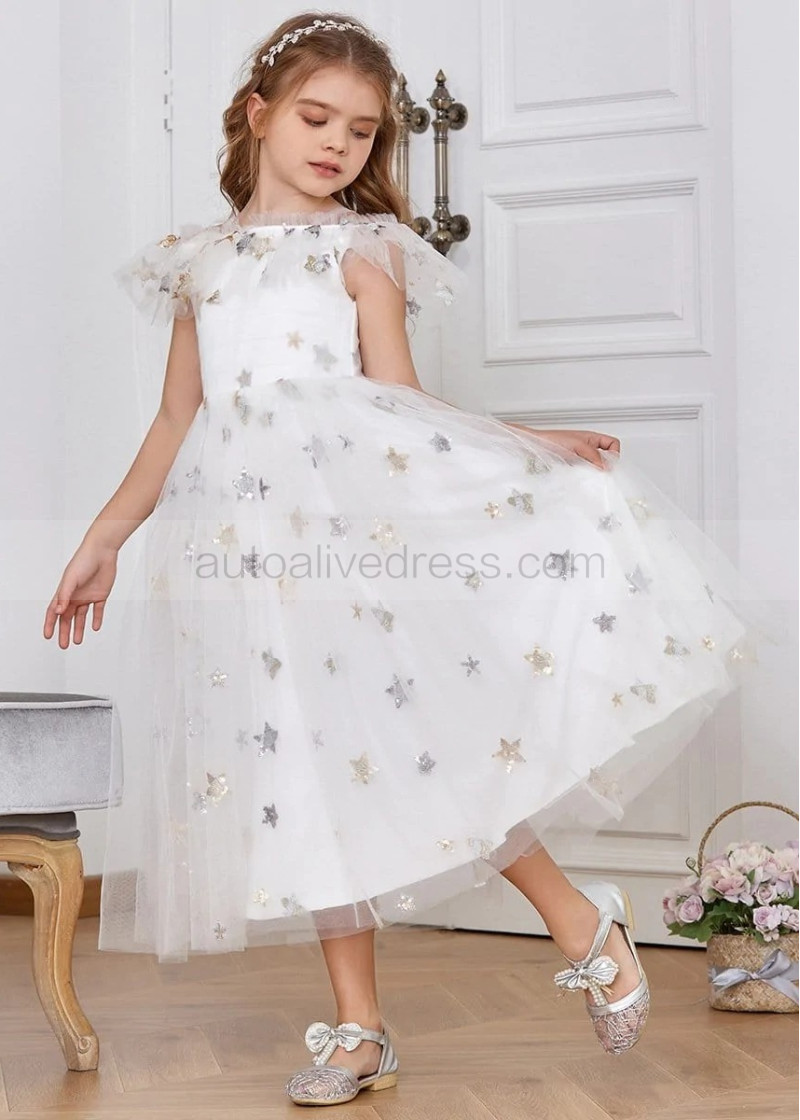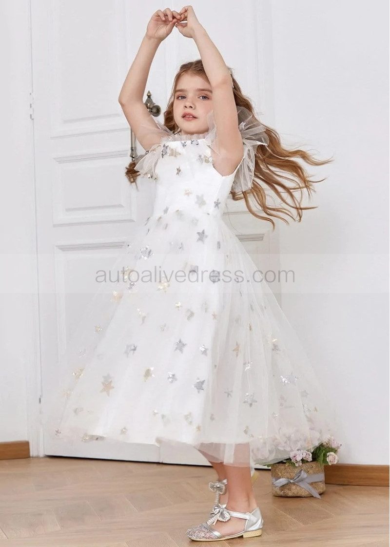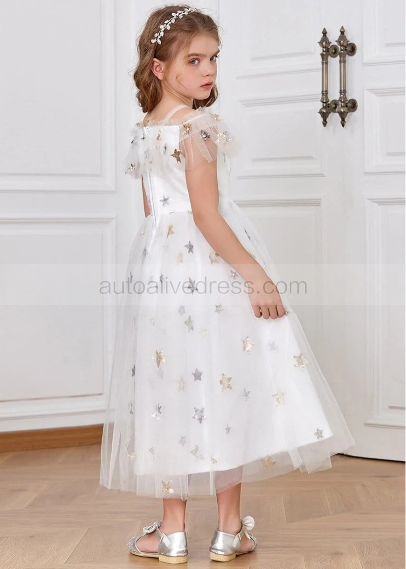 Off Shoulder Star Tulle Shimmering Flower Girl Dress