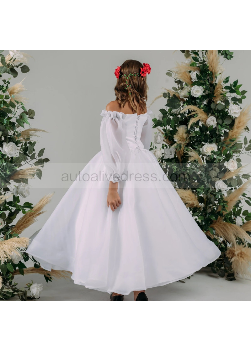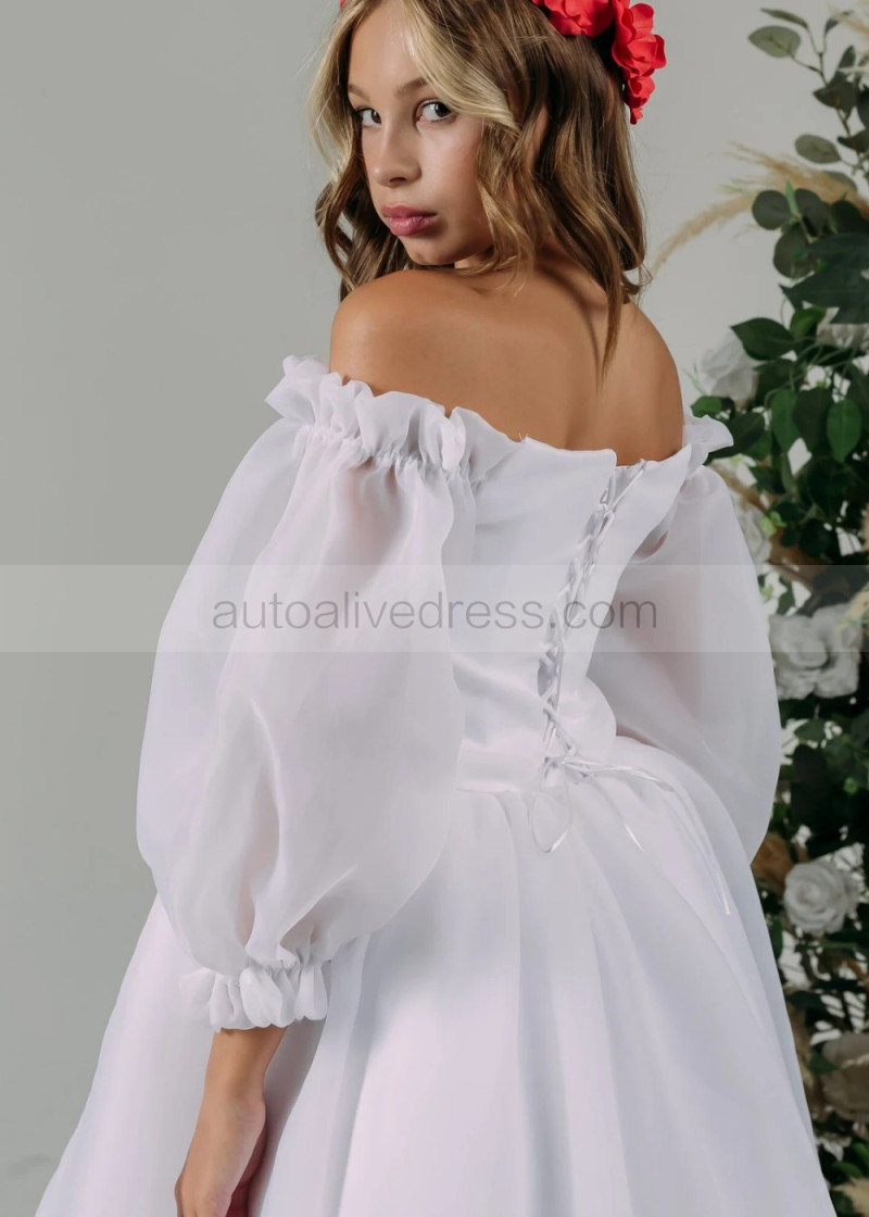Off Shoulder White Organza Corset Back Flower Girl Dress