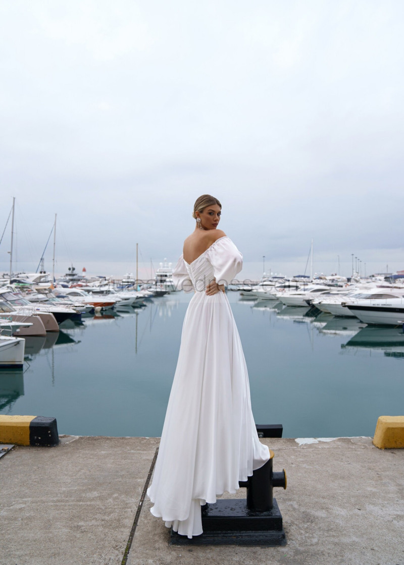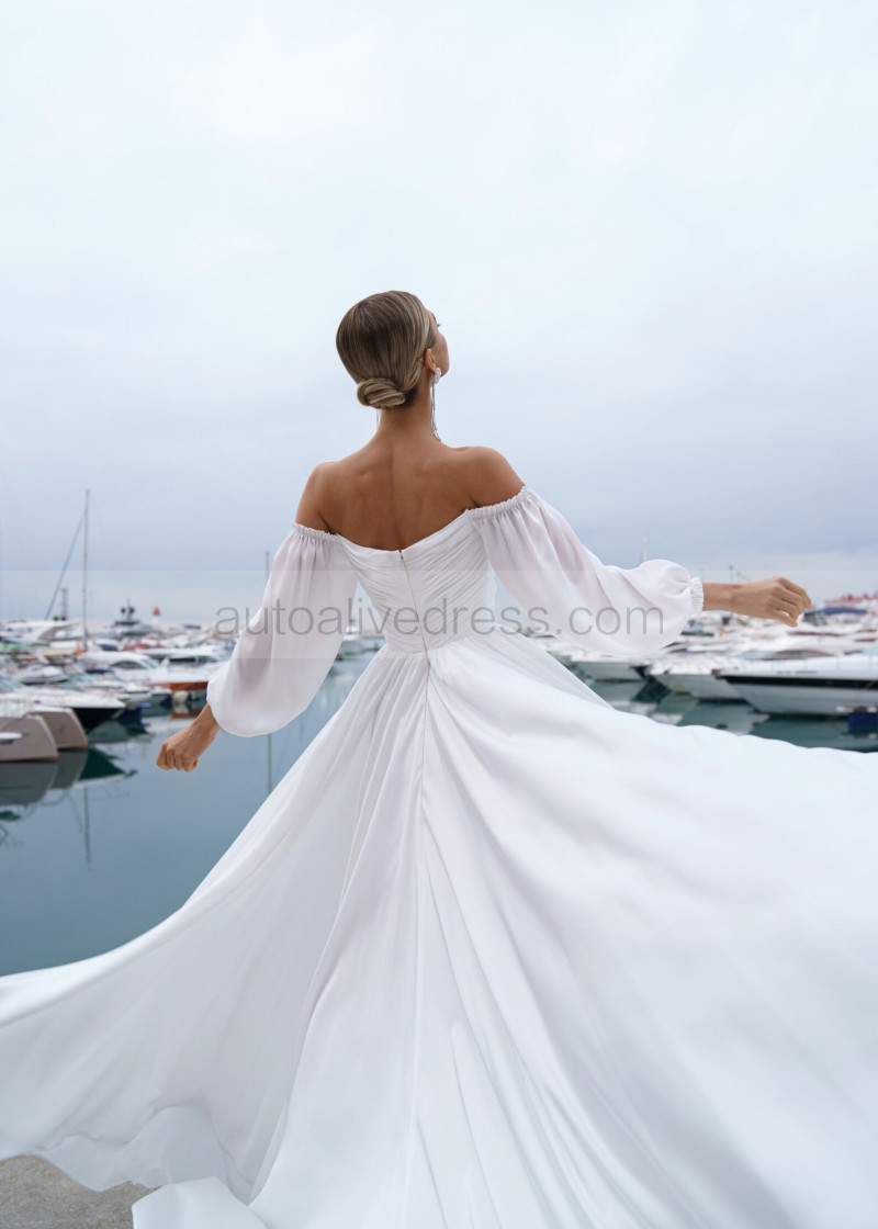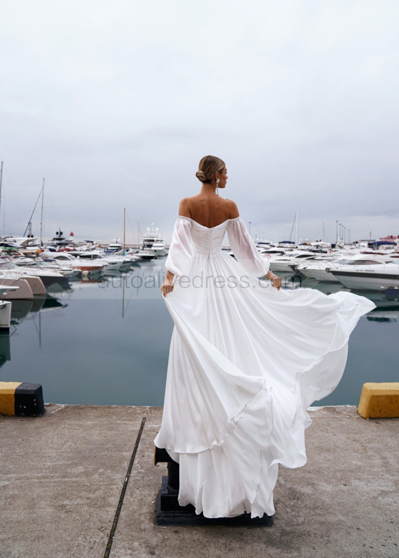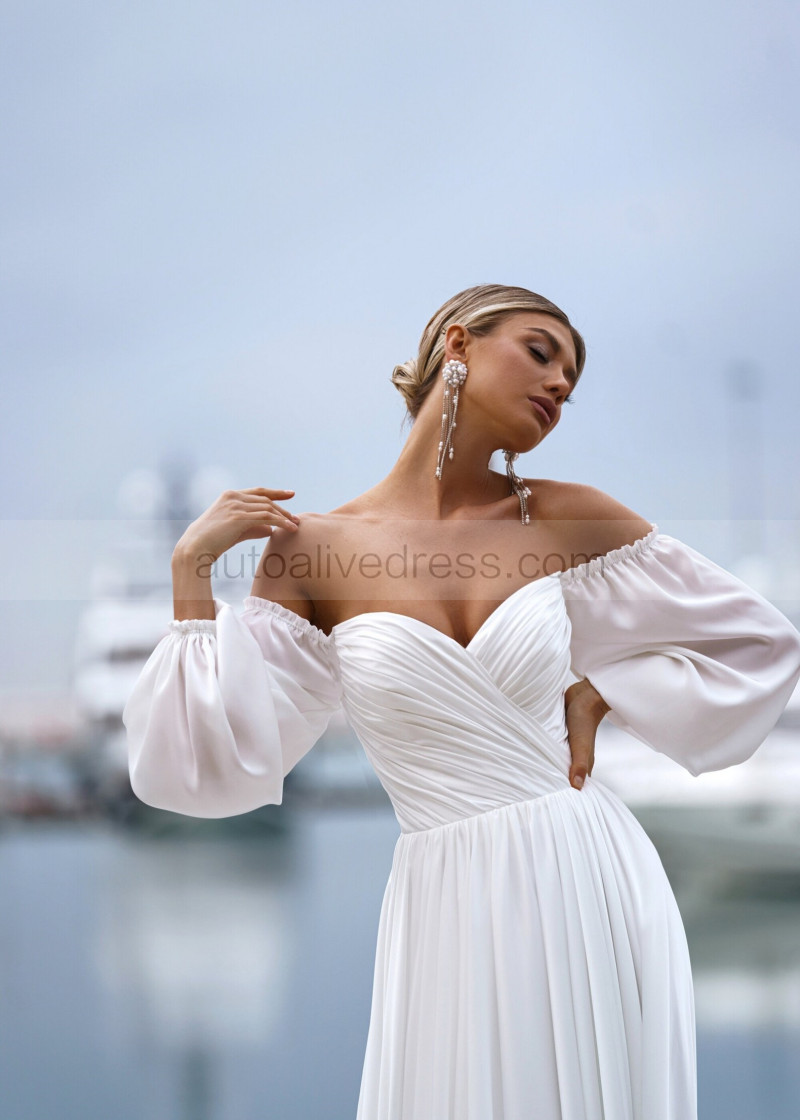 Off Shoulder White Pleated Chiffon Bohemian Beach Wedding Dress