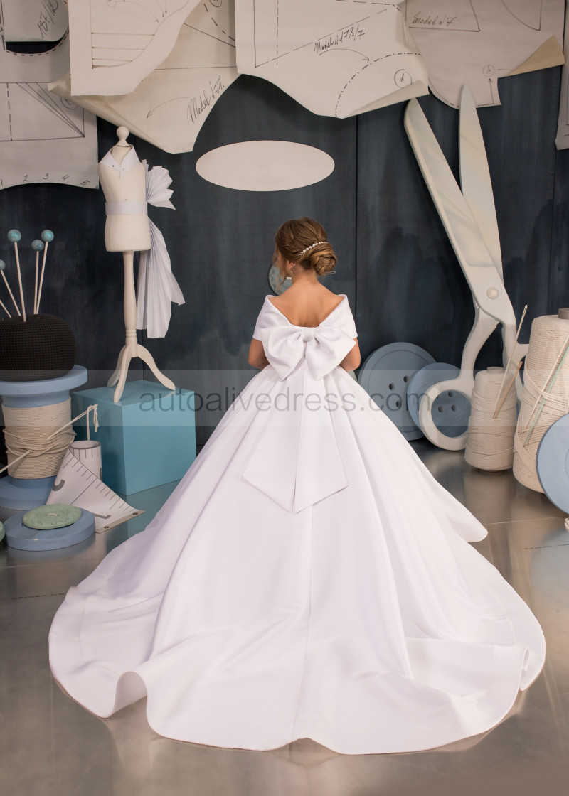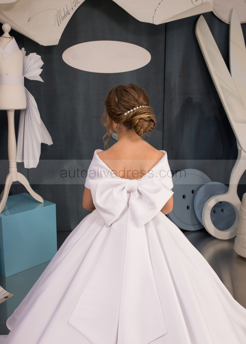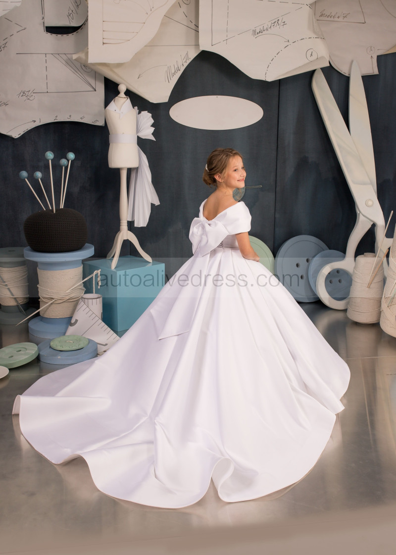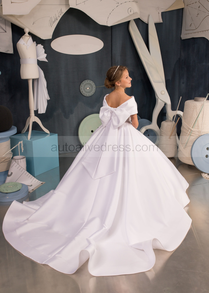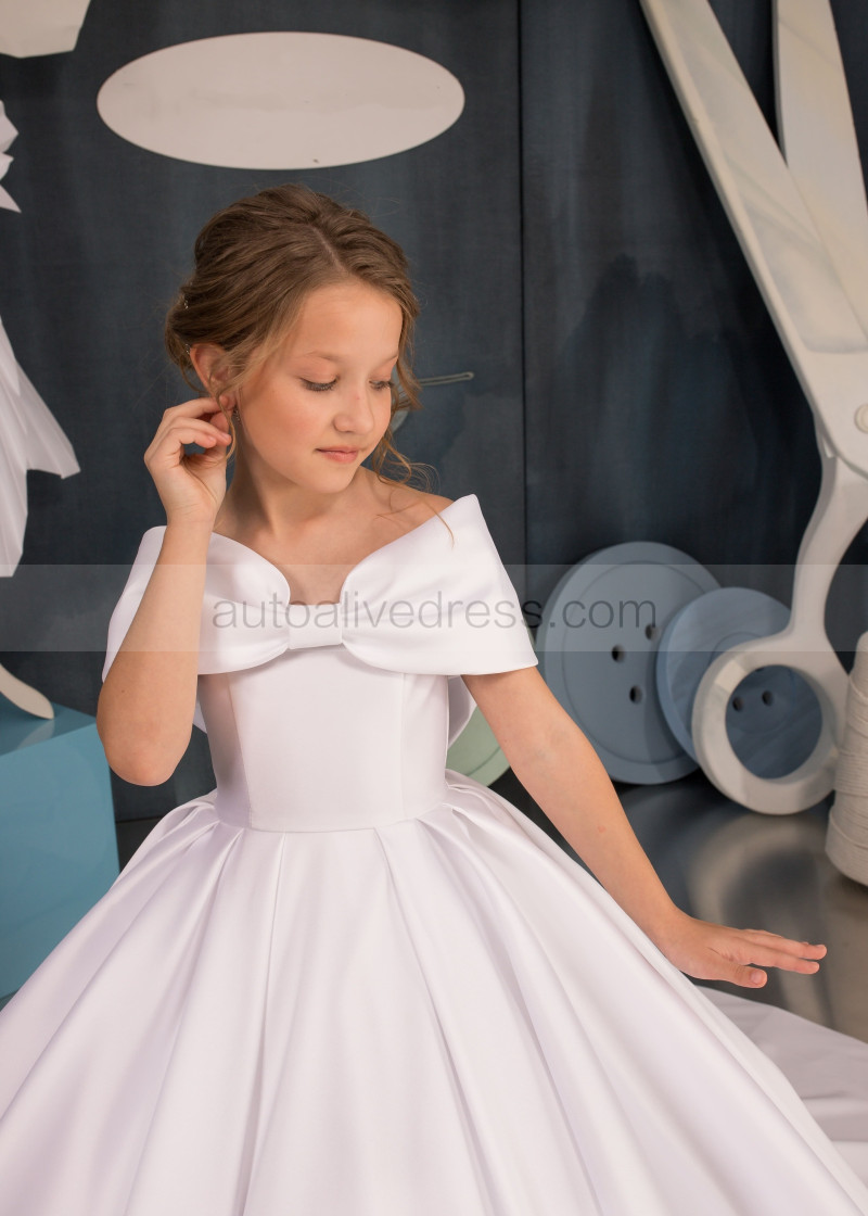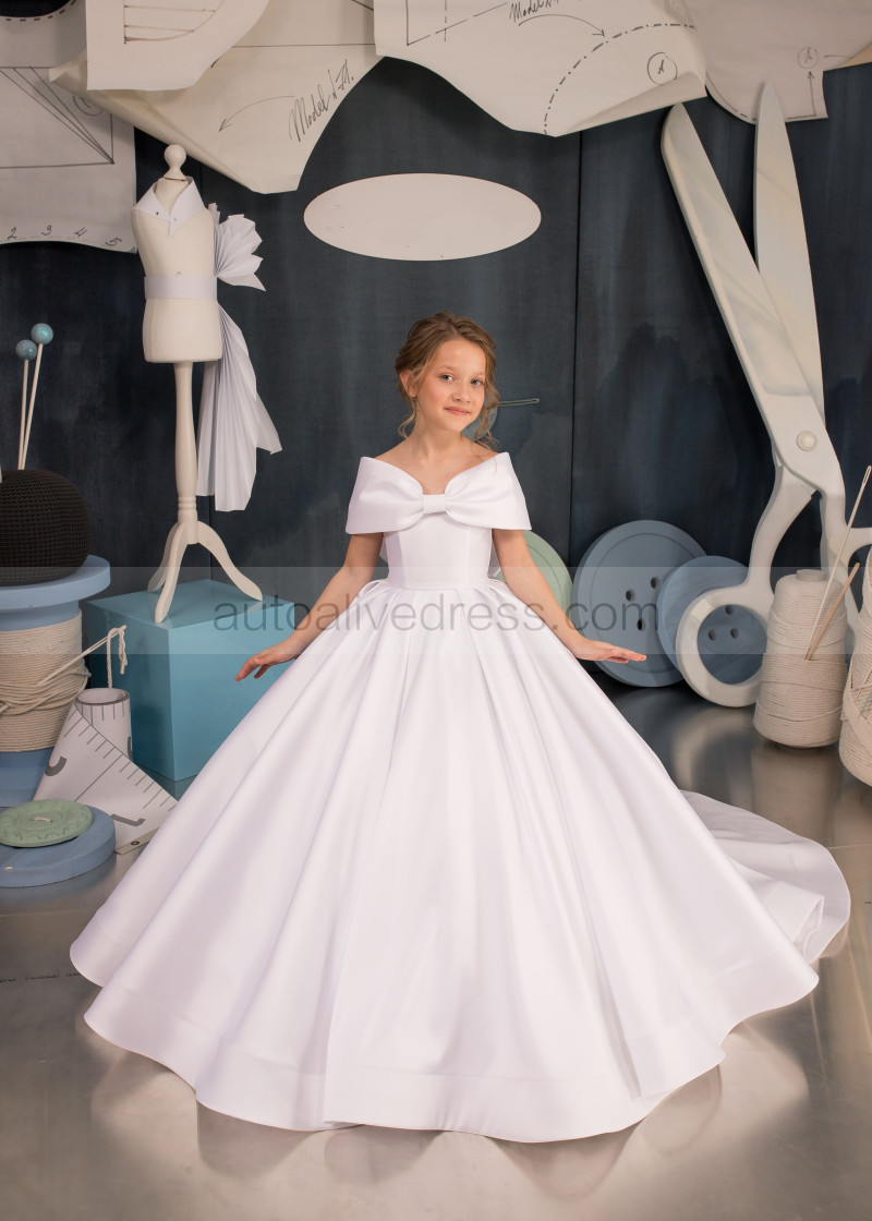 Off Shoulder White Satin Gorgeous Flower Girl Dress