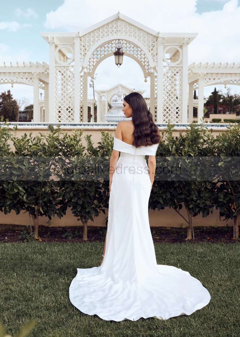 Off Shoulder White Satin High Slit Sexy Wedding Dress