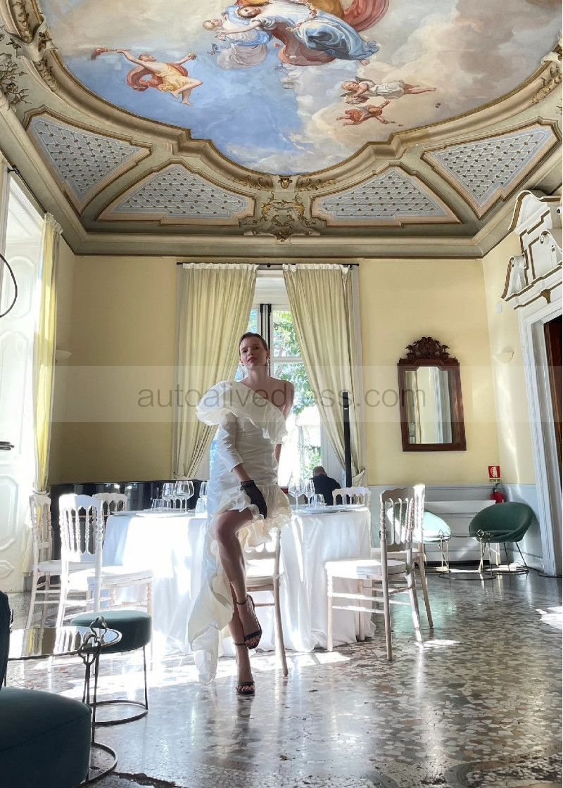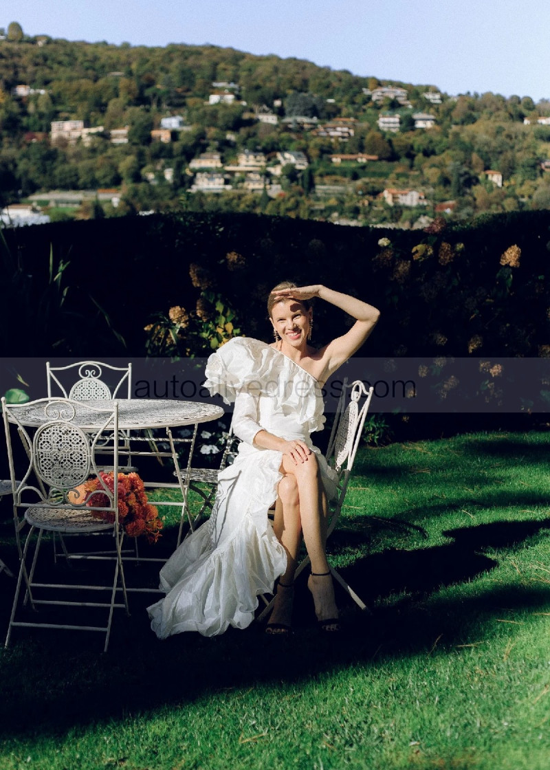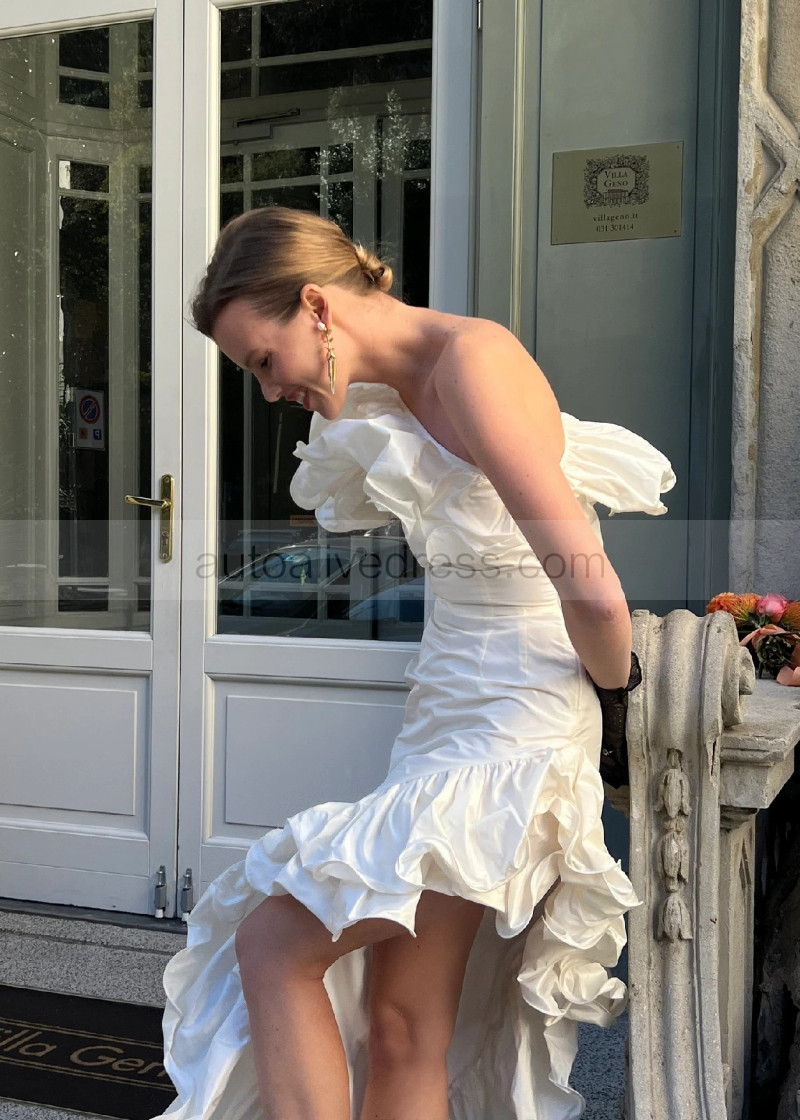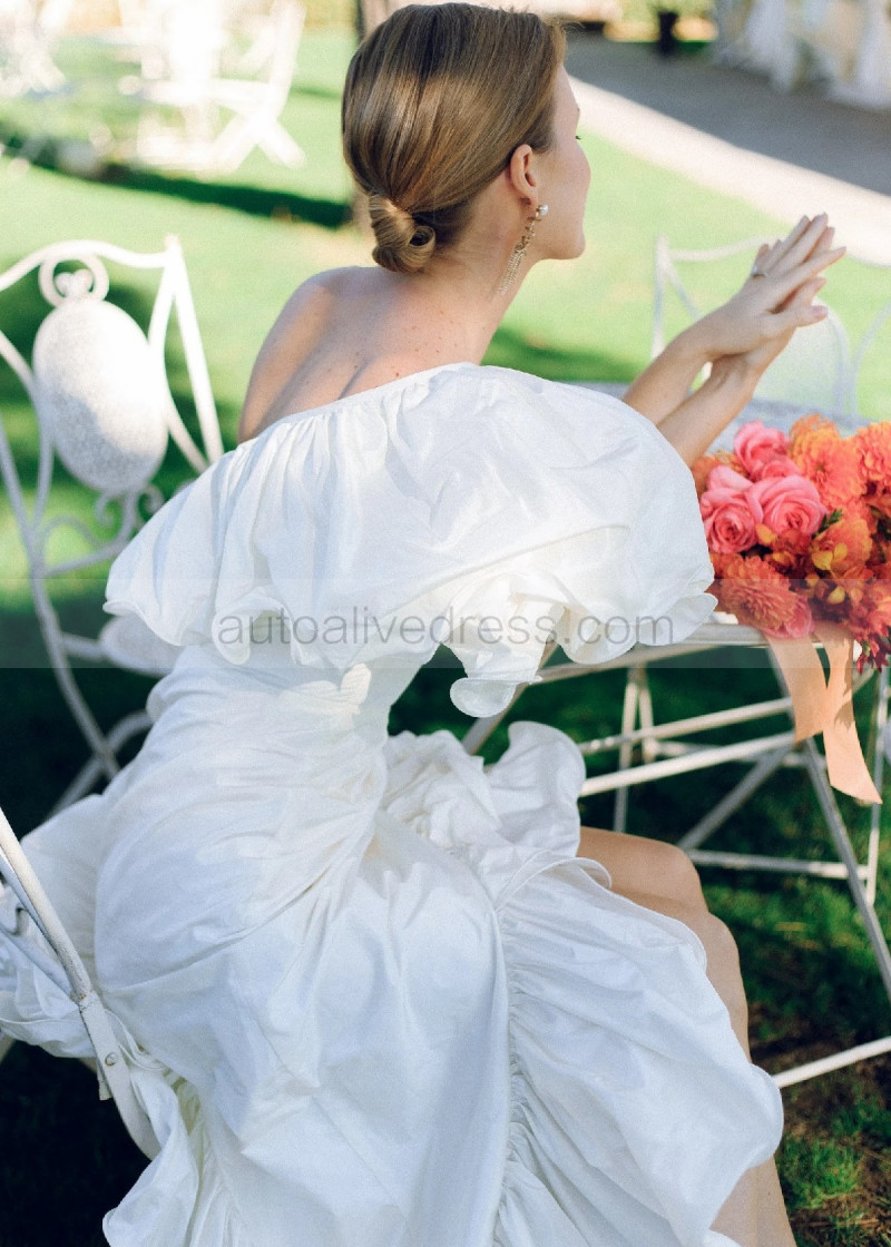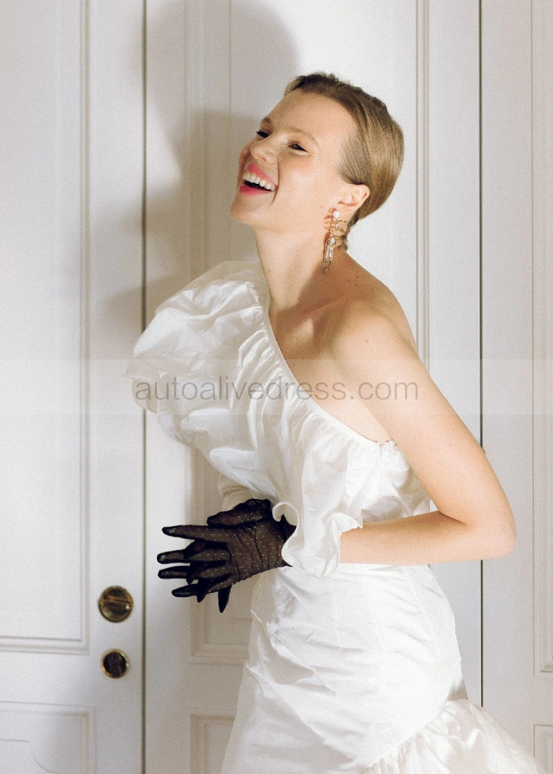 One Shoulder Ivory Taffeta Chic Wedding Dress