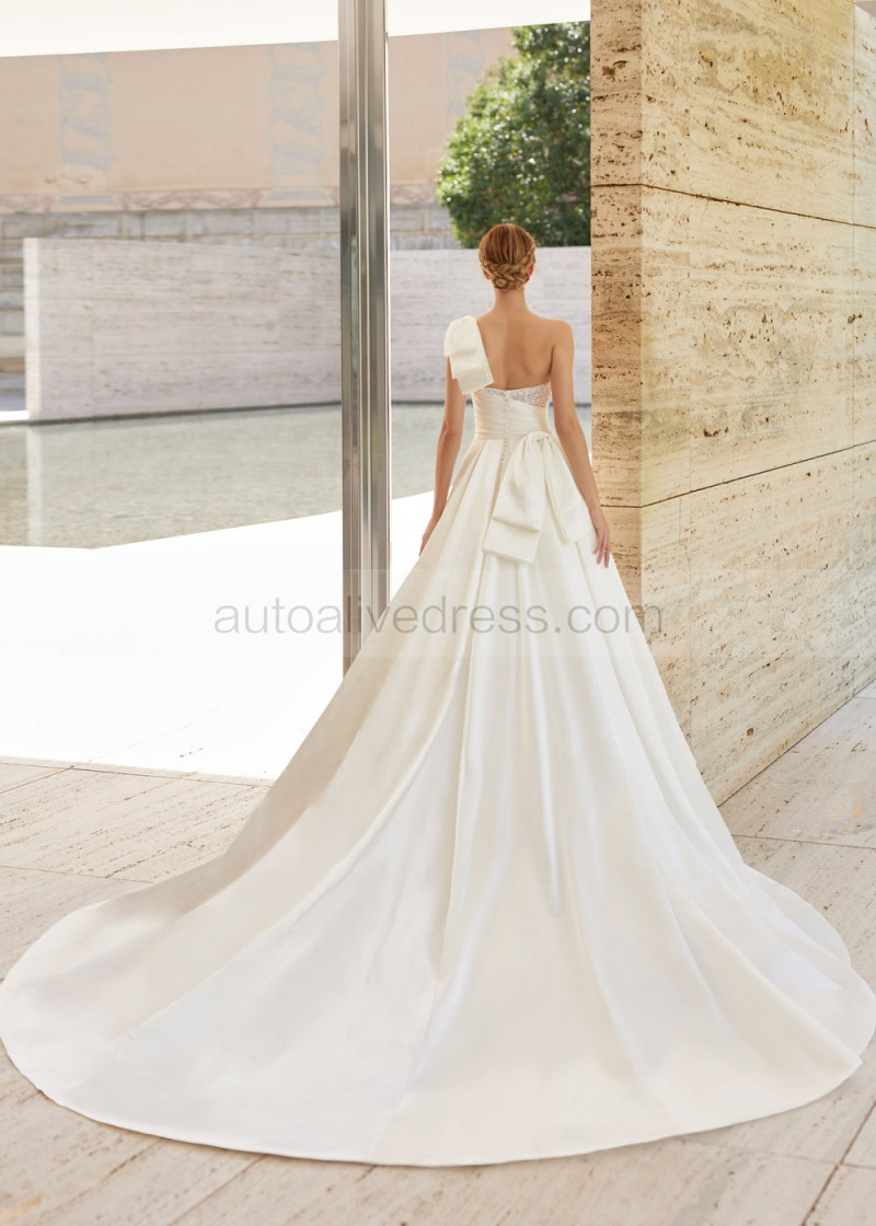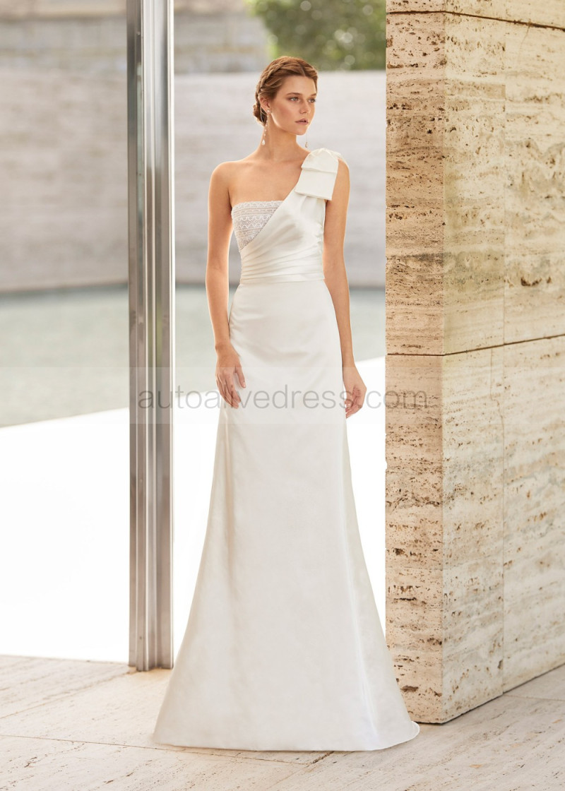 One Shoulder Lace Satin Sexy Wedding Dress With Remoavable Train