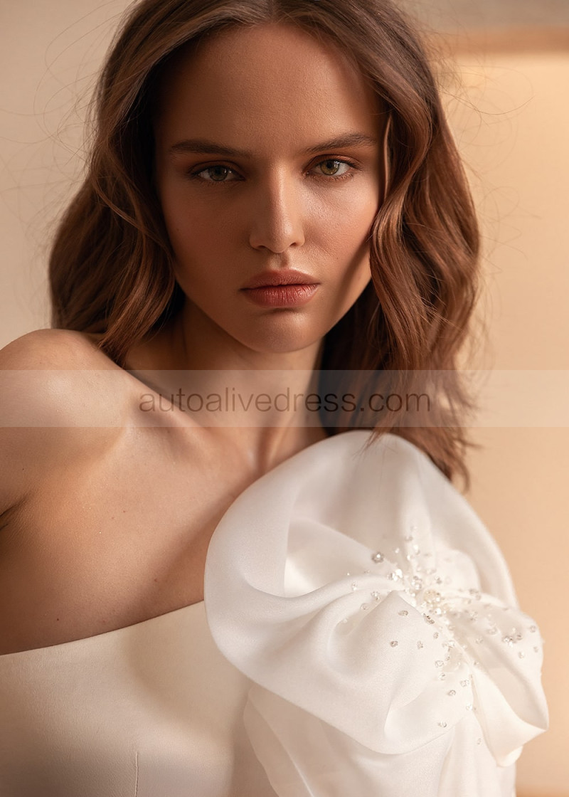 One Shoulder Satin Stylish Wedding Dress With Handmade Flower