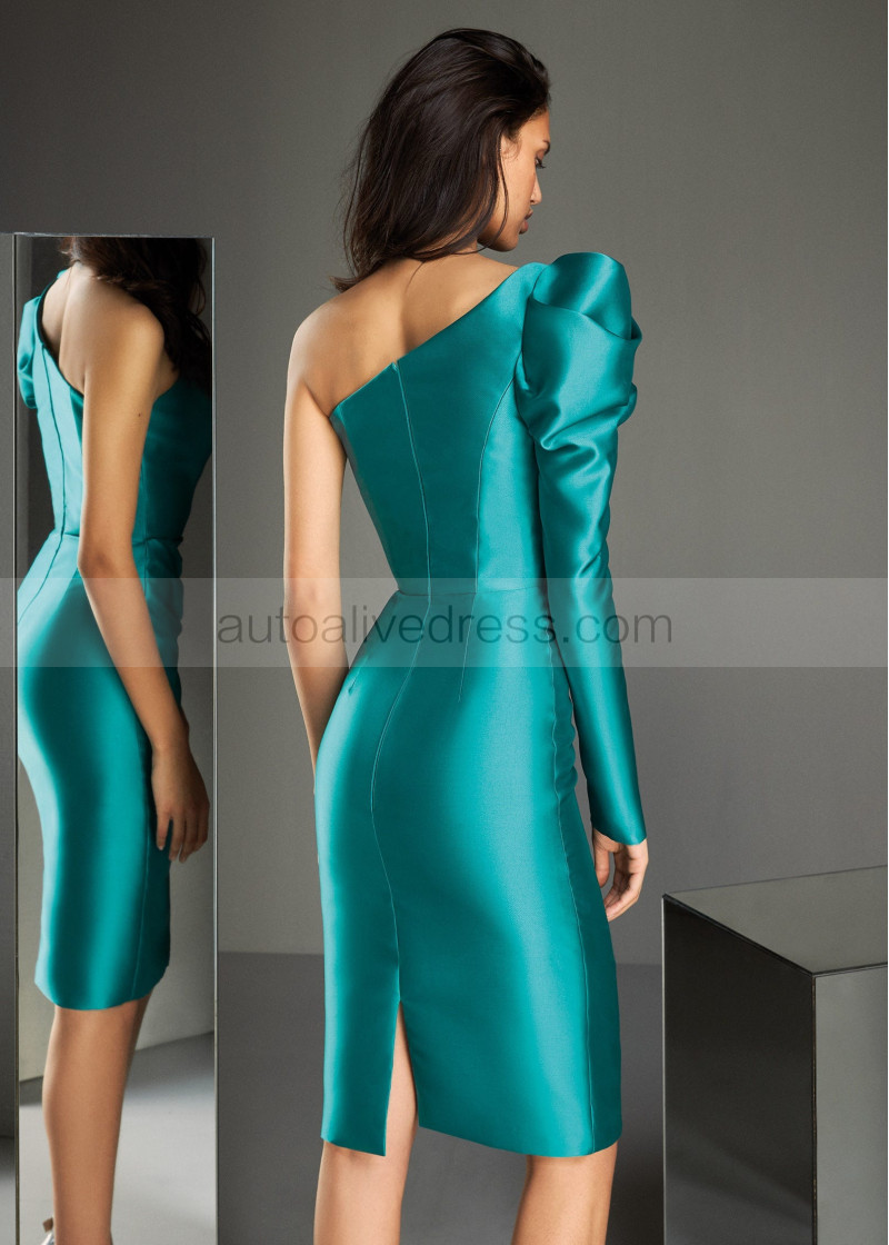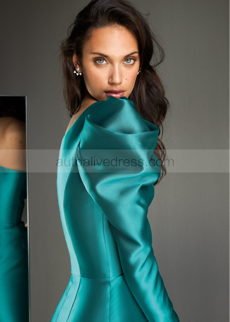 One Shoulder Teal Satin Mother Of The Bride Dress