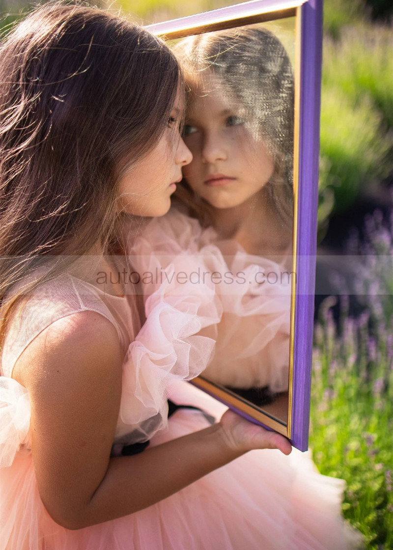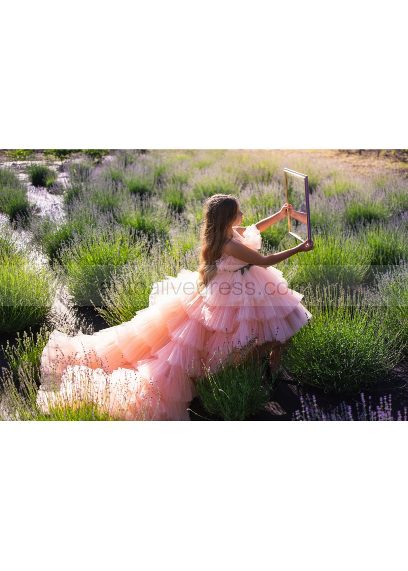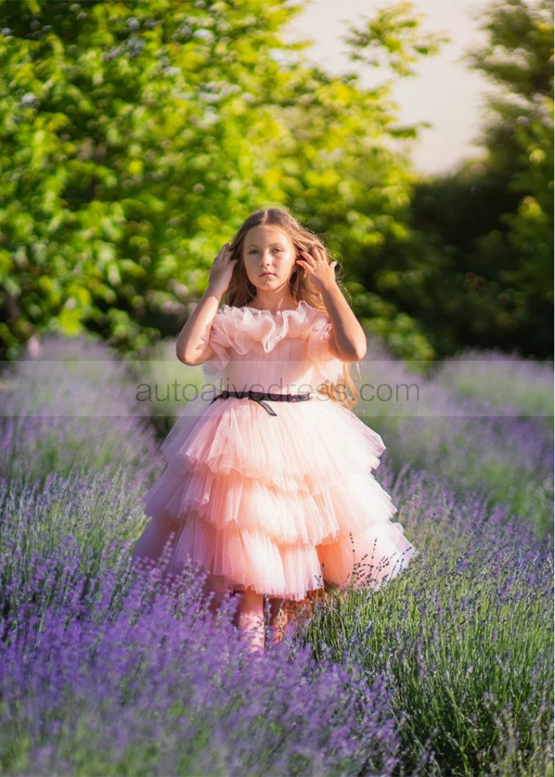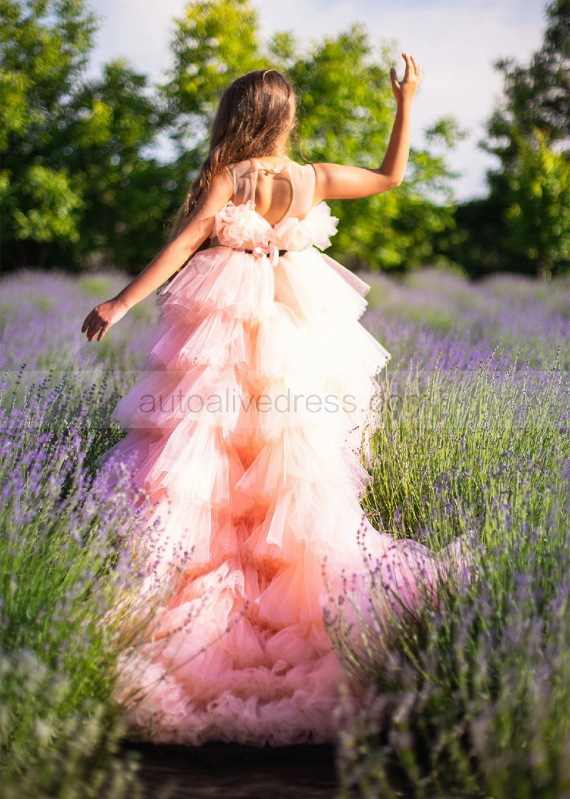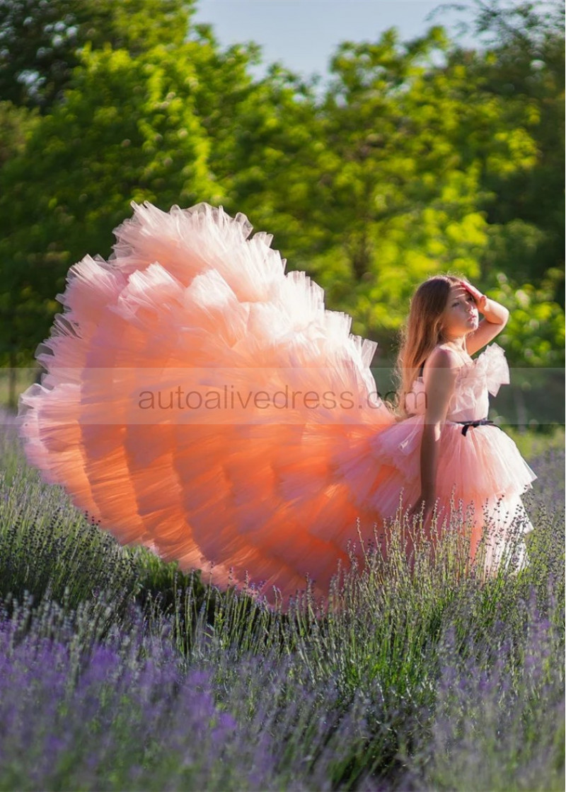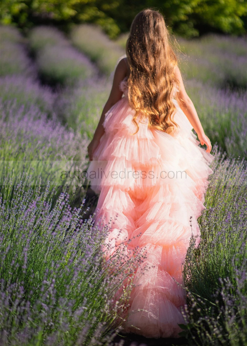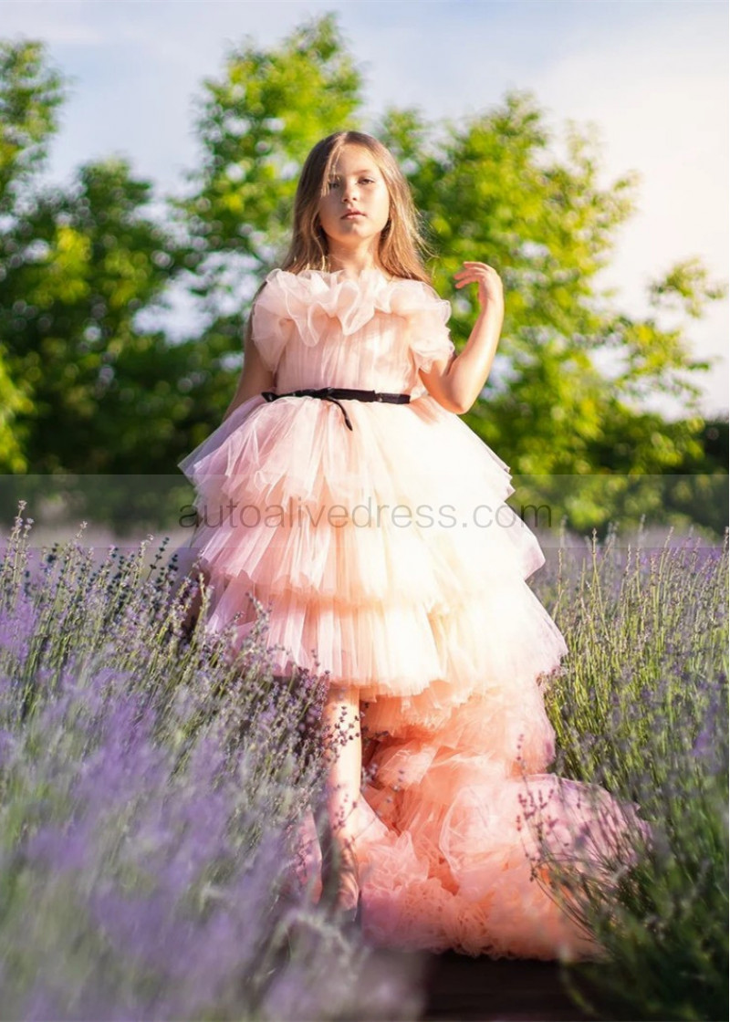 Peach Tulle Tiered High Low Stunning Flower Girl Dress