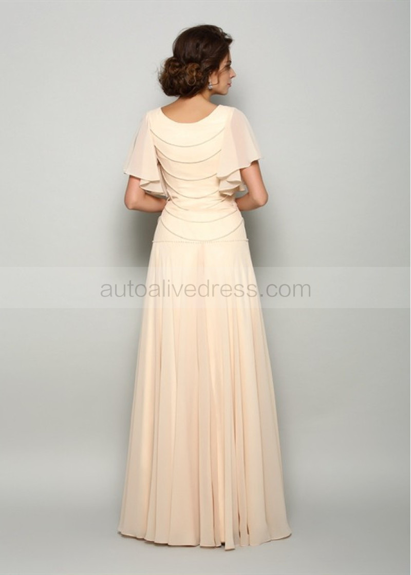 Pearl Beaded Champagne Chiffon Mother Of The Bride Dress