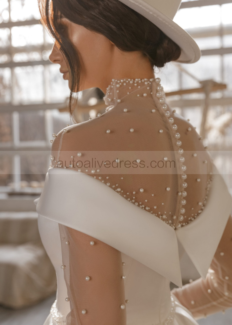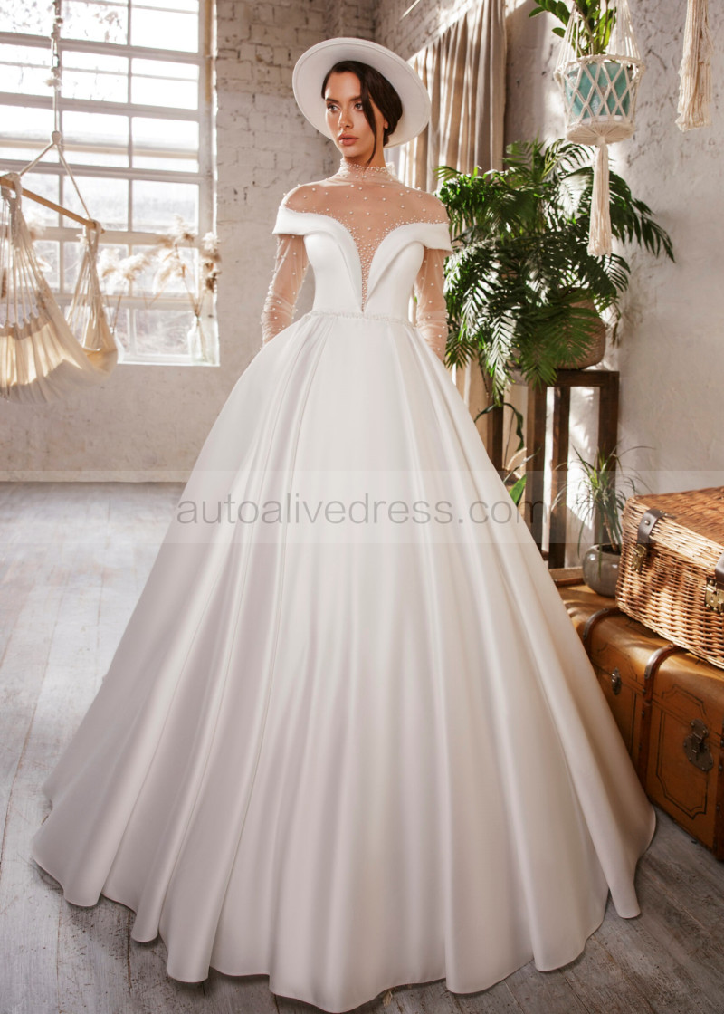 Pearl Beaded Ivory Satin Royal Wedding Dress