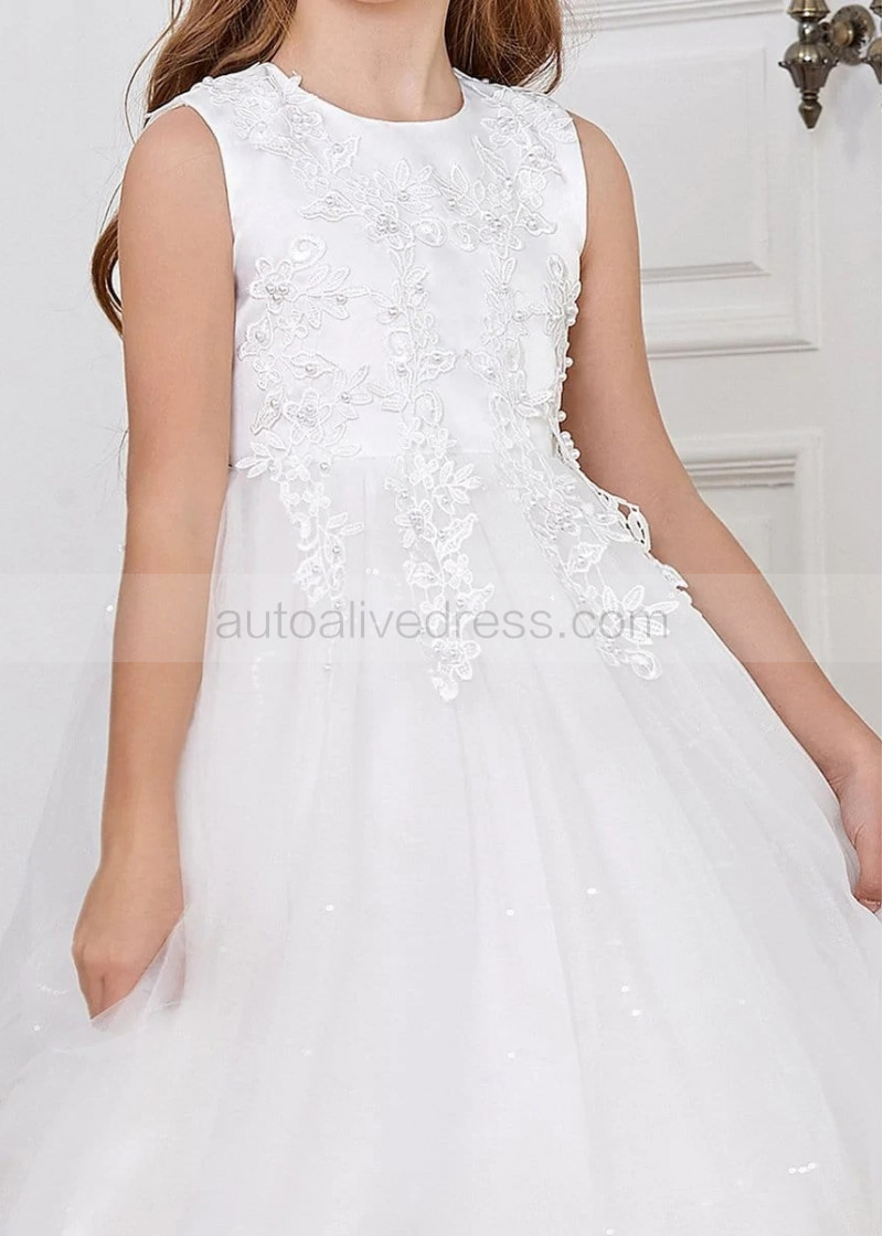 Pearl Beaded Lace Glitter Tulle Flower Girl Dress Special Occasion Dress