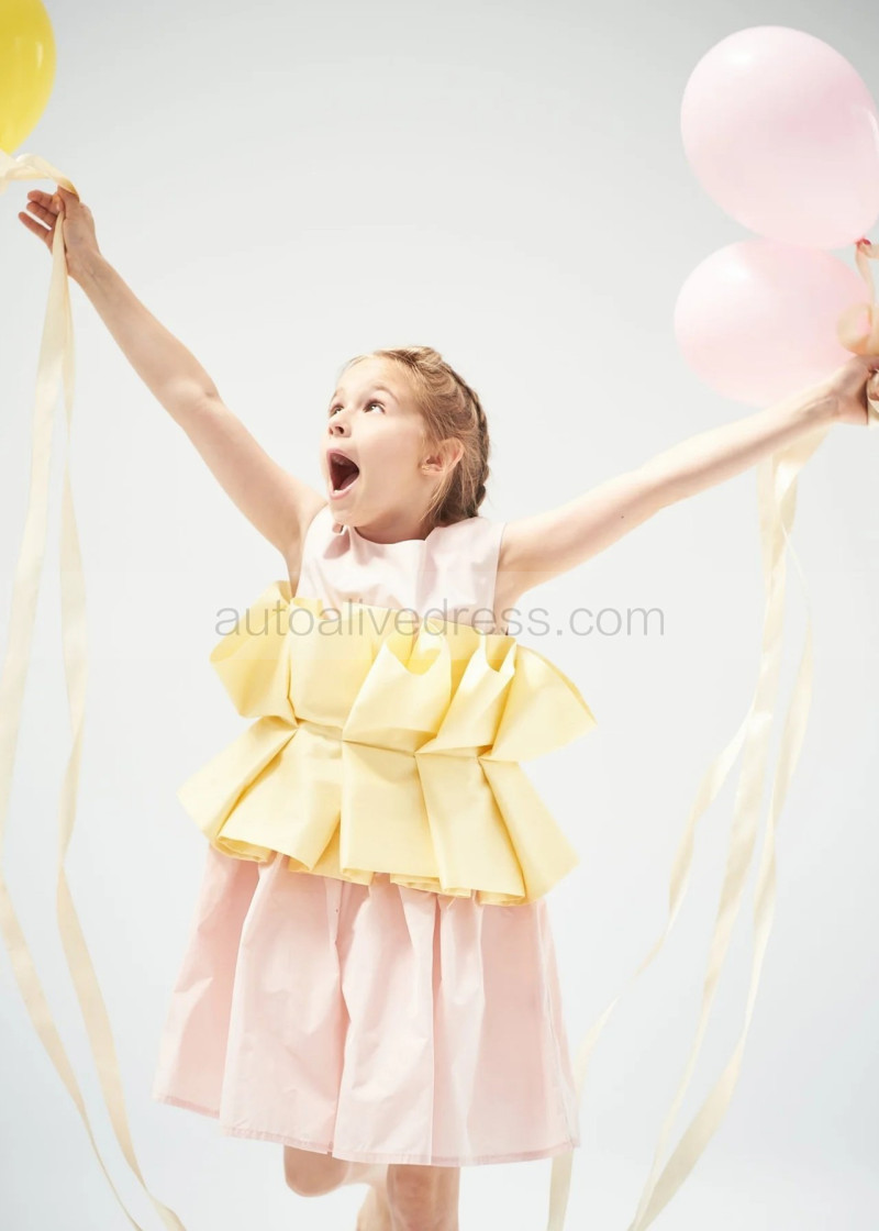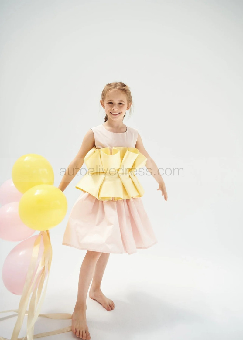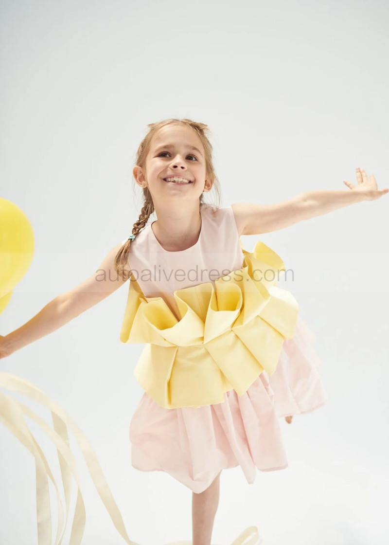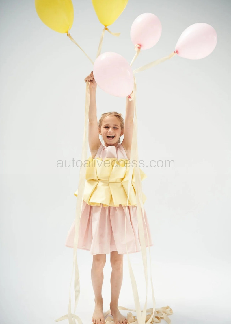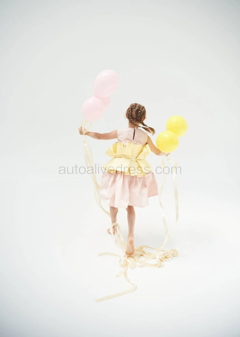 Pink And Yellow Taffeta Slit Back Flower Girl Dress