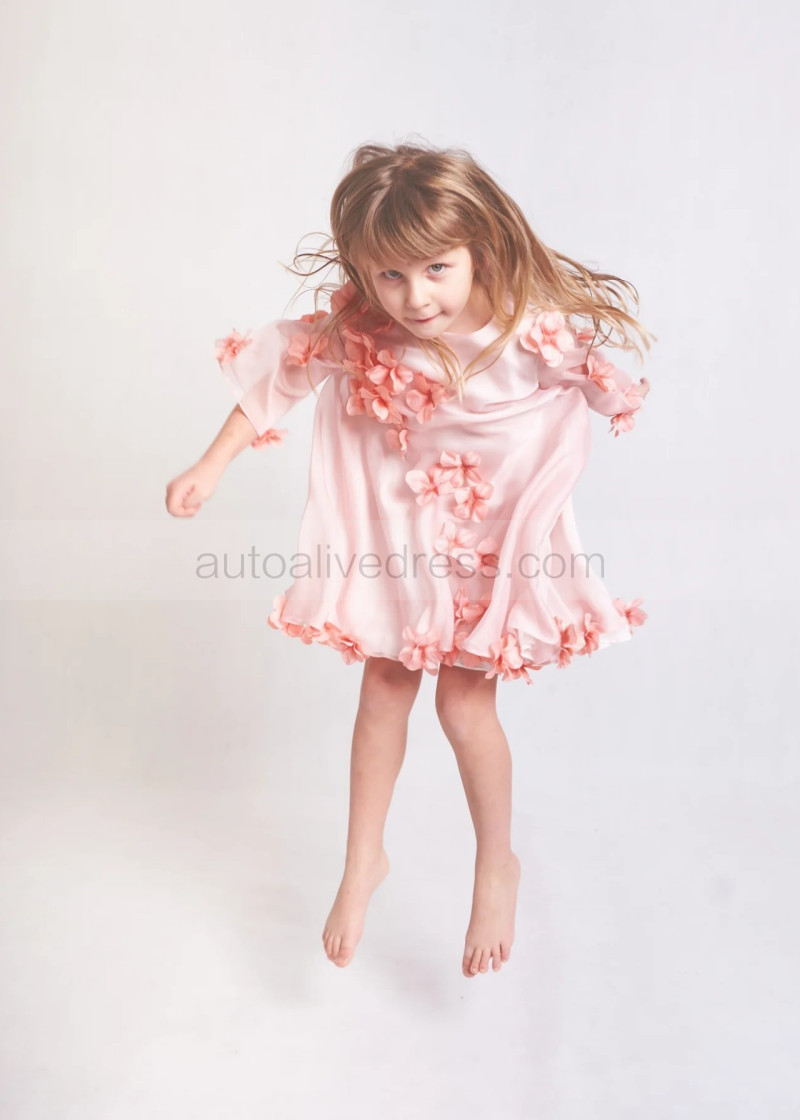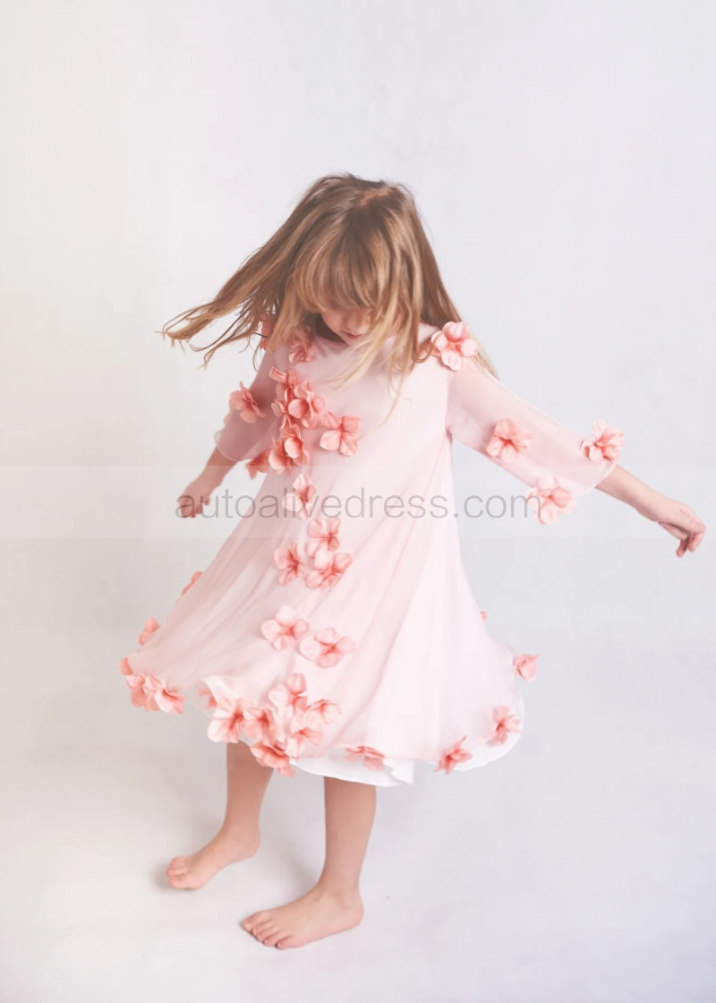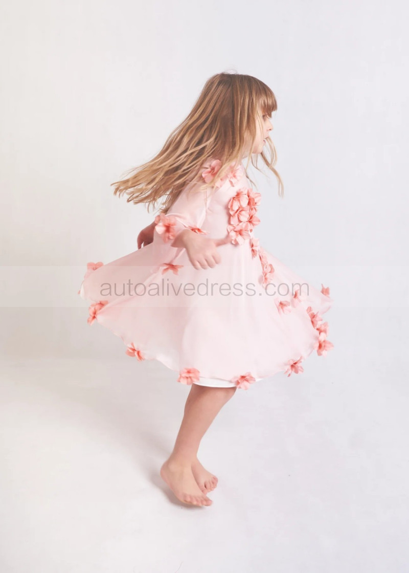 Pink Chiffon 3D Flowers Lightweight Flower Girl Dress