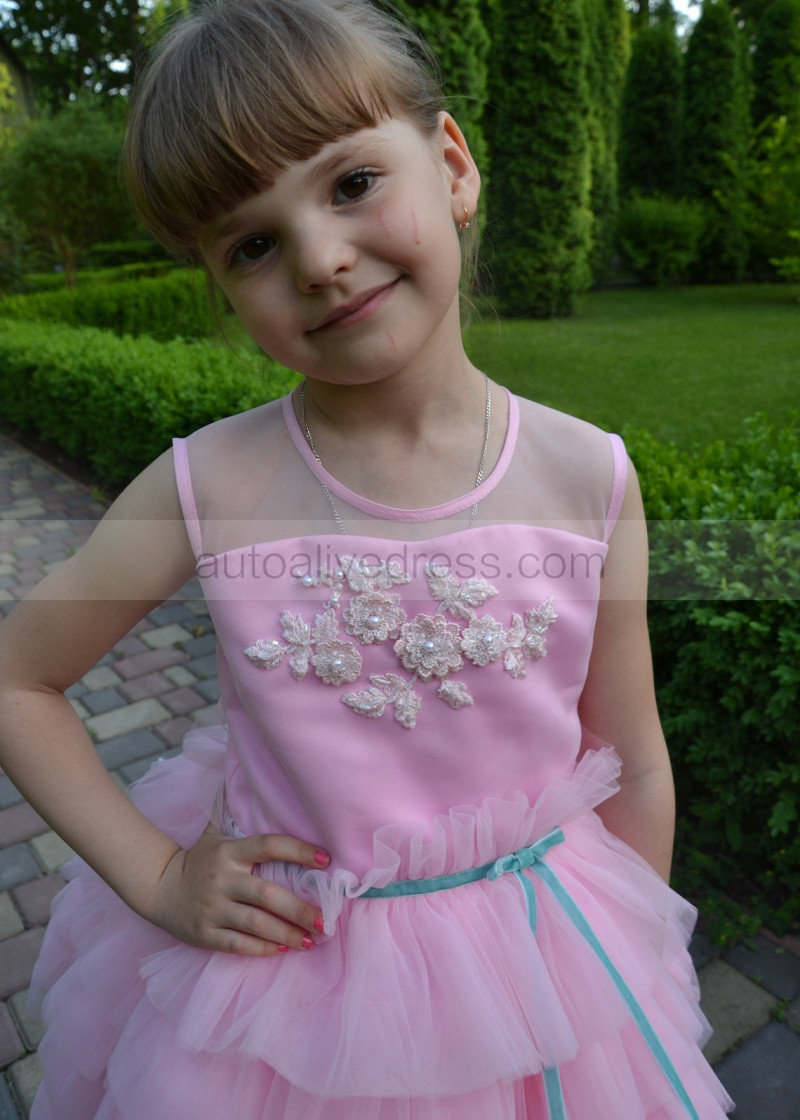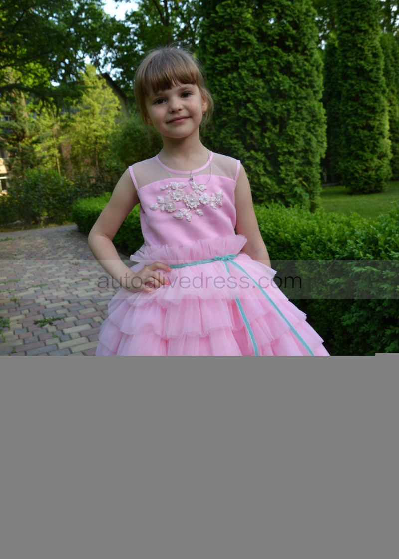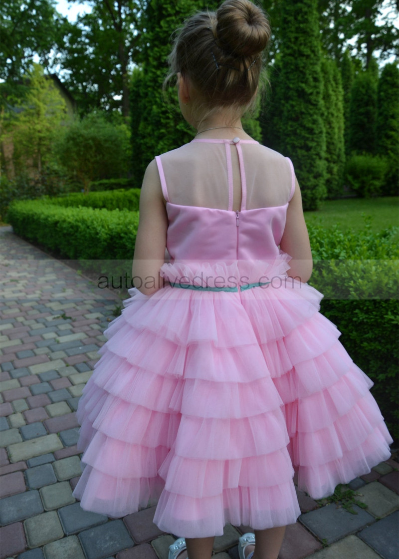 Pink Multi-layered Tulle Flower Girl Dress