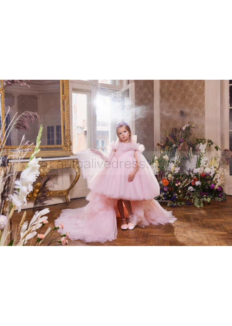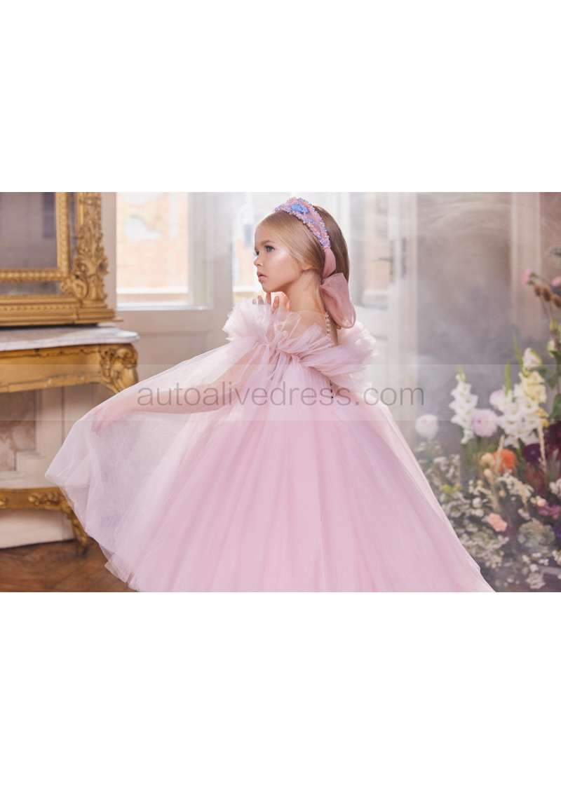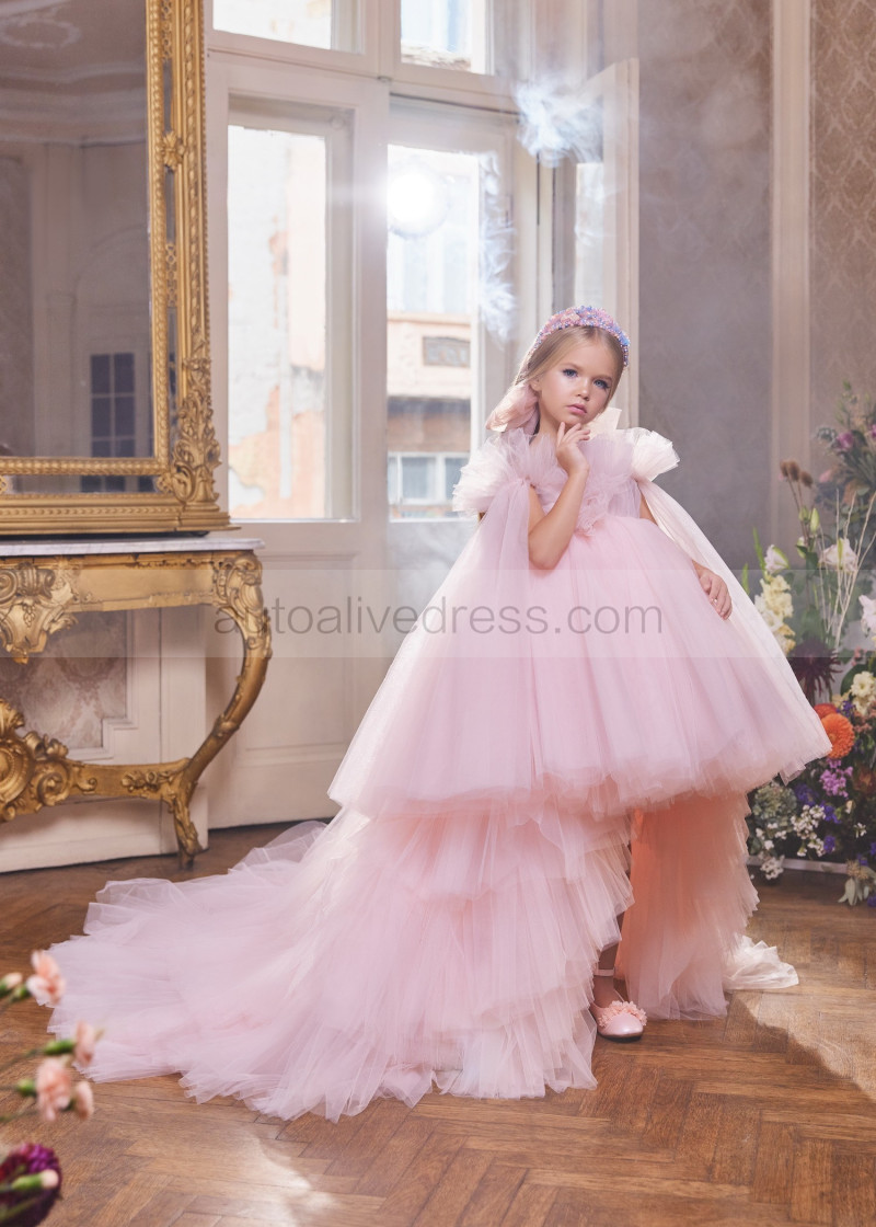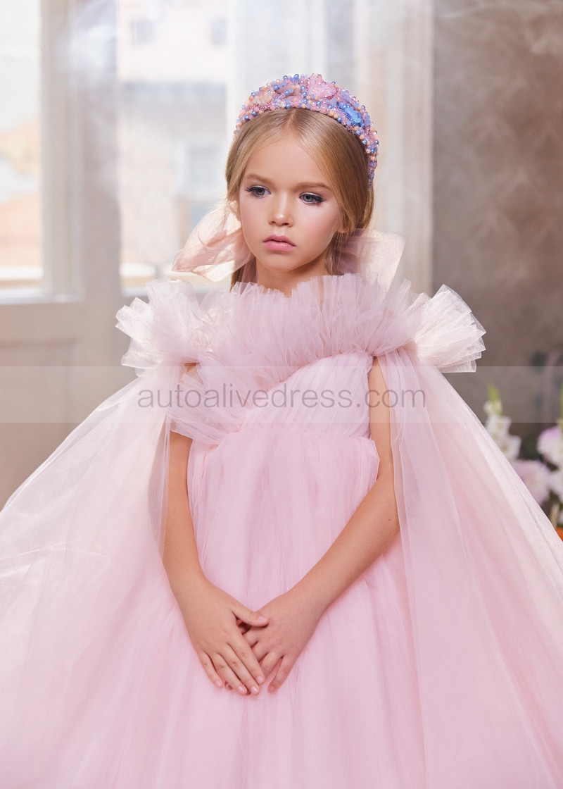 Pink Tulle Flower Girl Dress With Detachable Train