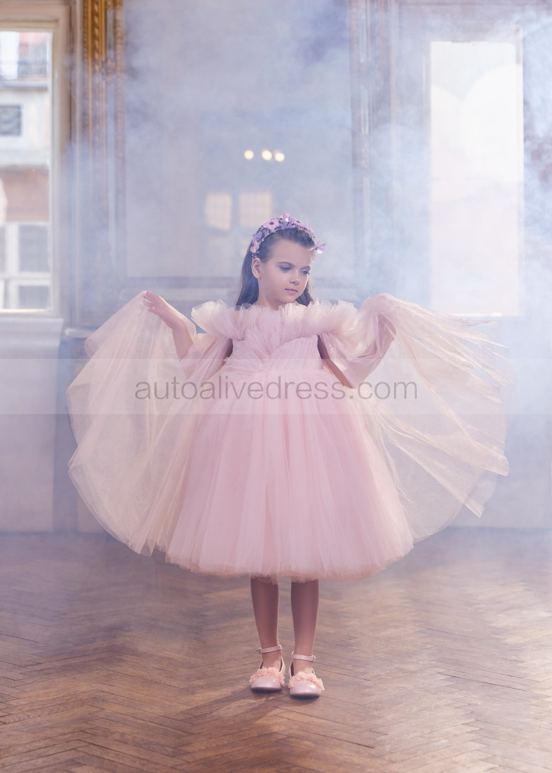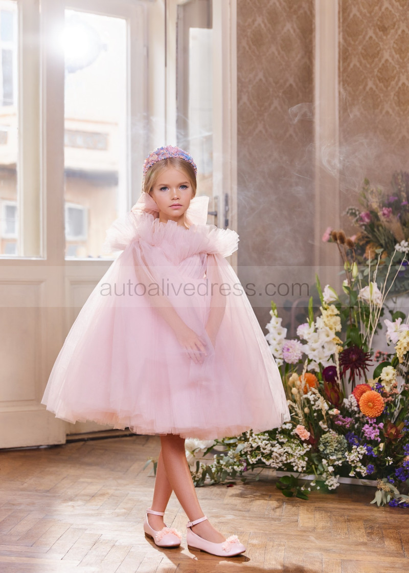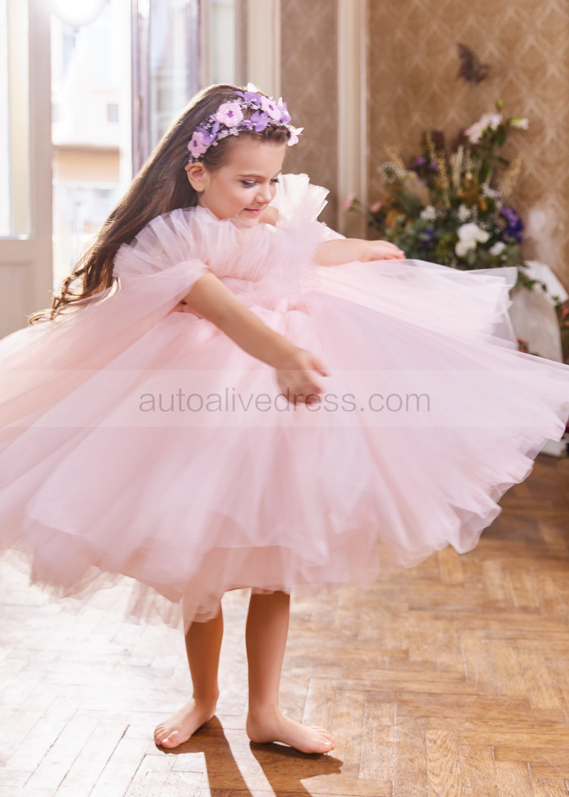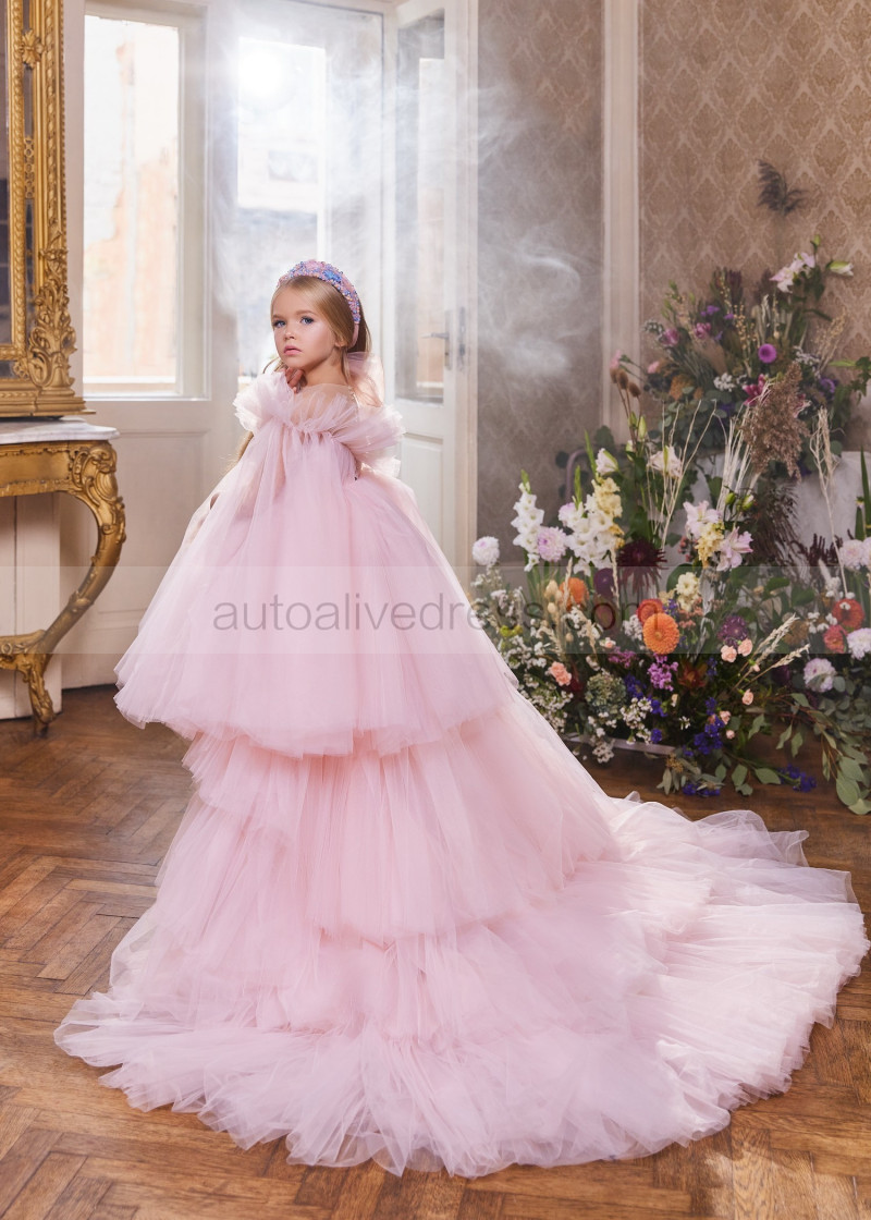 Pink Tulle Flower Girl Dress With Detachable Train