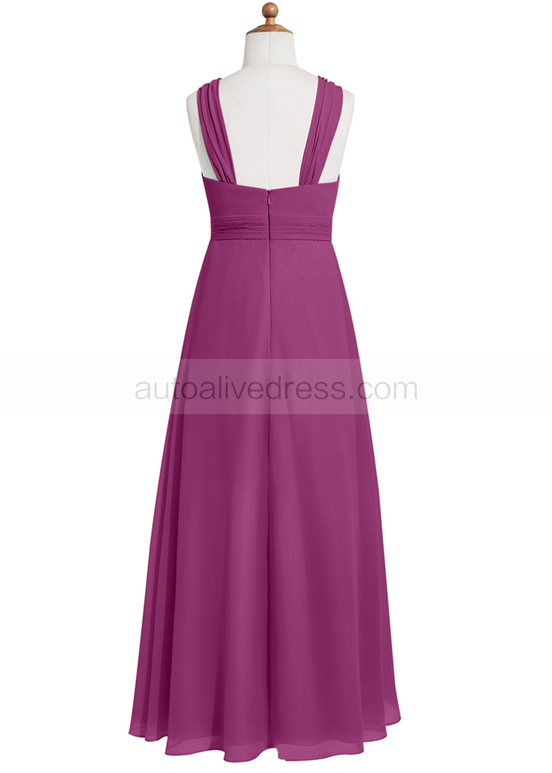 Plum Chiffon Ankle Length Twist Junior Bridesmaid Dress