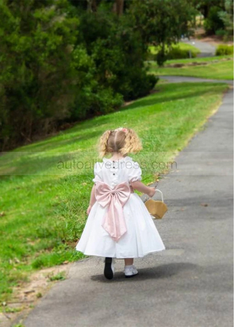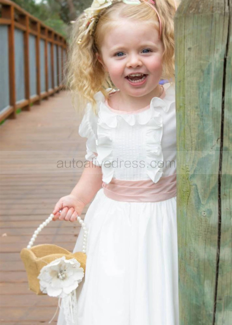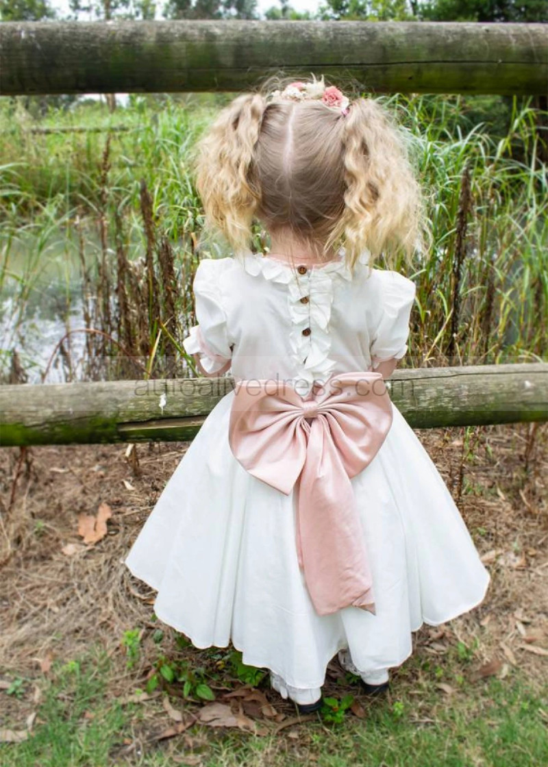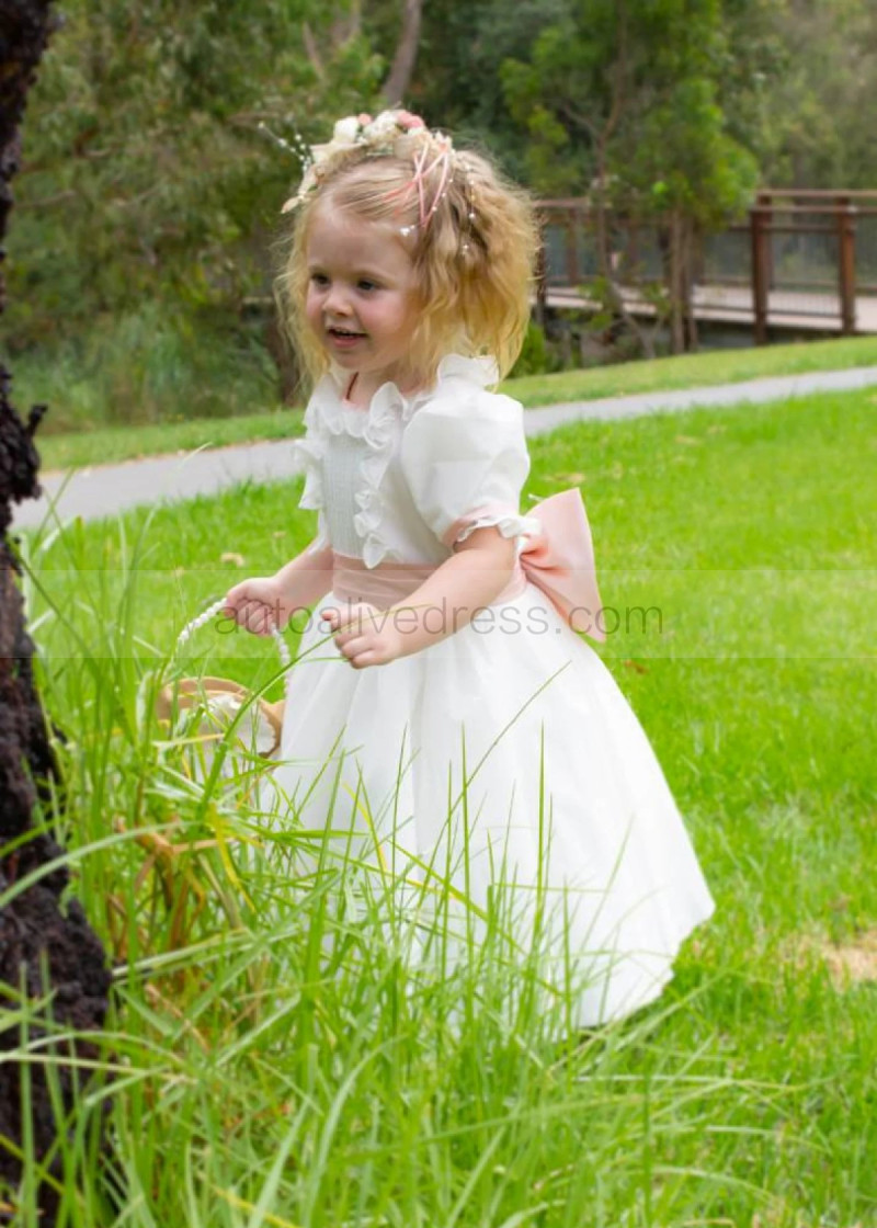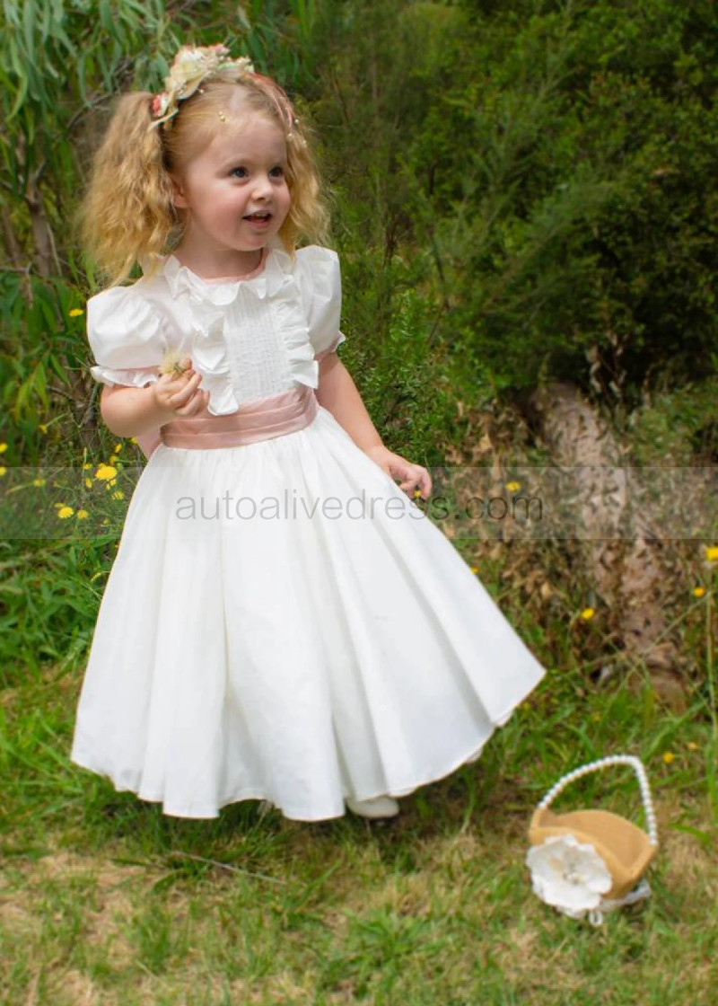 Puff Short Sleeves Ivory Cotton Flower Girl Dress With Frills