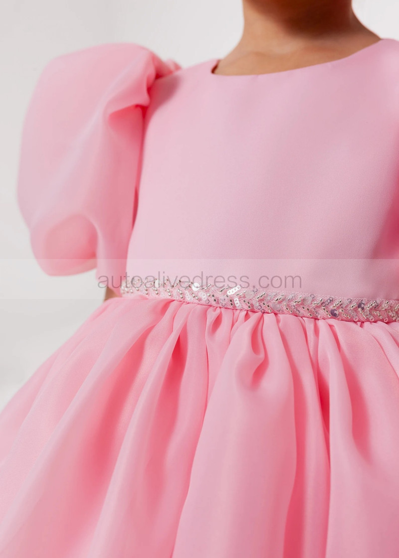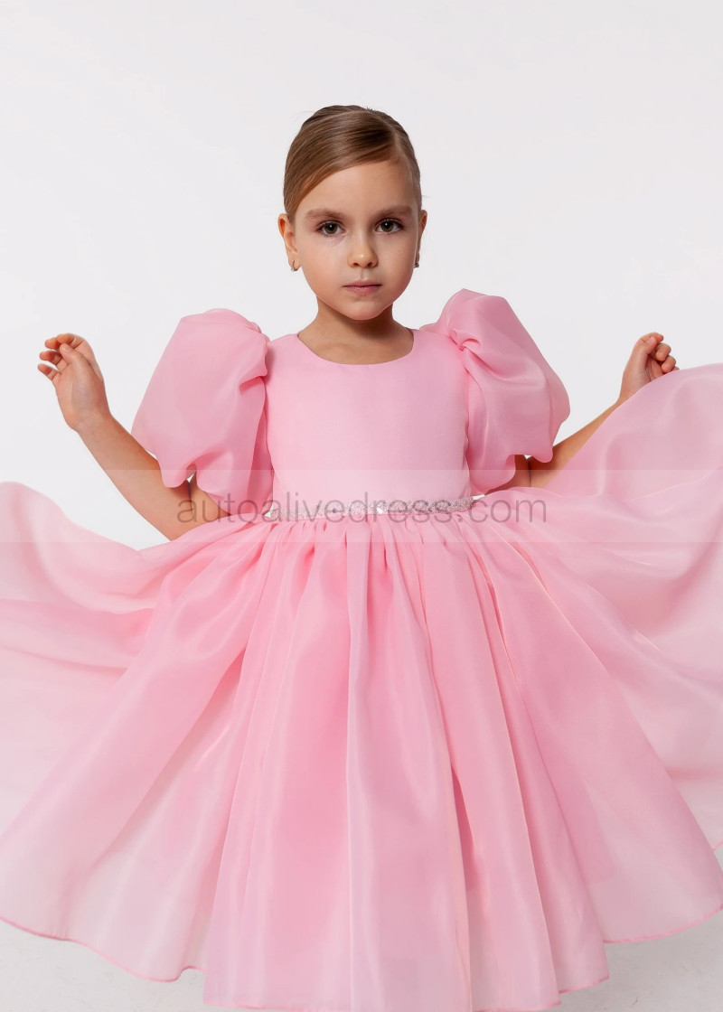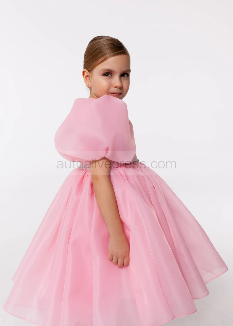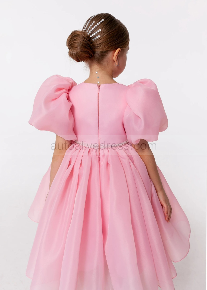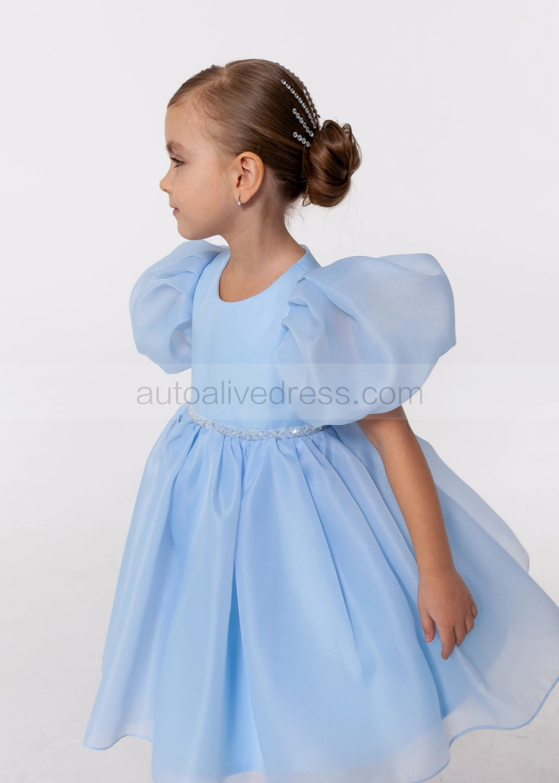 Puff Sleeves Organza Flower Girl Dress With Beaded Sash
