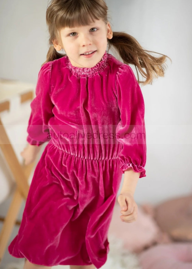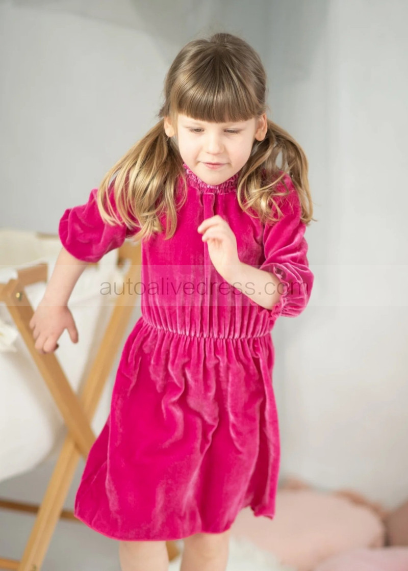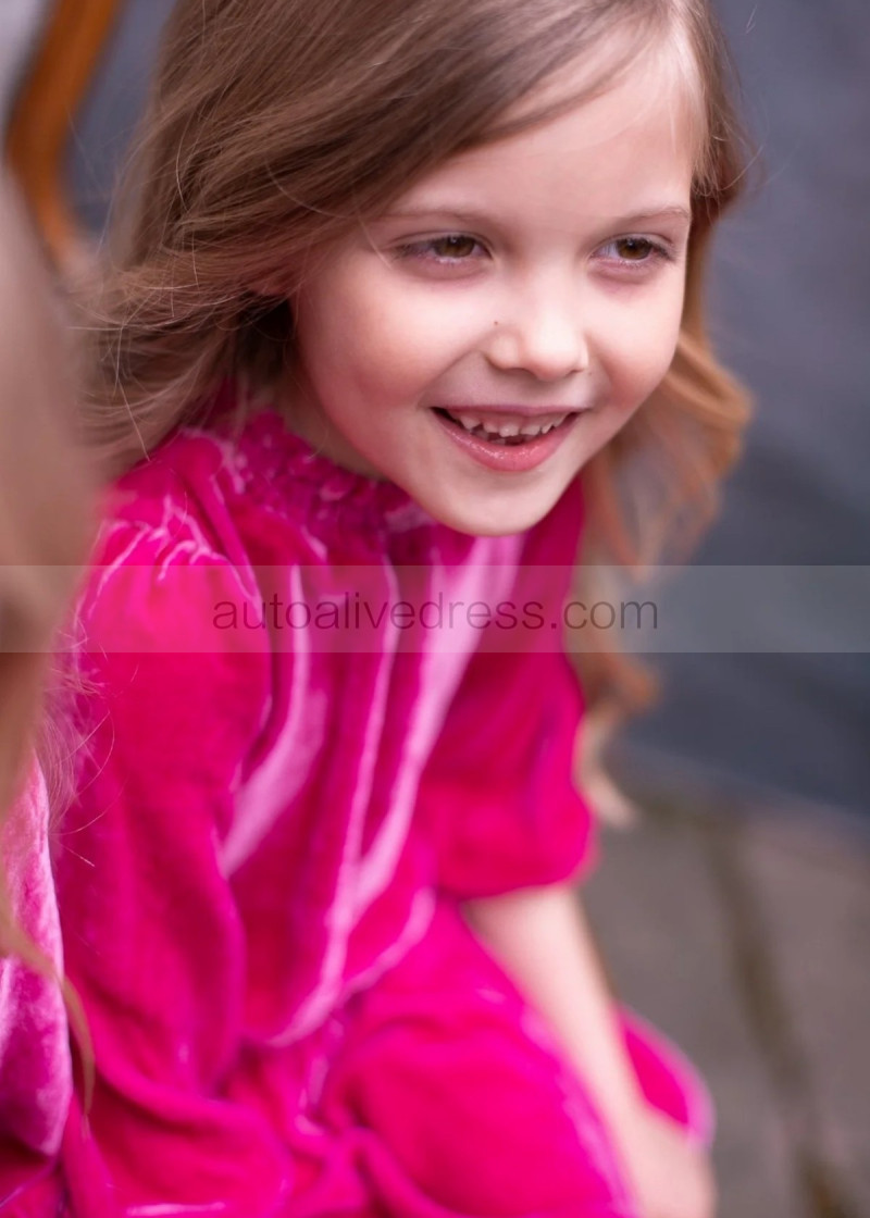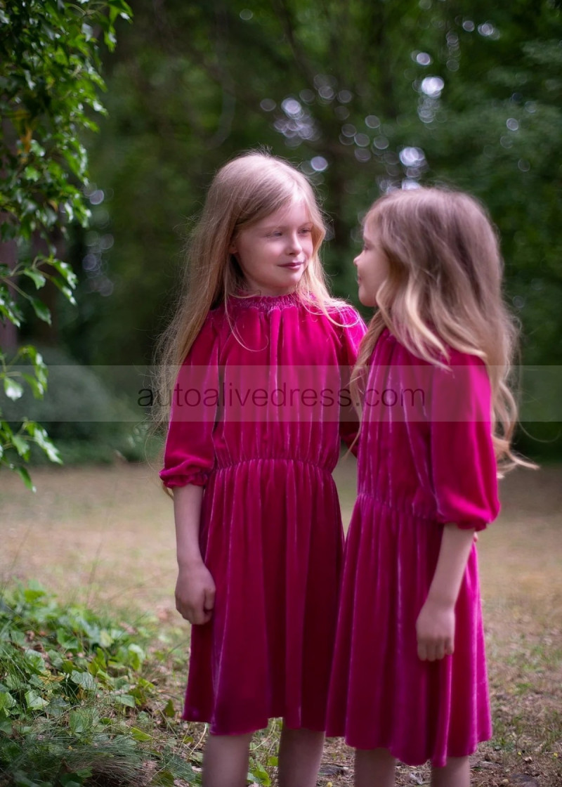 Raspberry Velvet Knee Length Simple Flower Girl Dress