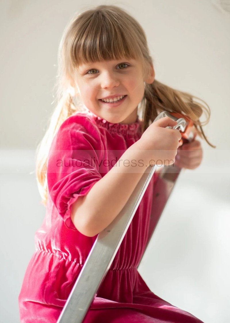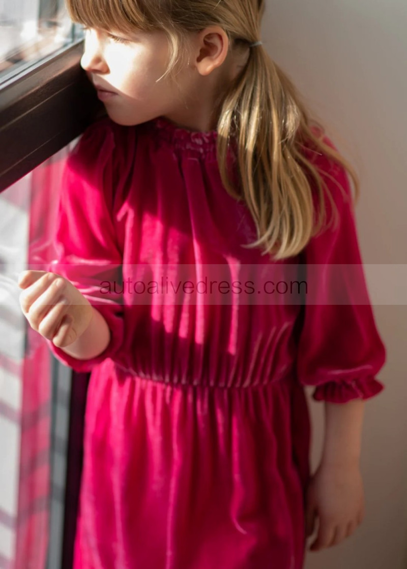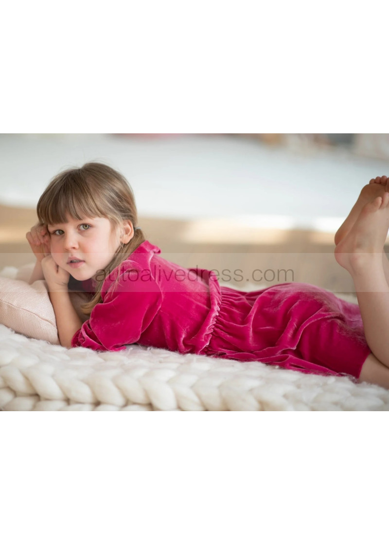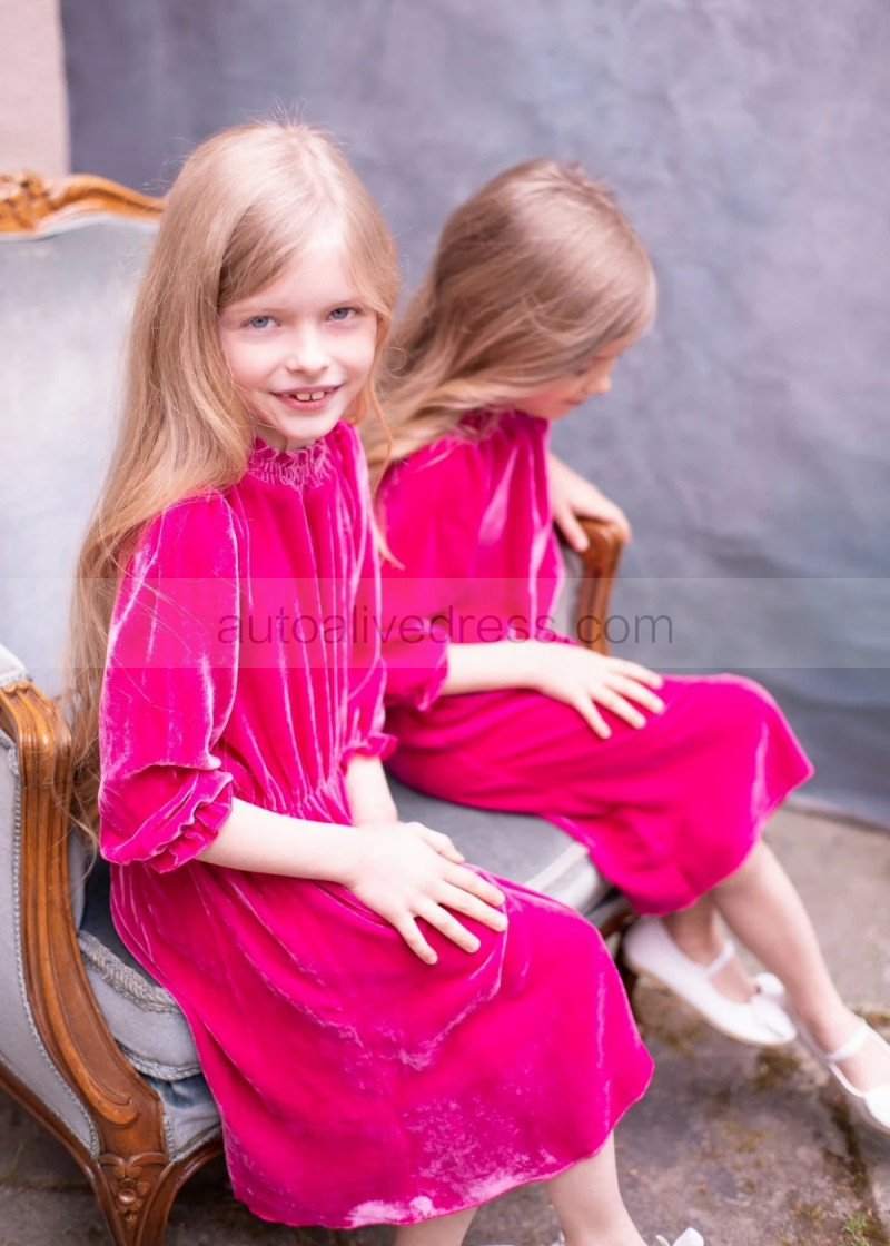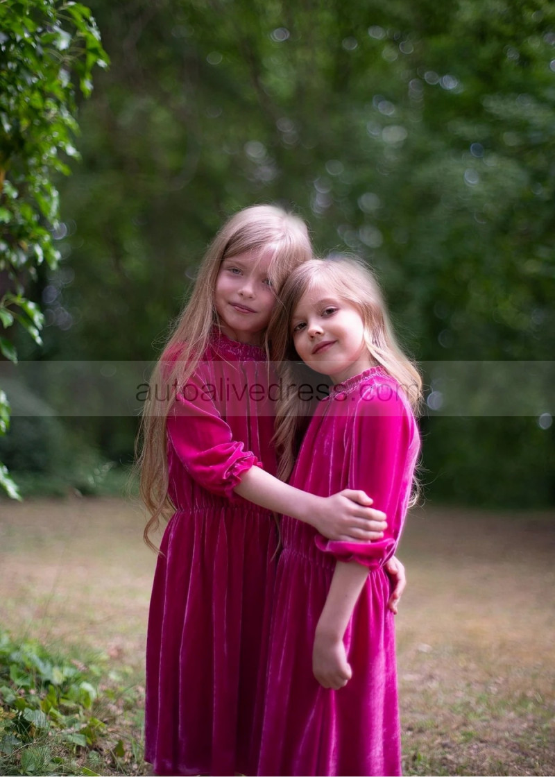 Raspberry Velvet Knee Length Simple Flower Girl Dress