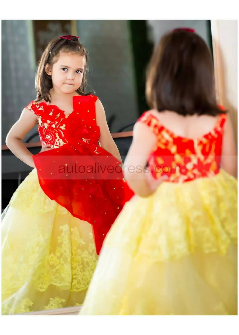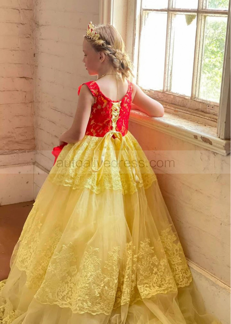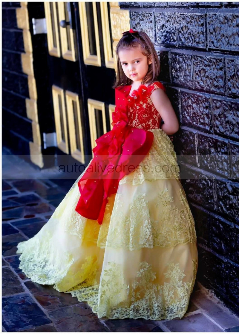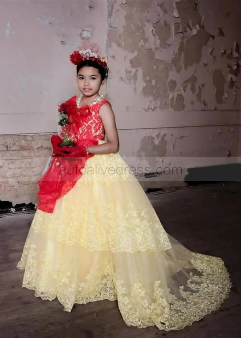Red And Yellow Lace Tulle Chic Flower Girl Dress