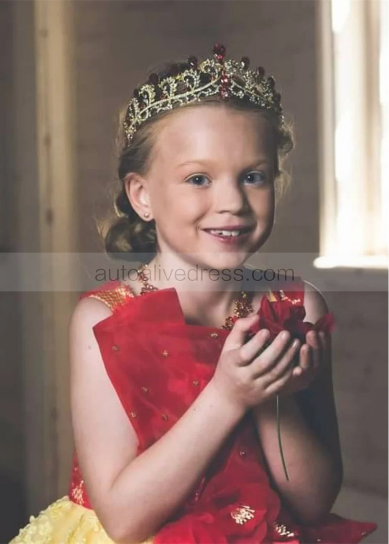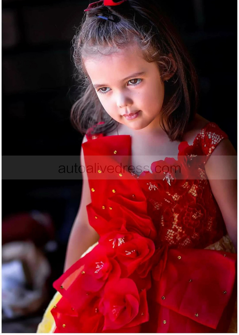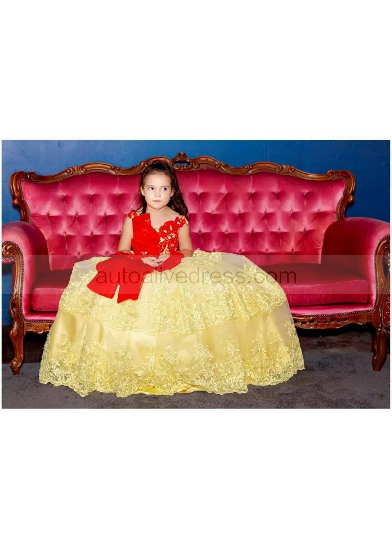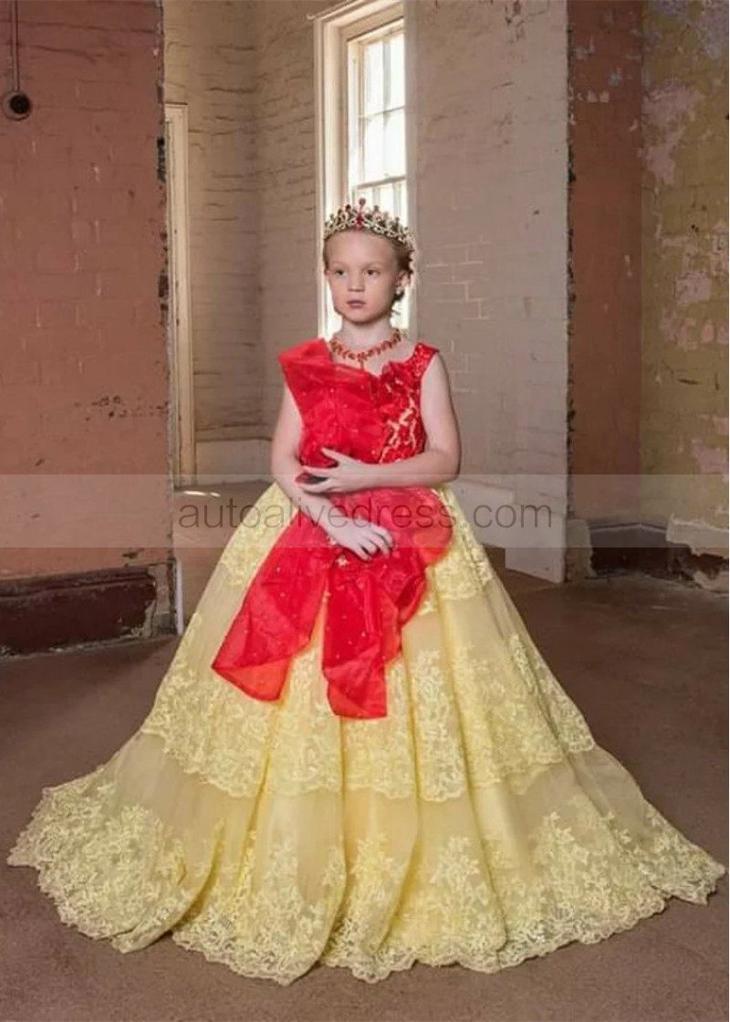 Red And Yellow Lace Tulle Chic Flower Girl Dress